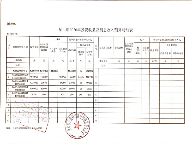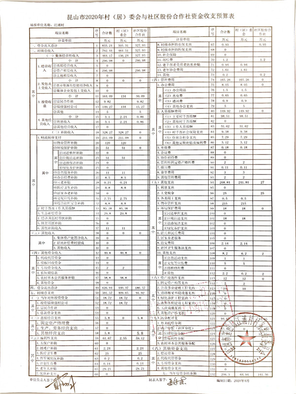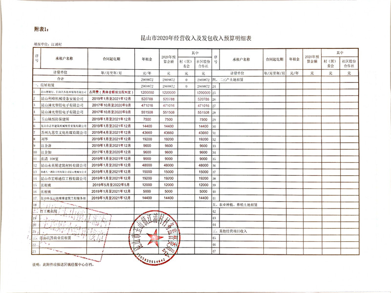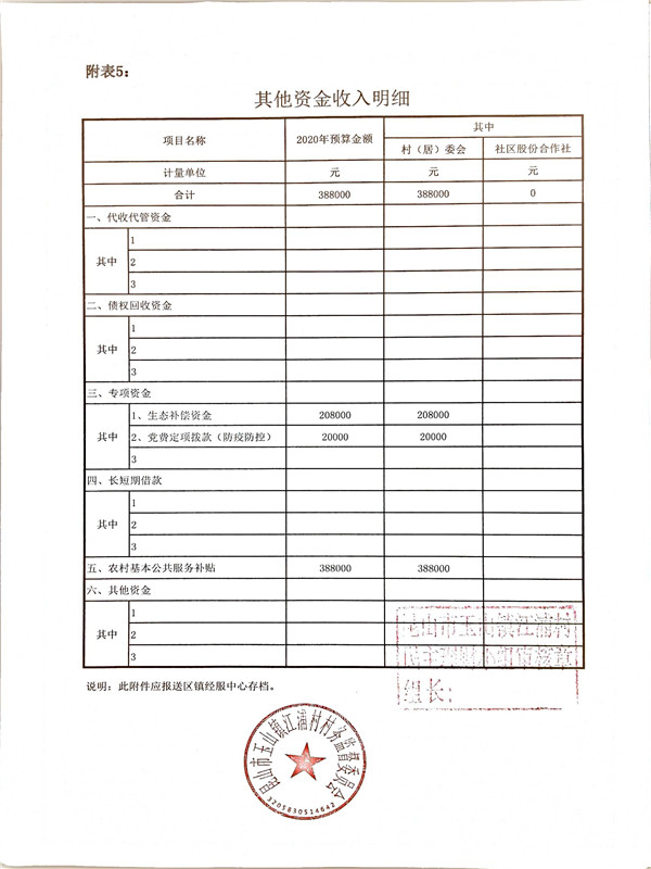 江浦村、江浦社区2019年收支决算表、2020年收支预算表、2020年经营收入及发包预算表、2020年投资收益及利息收入预算表、2020年财政补助收入预算表、2020年征地及资产动迁资金预算表、其他收入表公示