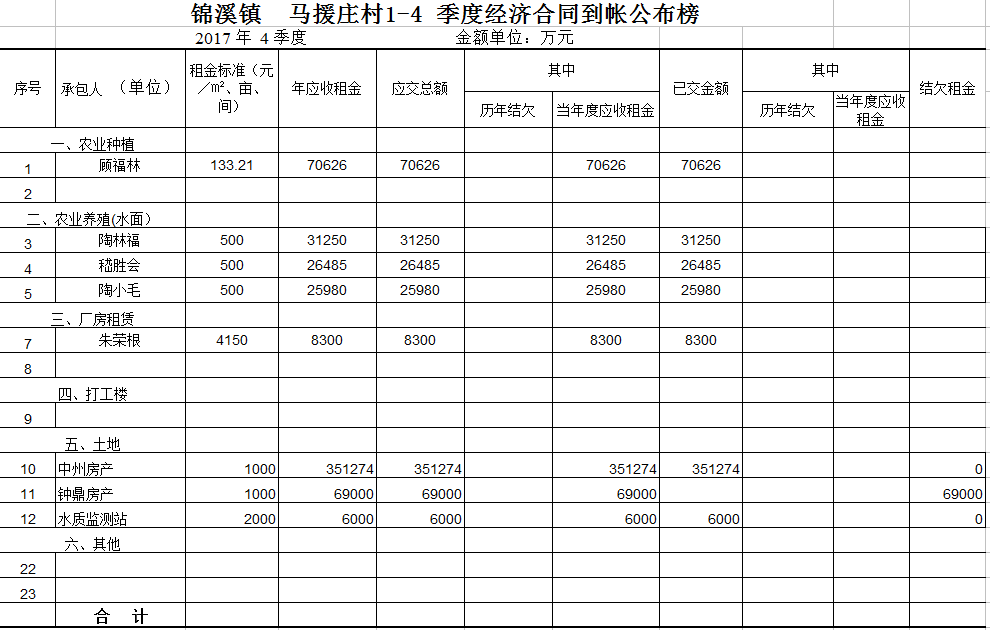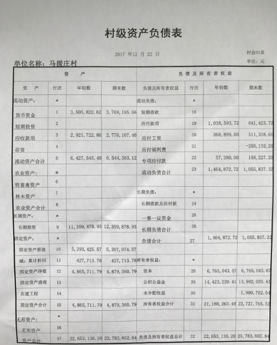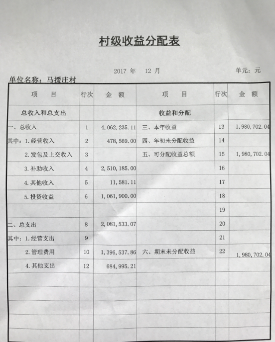 马援庄村2017年第四季度财务公开