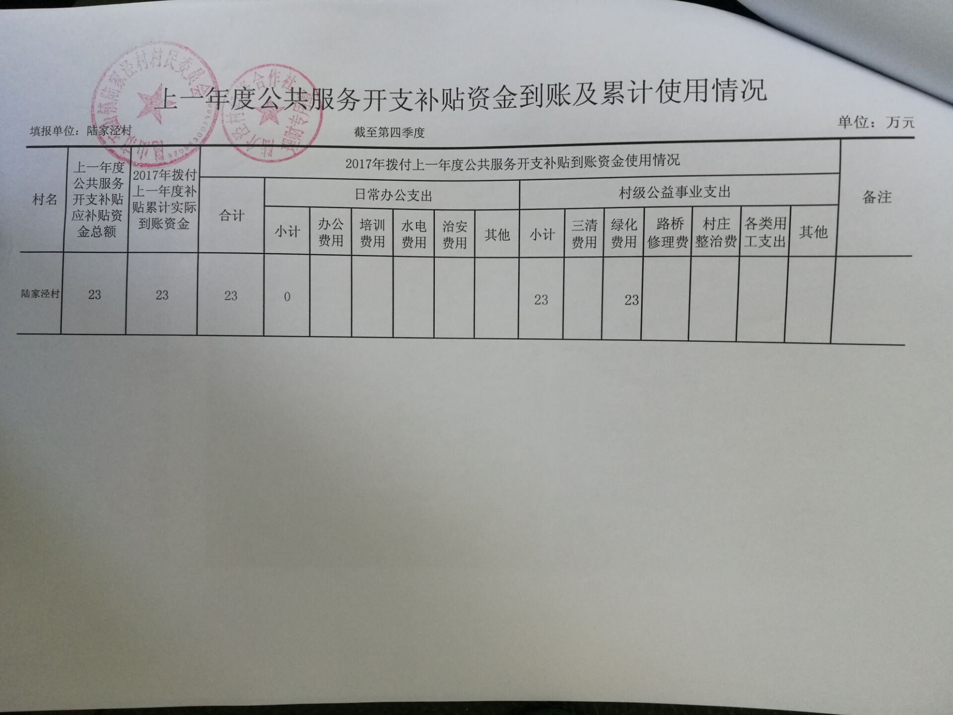 上一年度公共服务开支补贴资金到账及累计使用情况