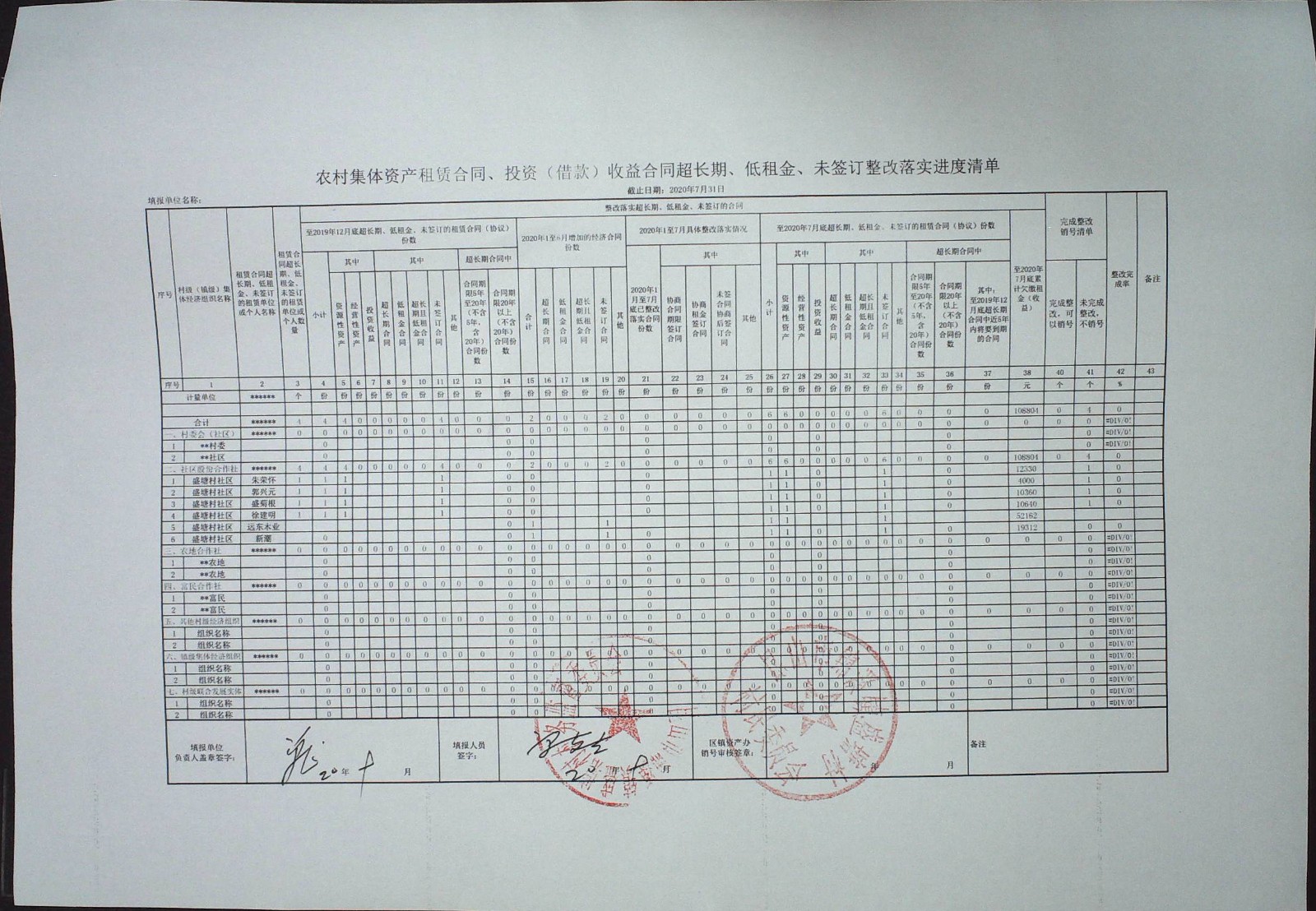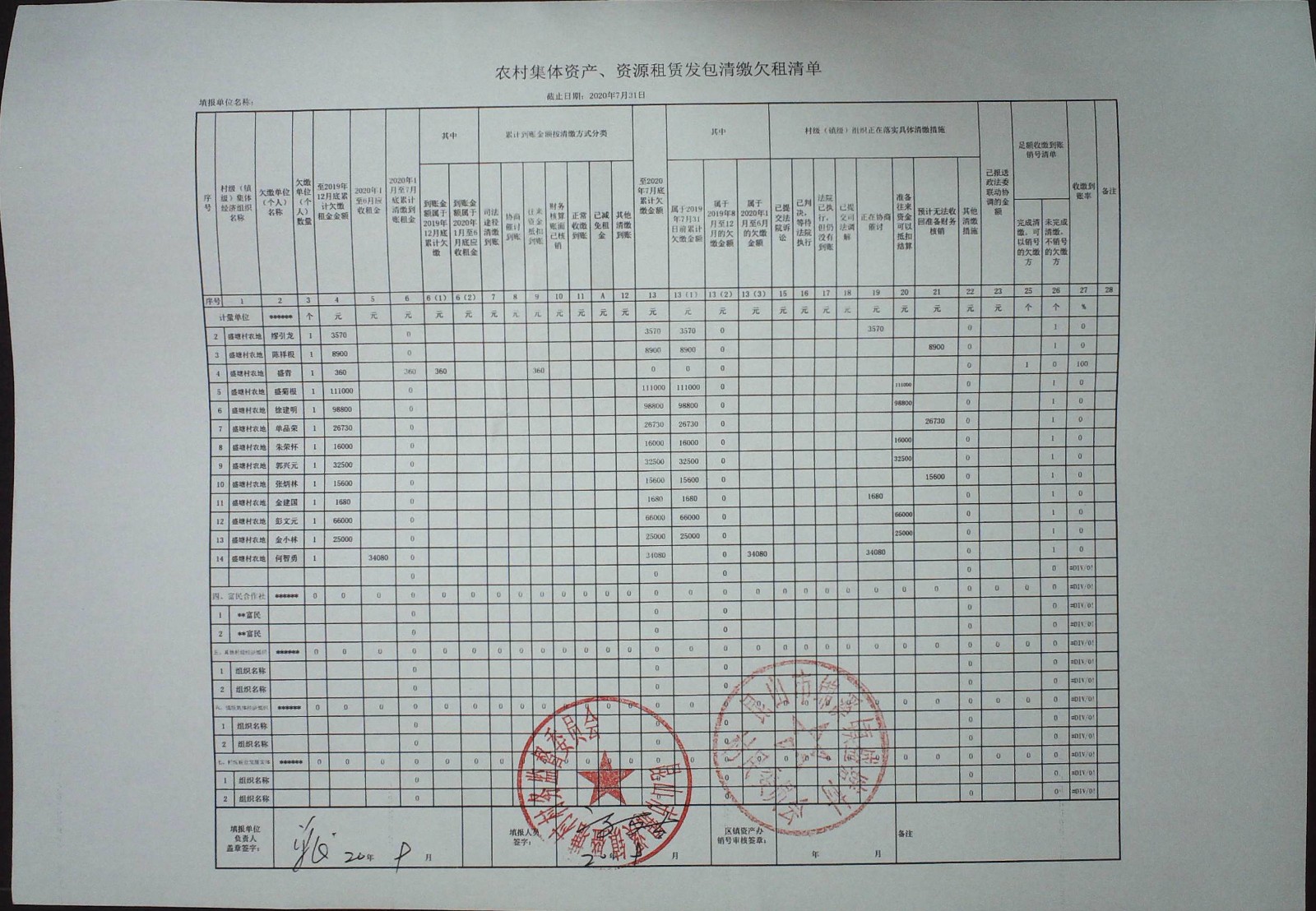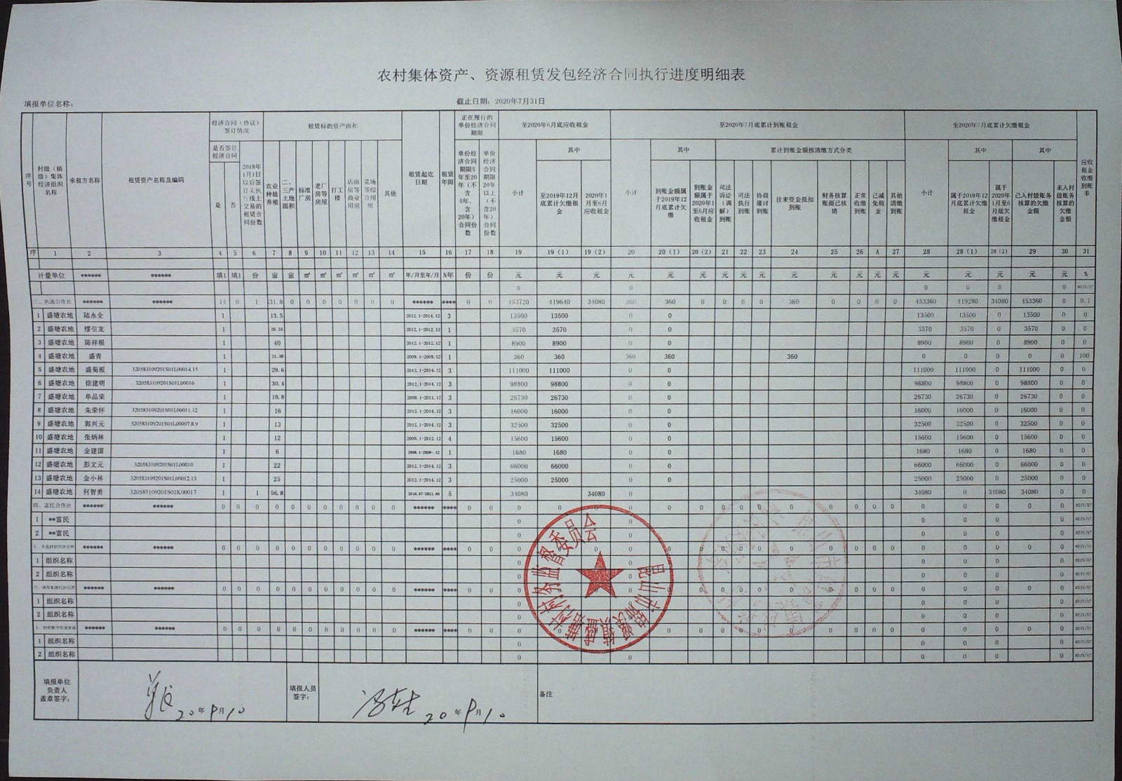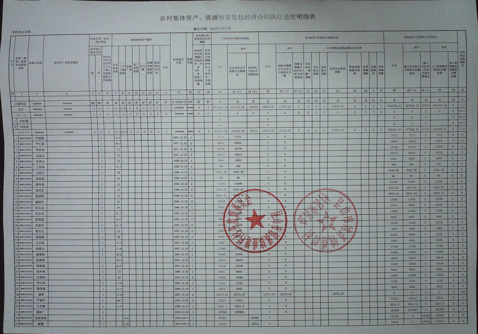 农村集体资产、资源租赁发包经济合同执行进度明细表