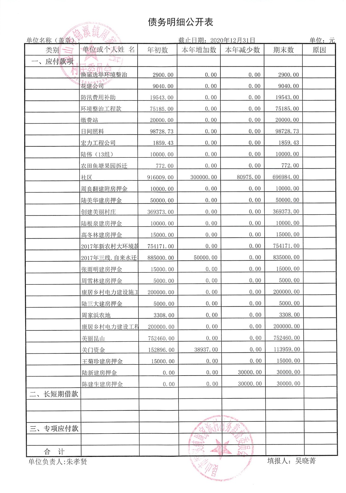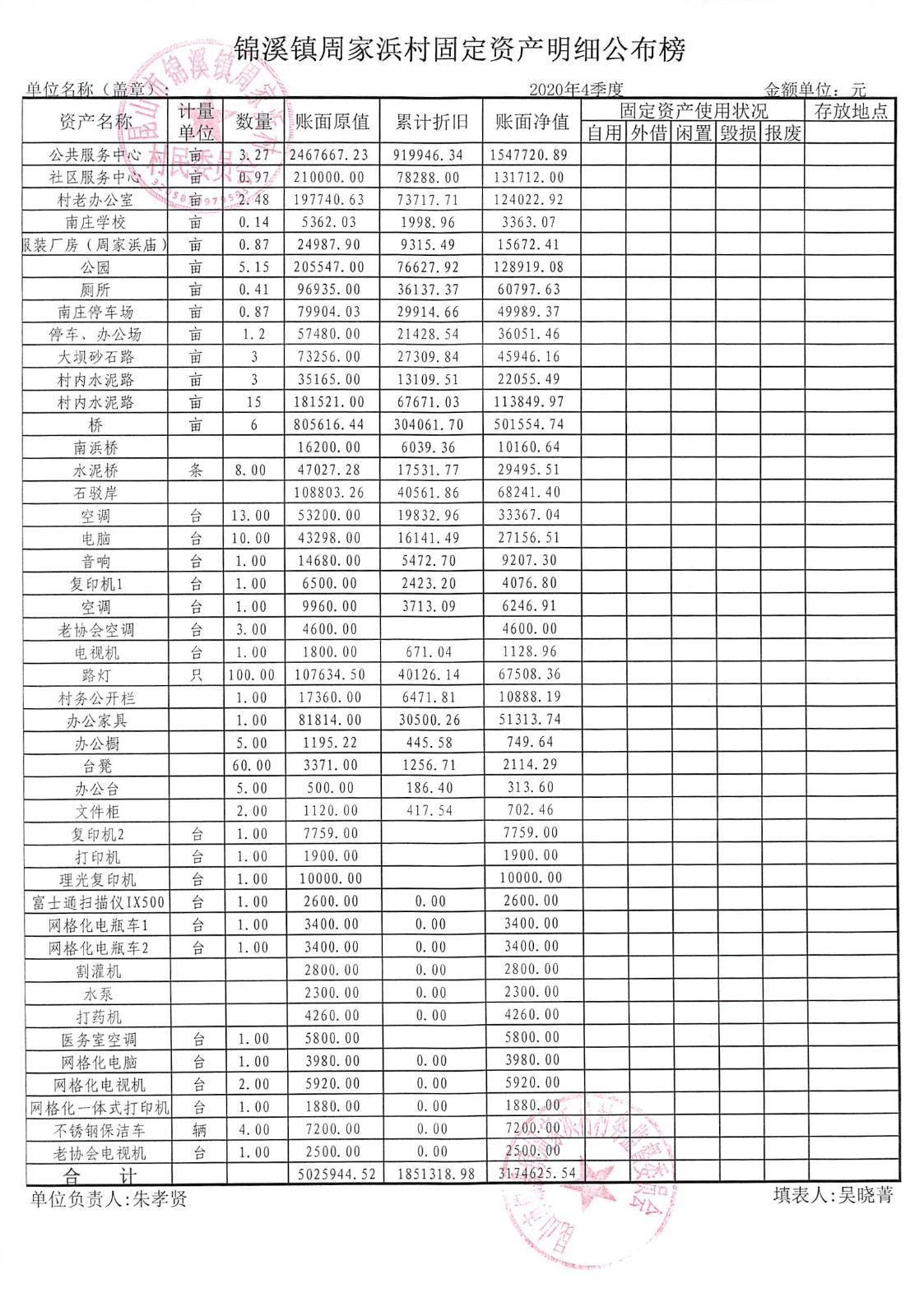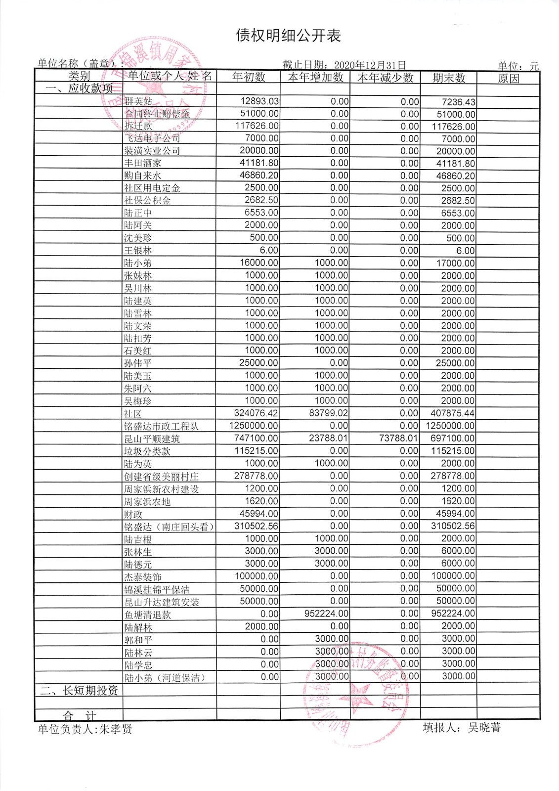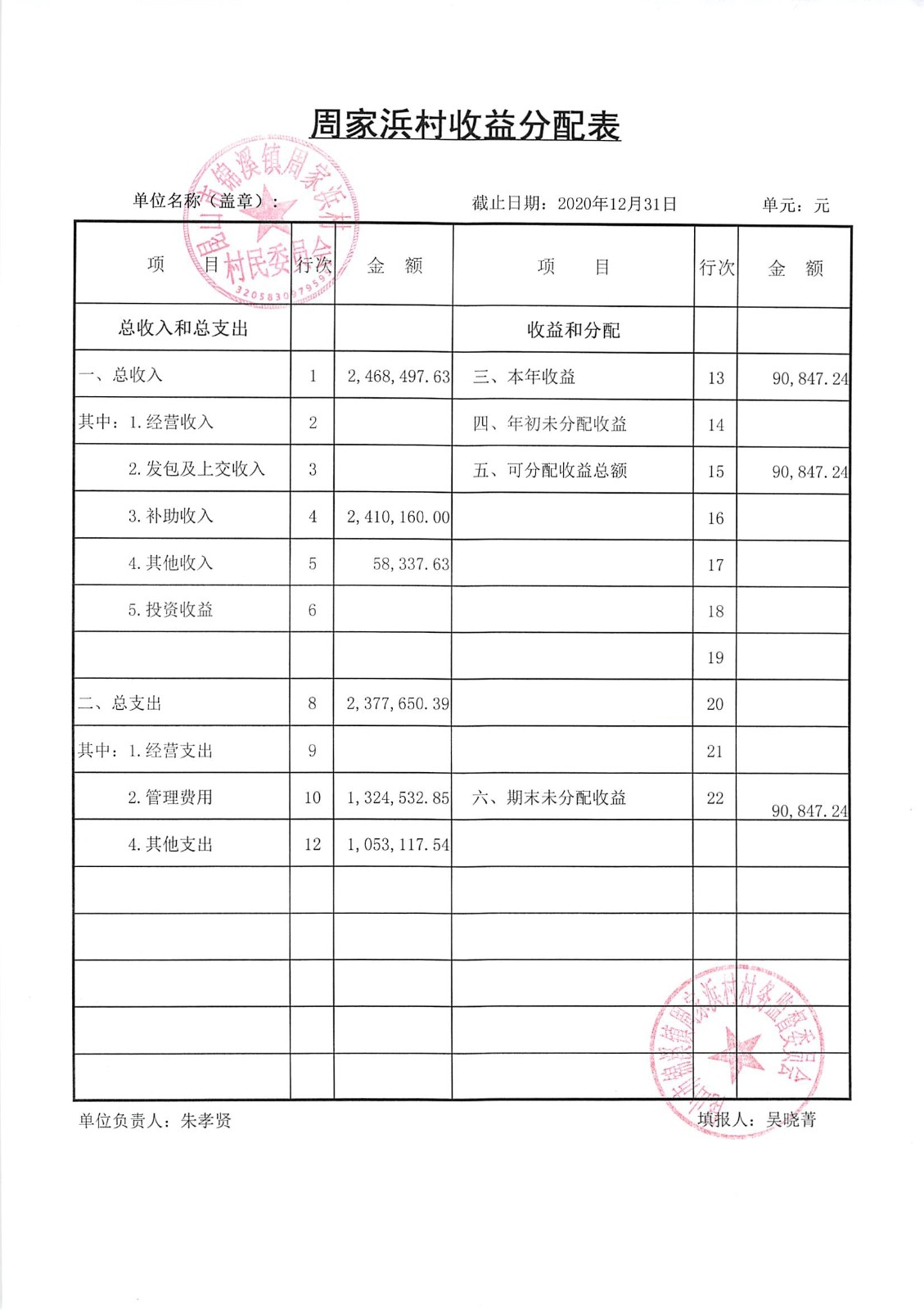 2020年周家浜村村委会四季度财务公开(定期公开):