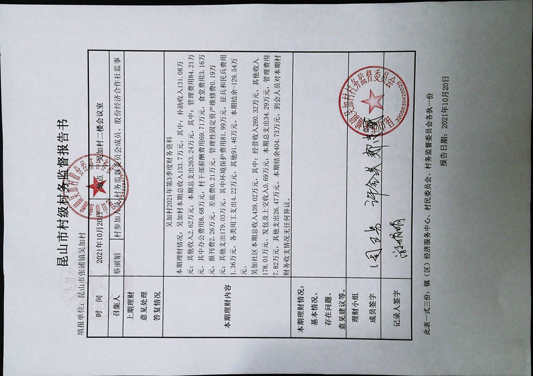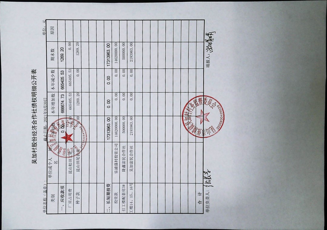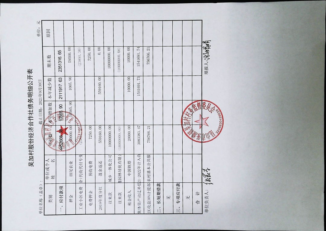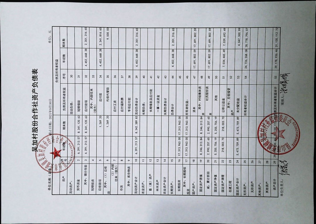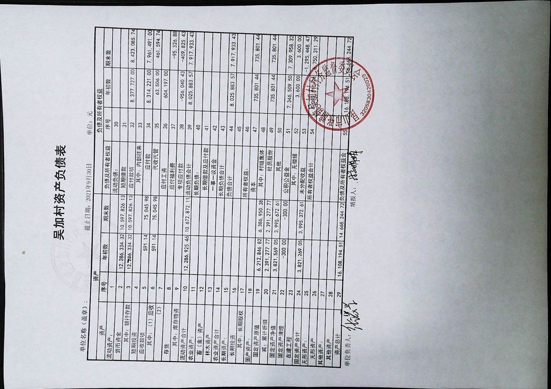 2021年第三季度财务季度公开