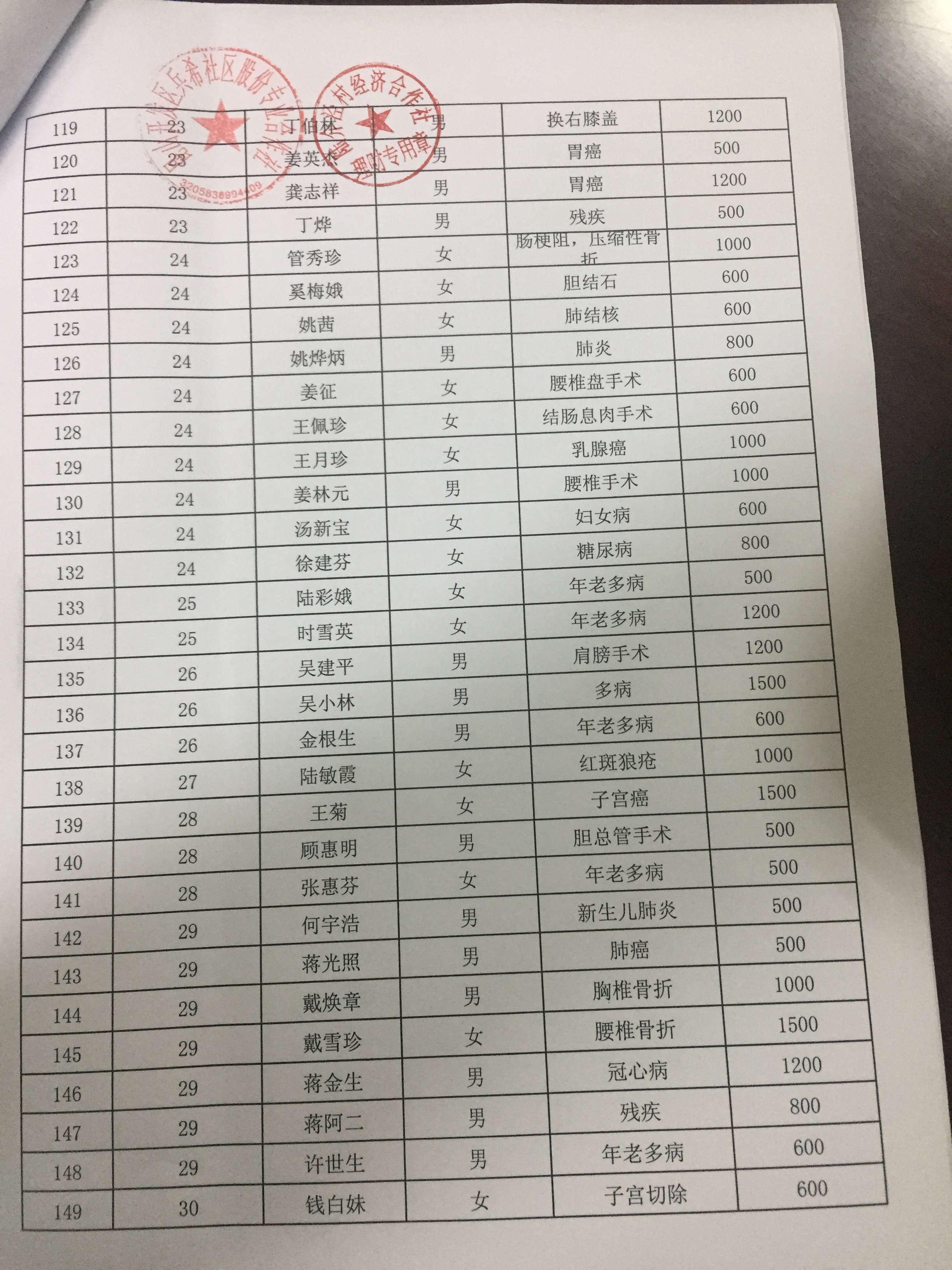 陆家泾村烈军属、低保(边缘)、残疾户、大病救助、困难户、五保户供养情况公布榜