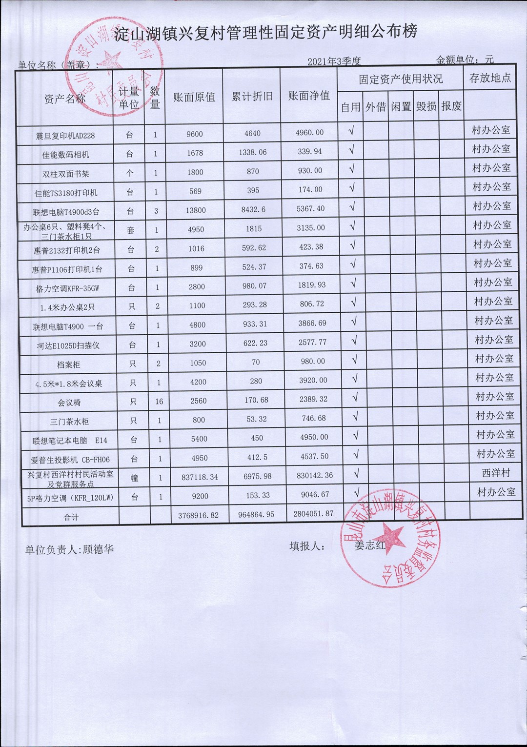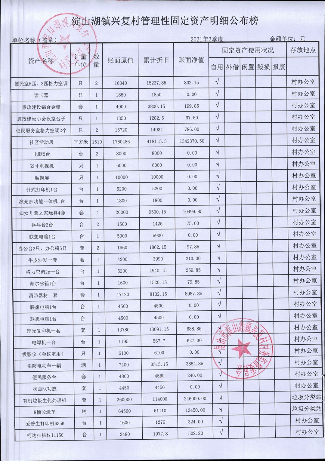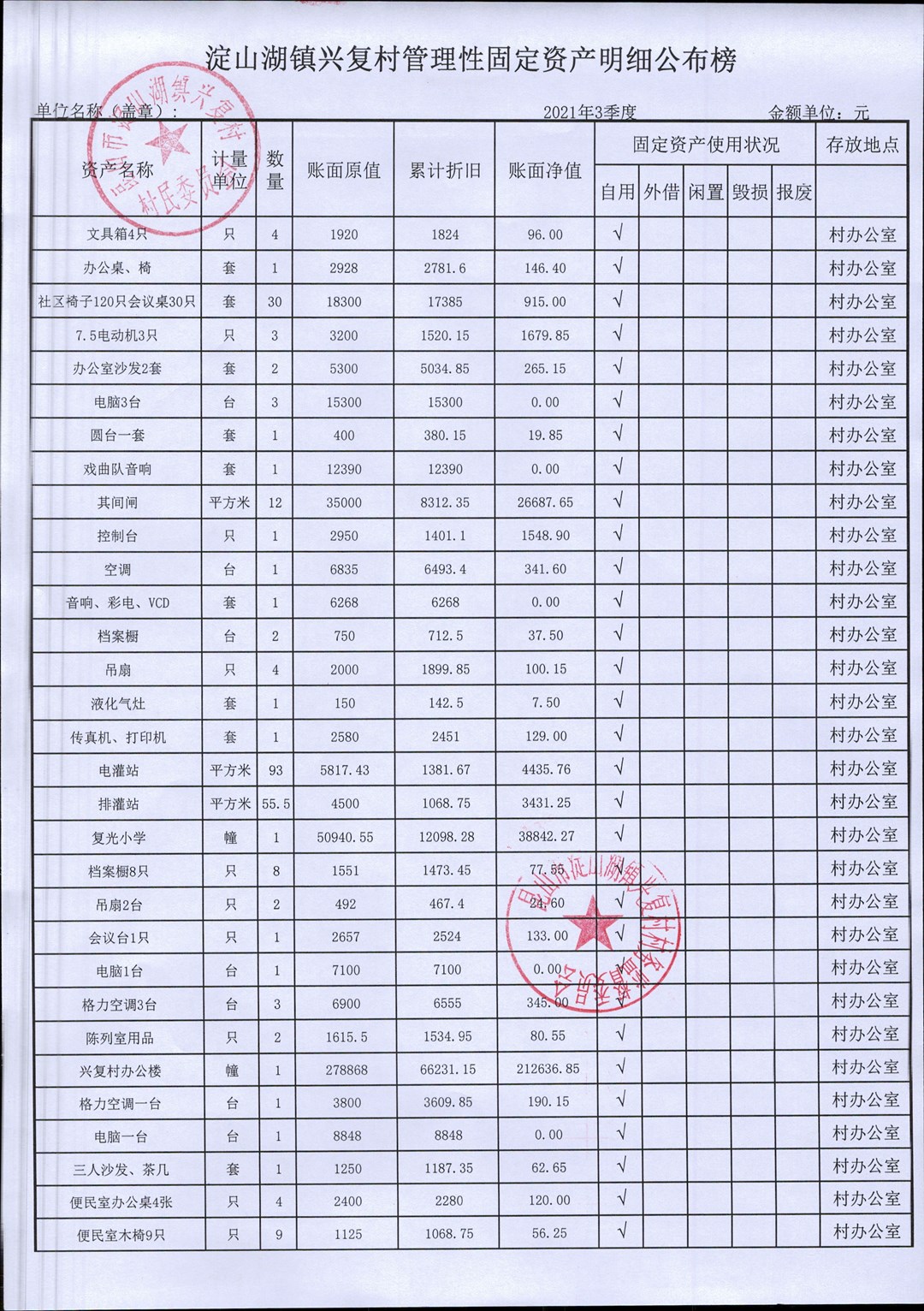 兴复村2021年第三季度管理性固定资产明细公布榜