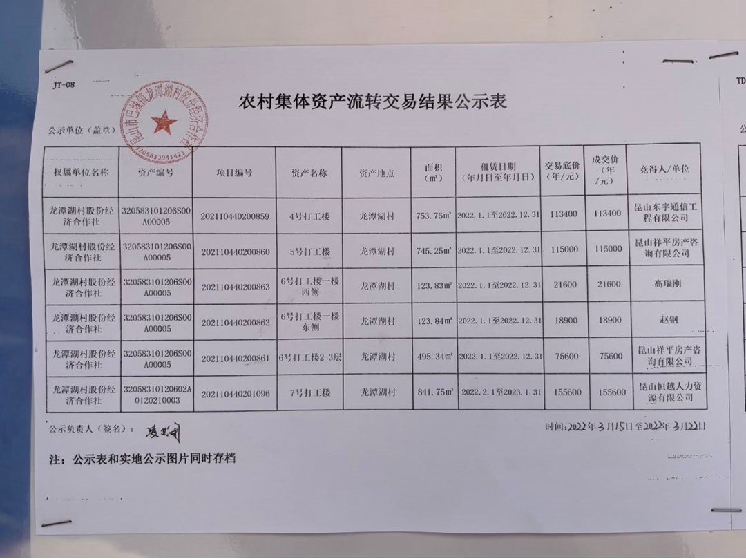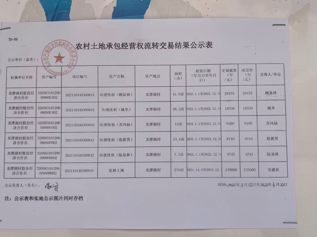 2022年农村集体资产、土地承包经营权流转交易结果公示
