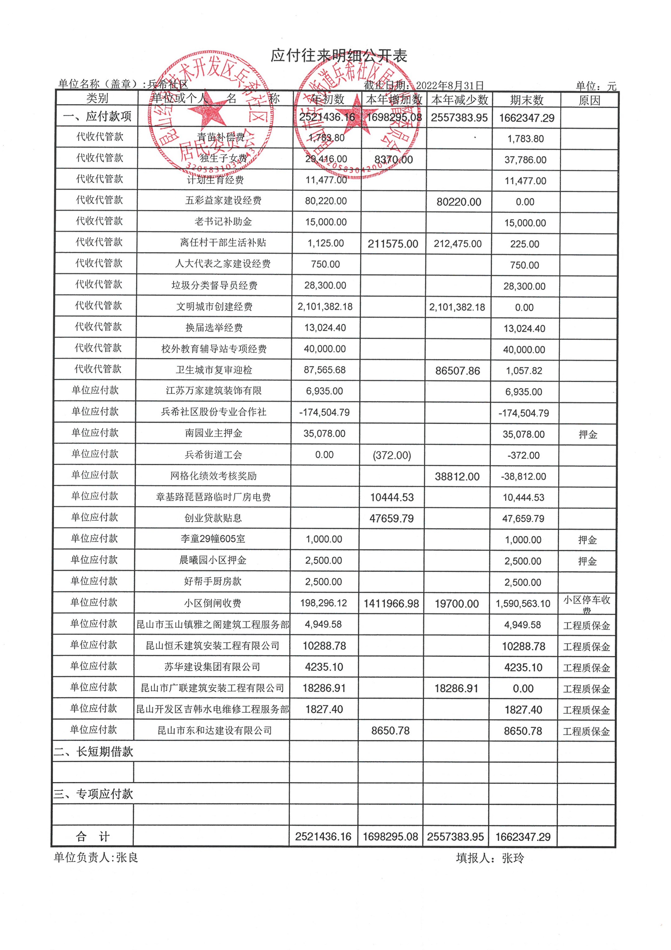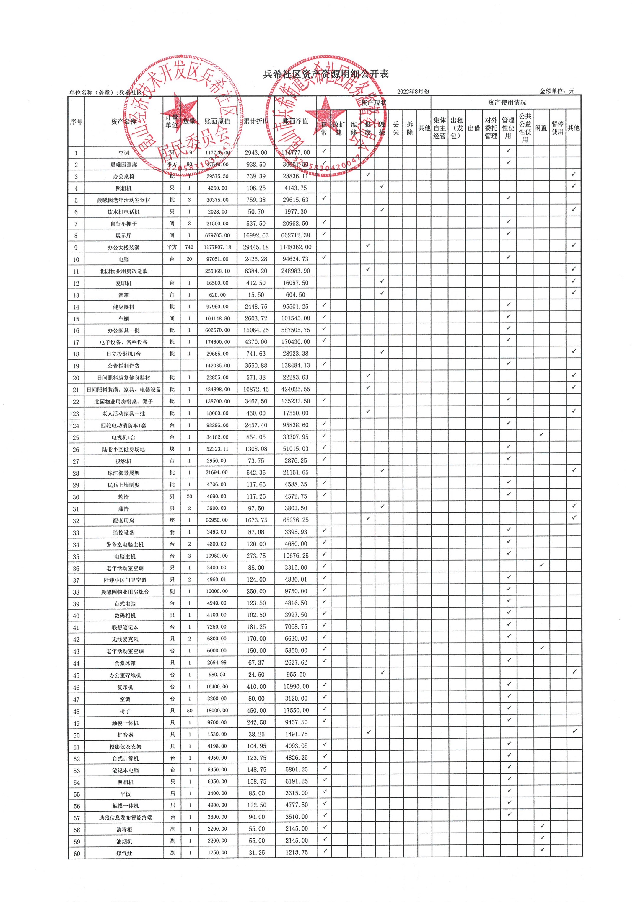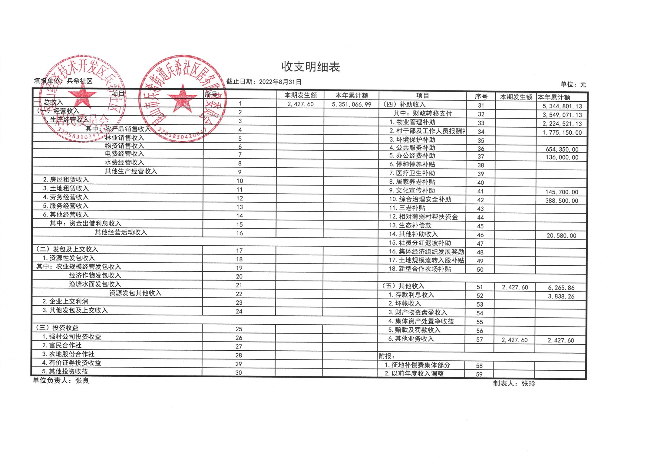 2022年8月份兵希社区财务公开