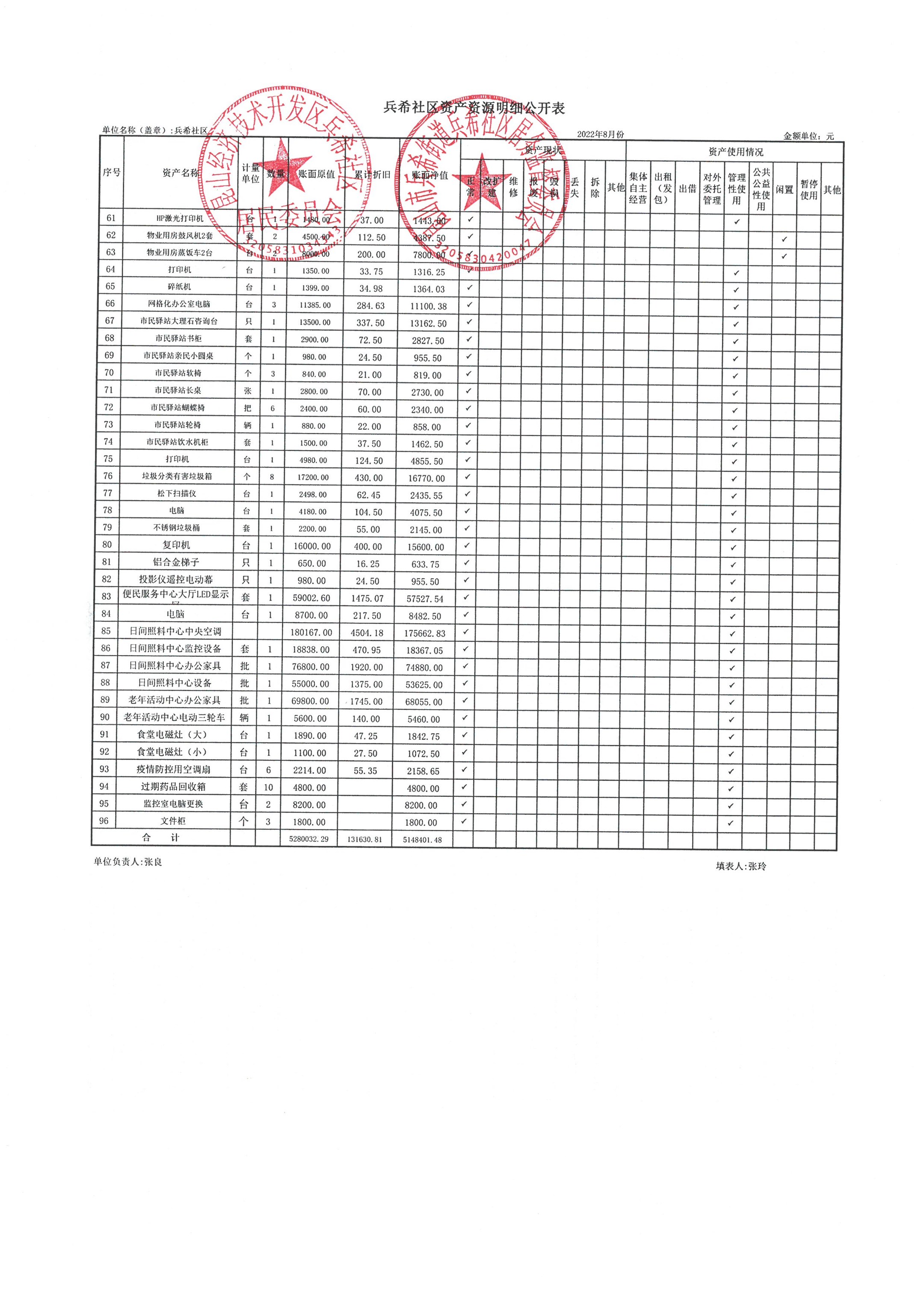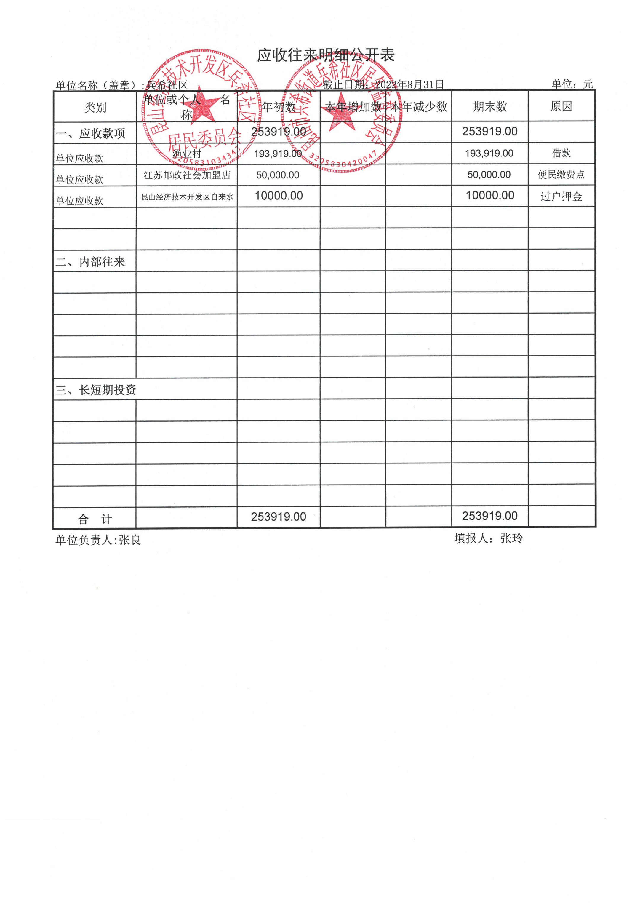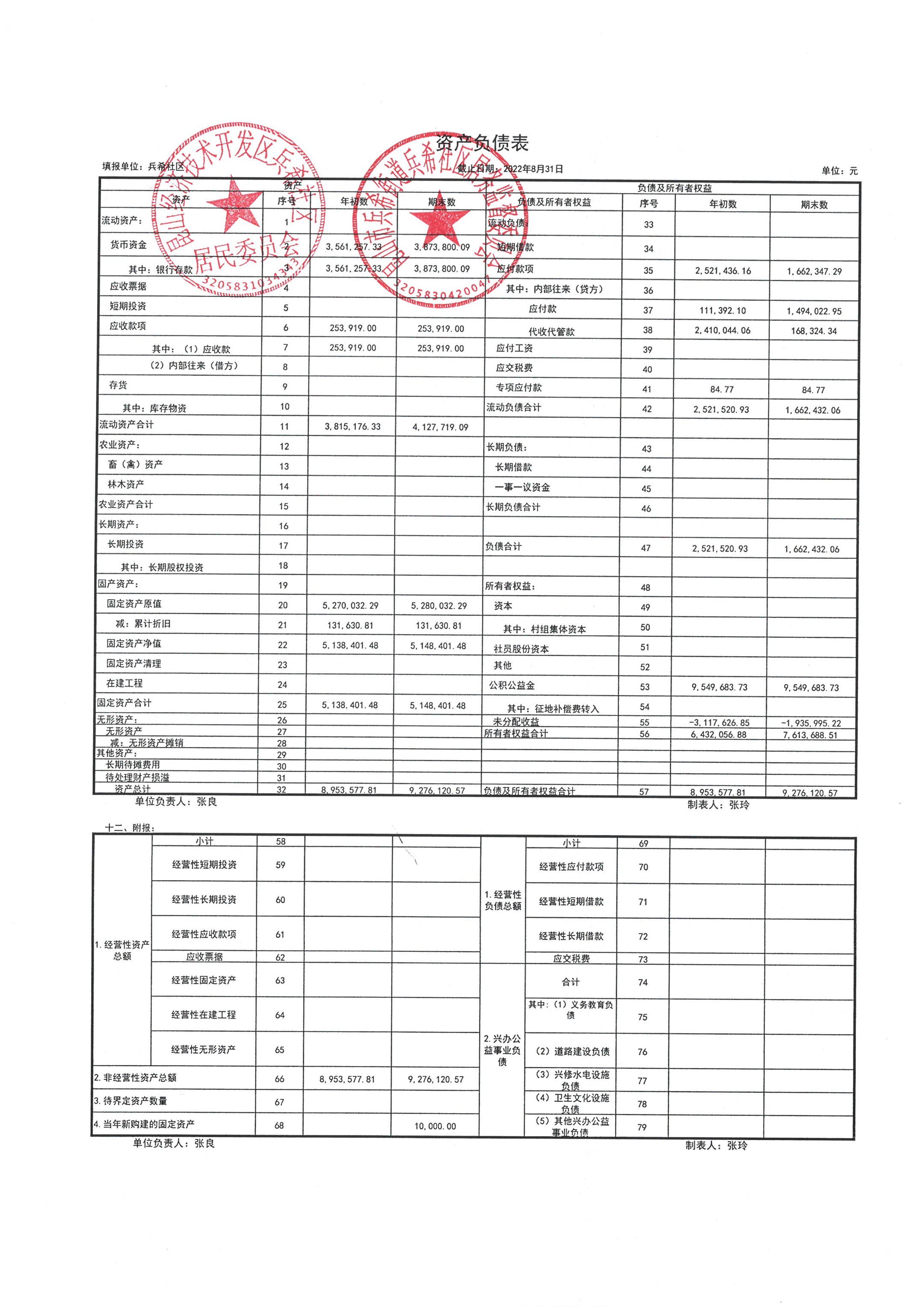 2022年8月份兵希社区财务公开