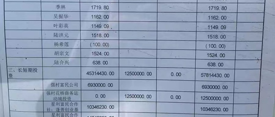 周泾村股份经济合作社2022年10月 财务公示