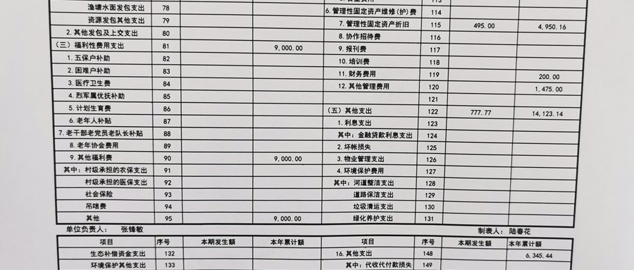 2022年天福村股份经济合作社10月份财务公示
