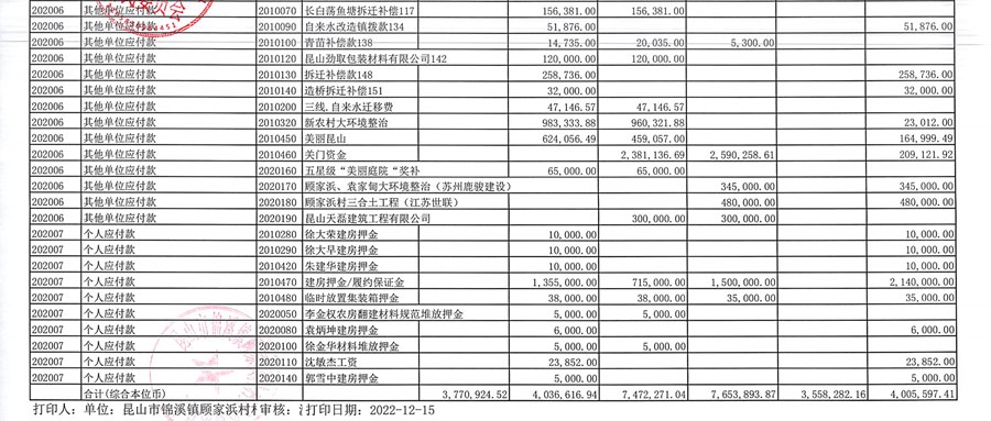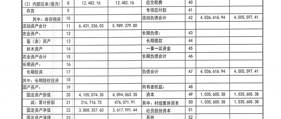 2022年11月份村委会财务公开