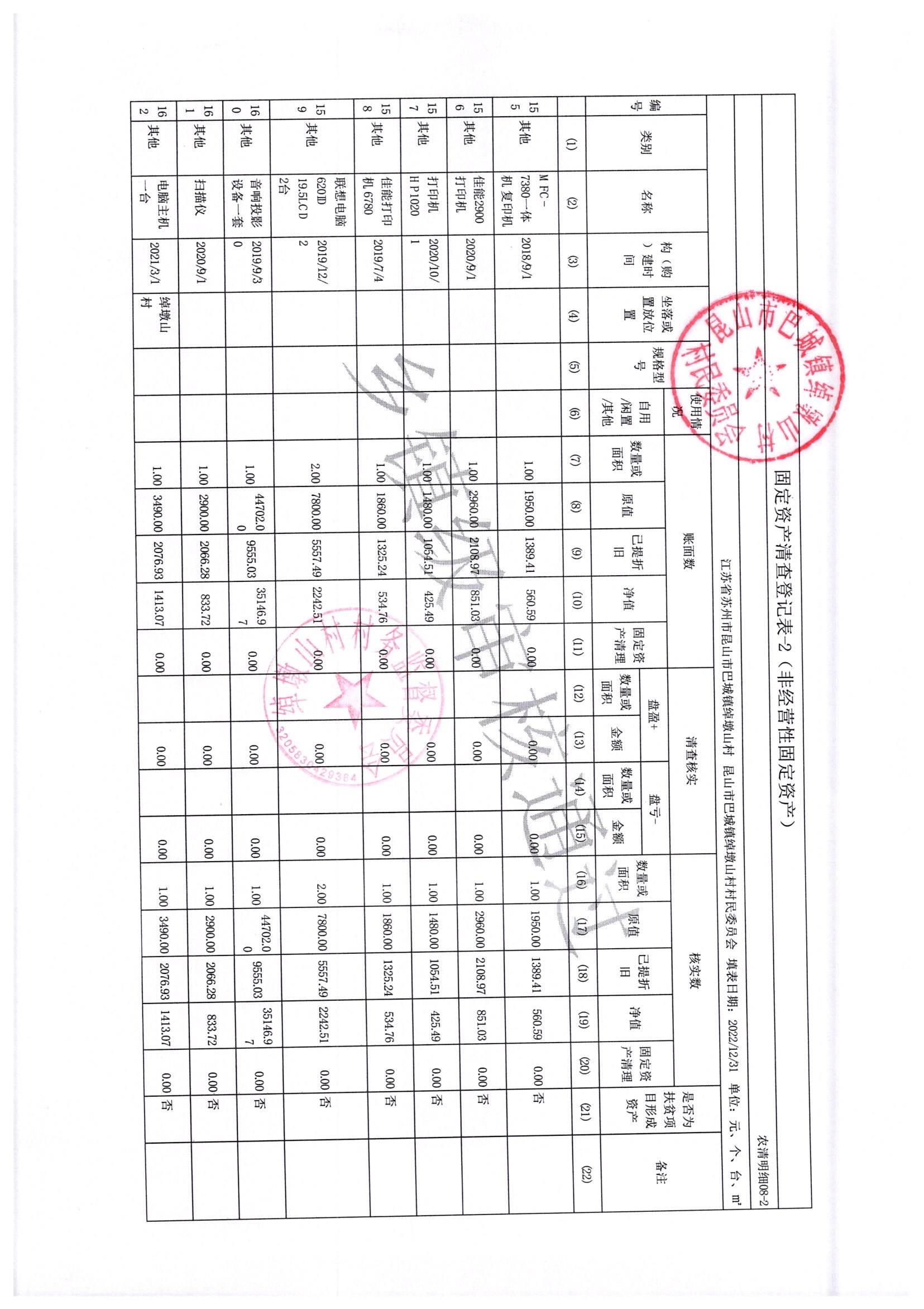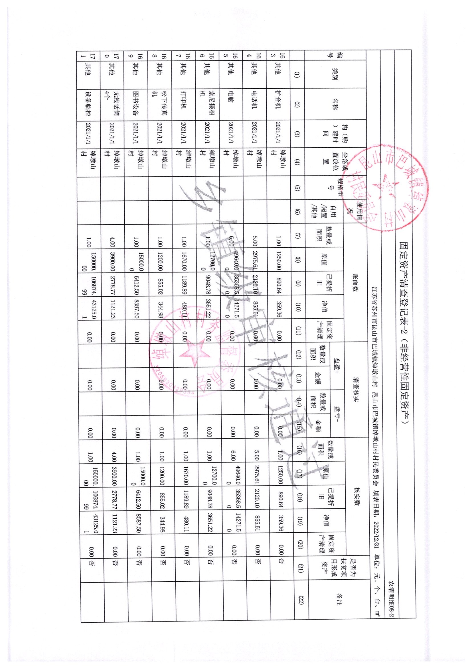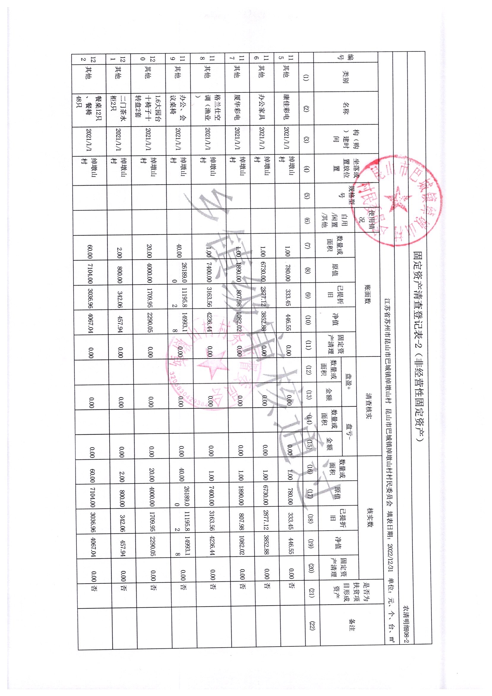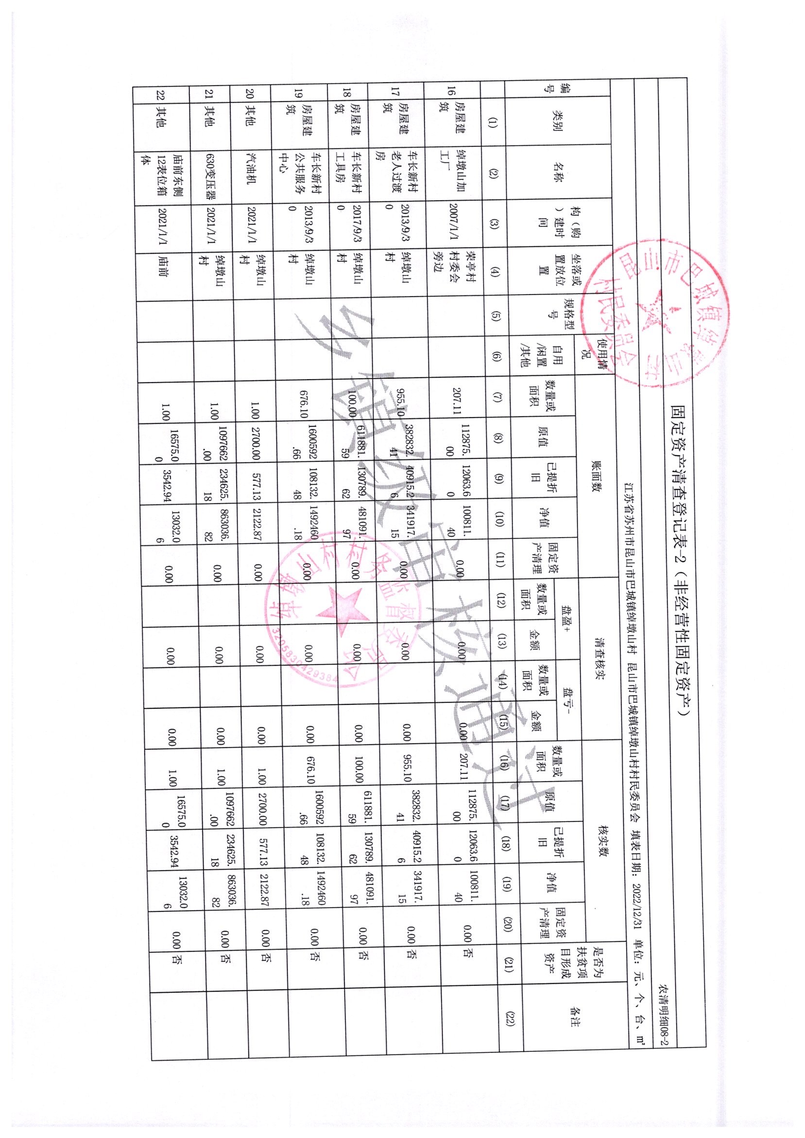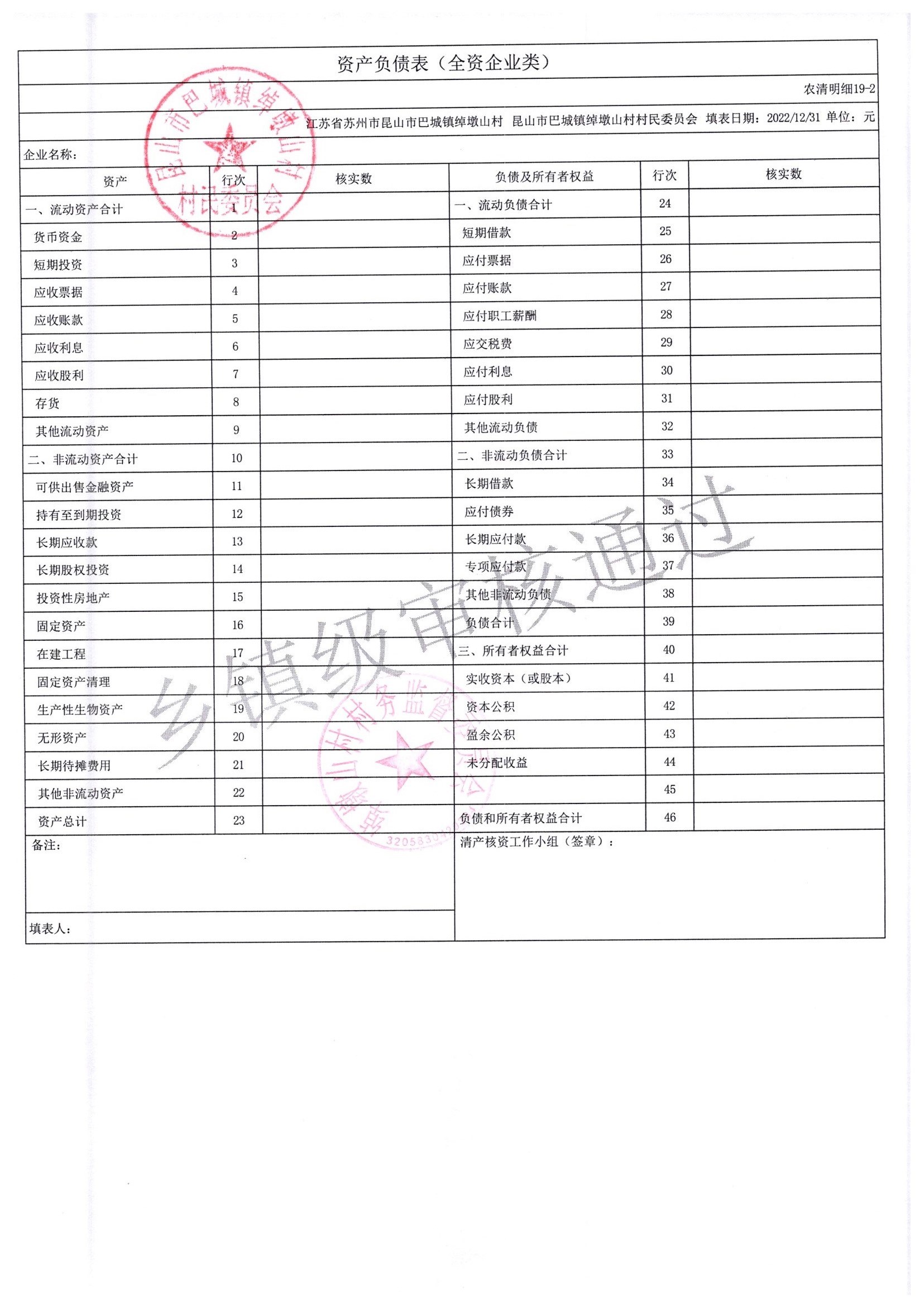 2022年绰墩山村村民委员会清产核资