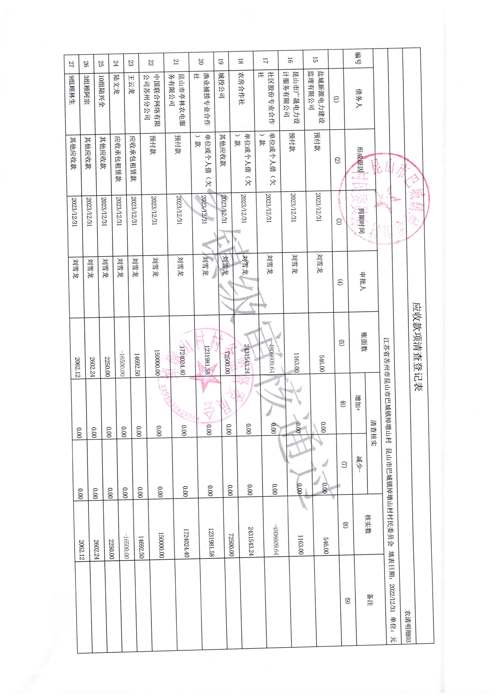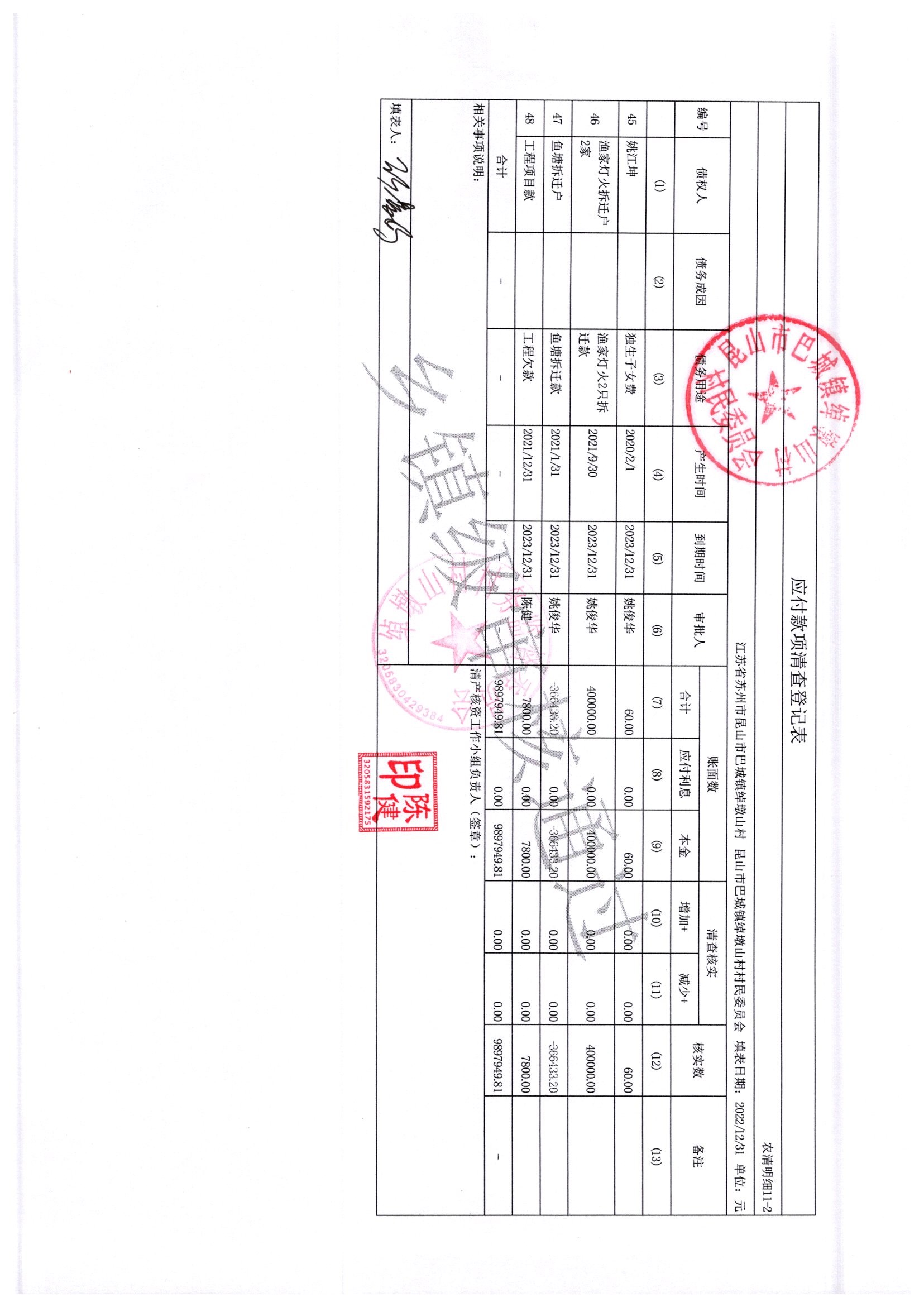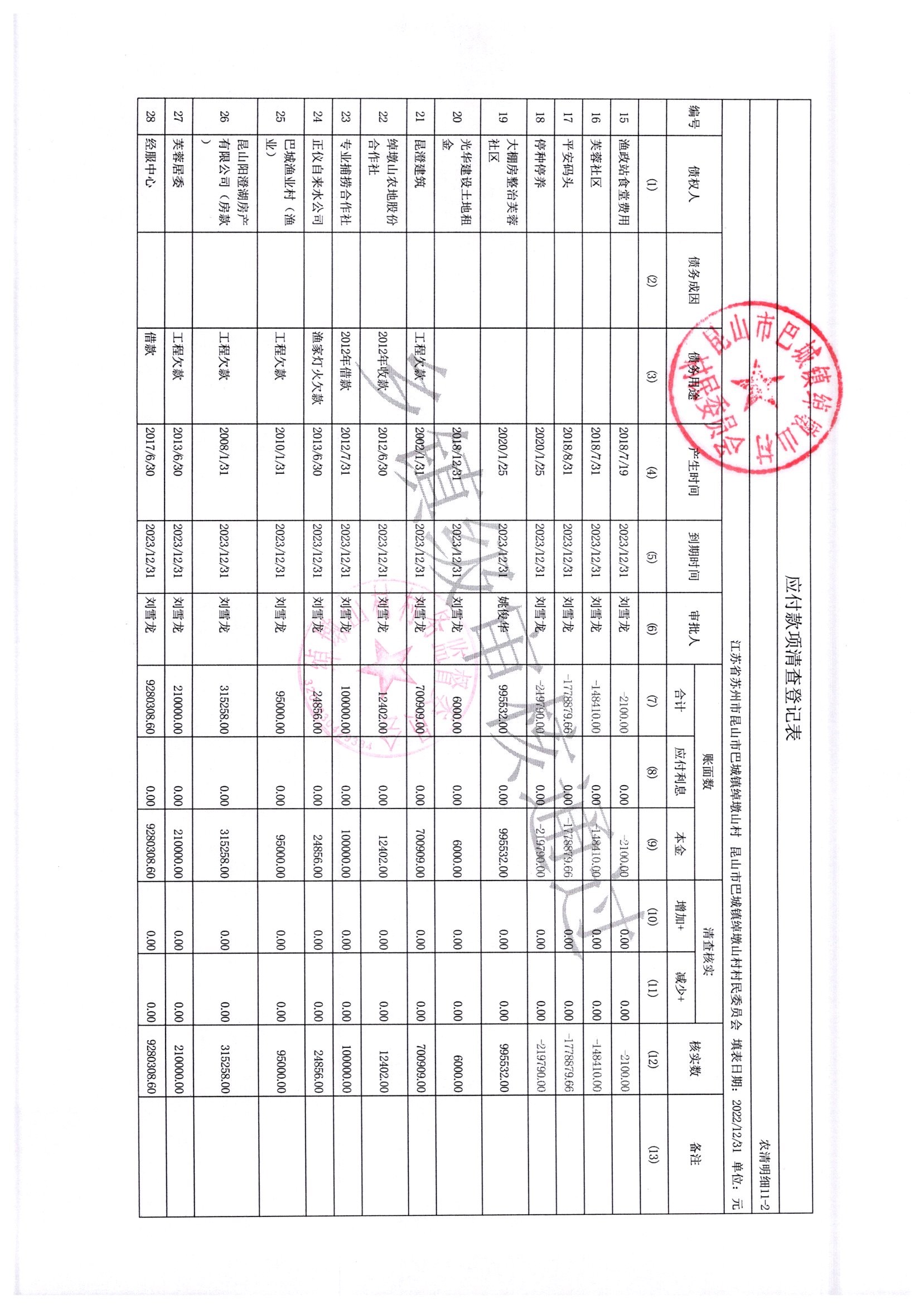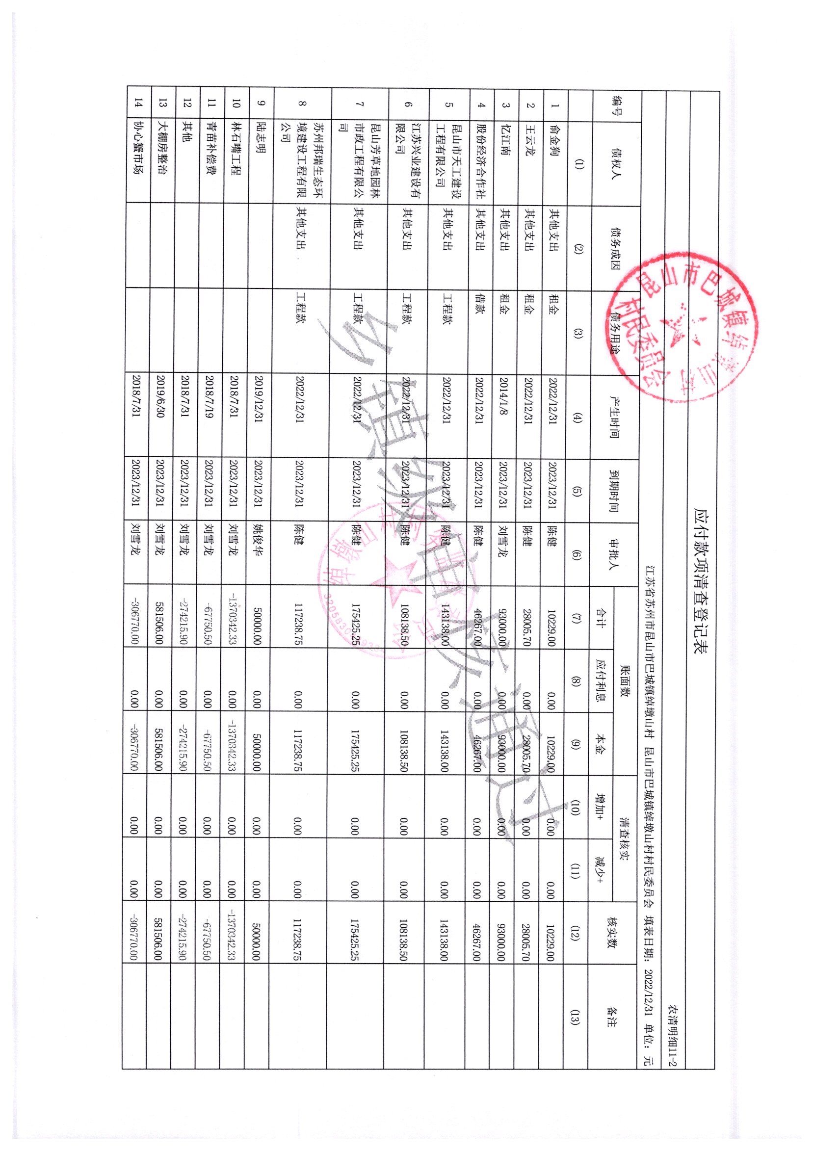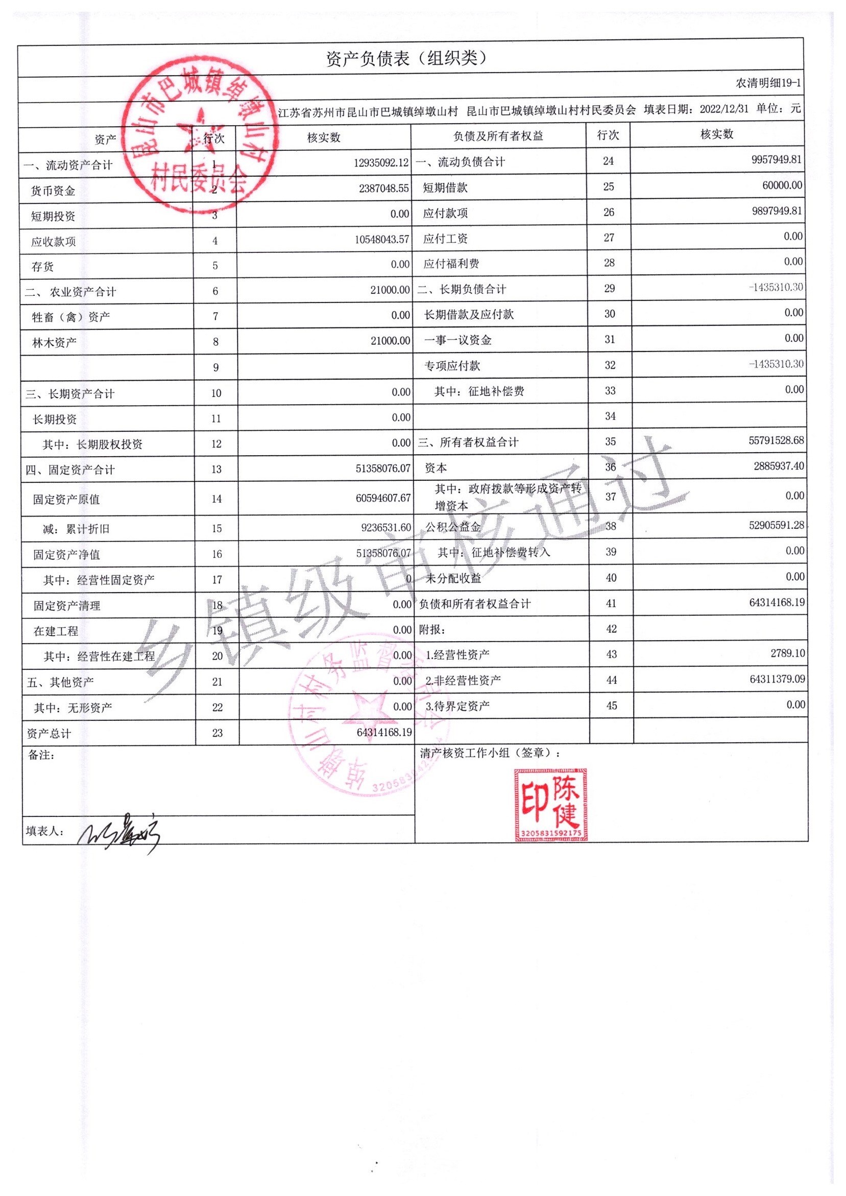 2022年绰墩山村村民委员会清产核资