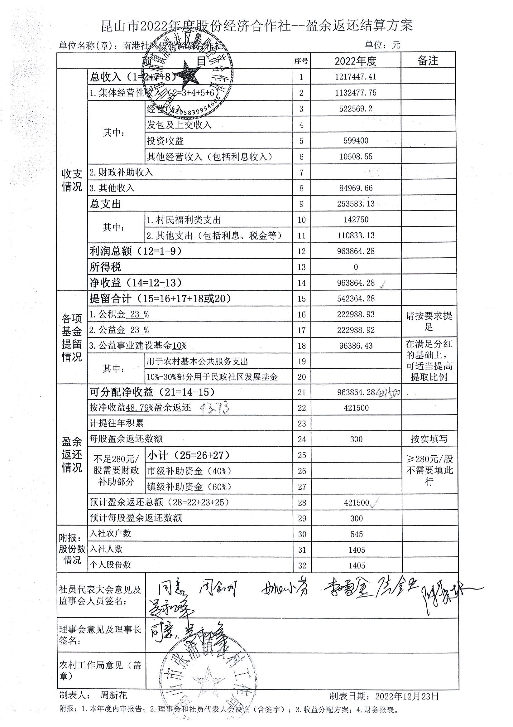 2022年度股份经济合作社——盈余返还结算方案(南港社区股份经济合作社)