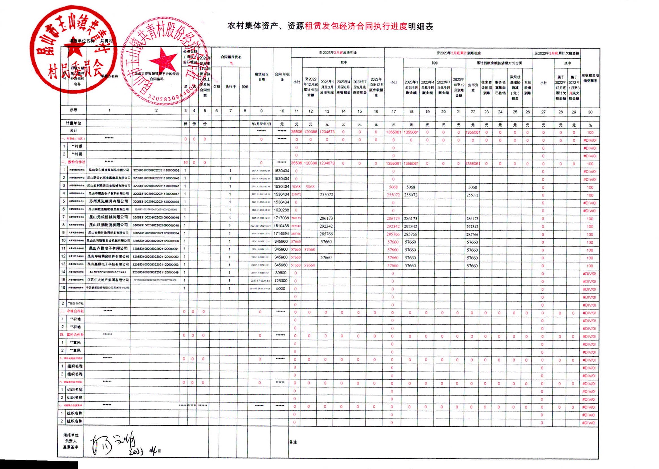2023年共青村农村集体资产、资源租赁发包经济合同执行进度明细表
