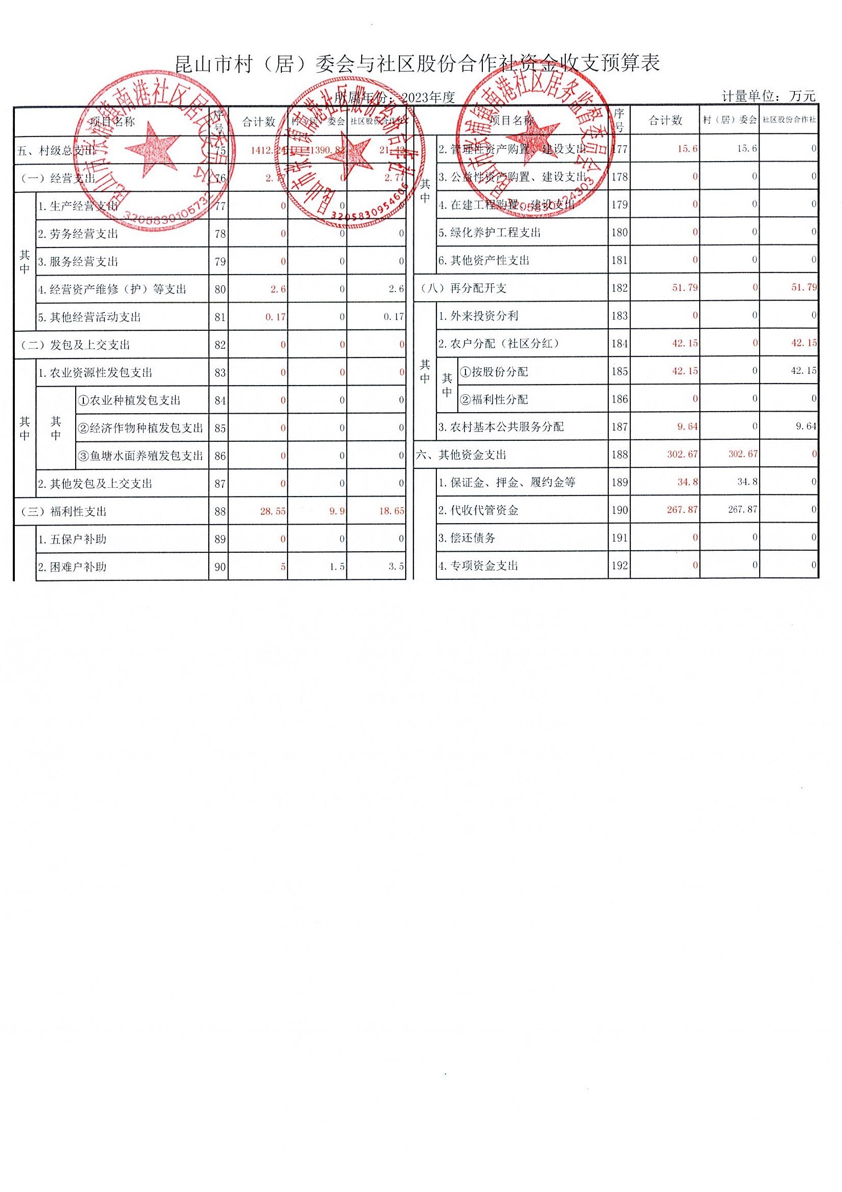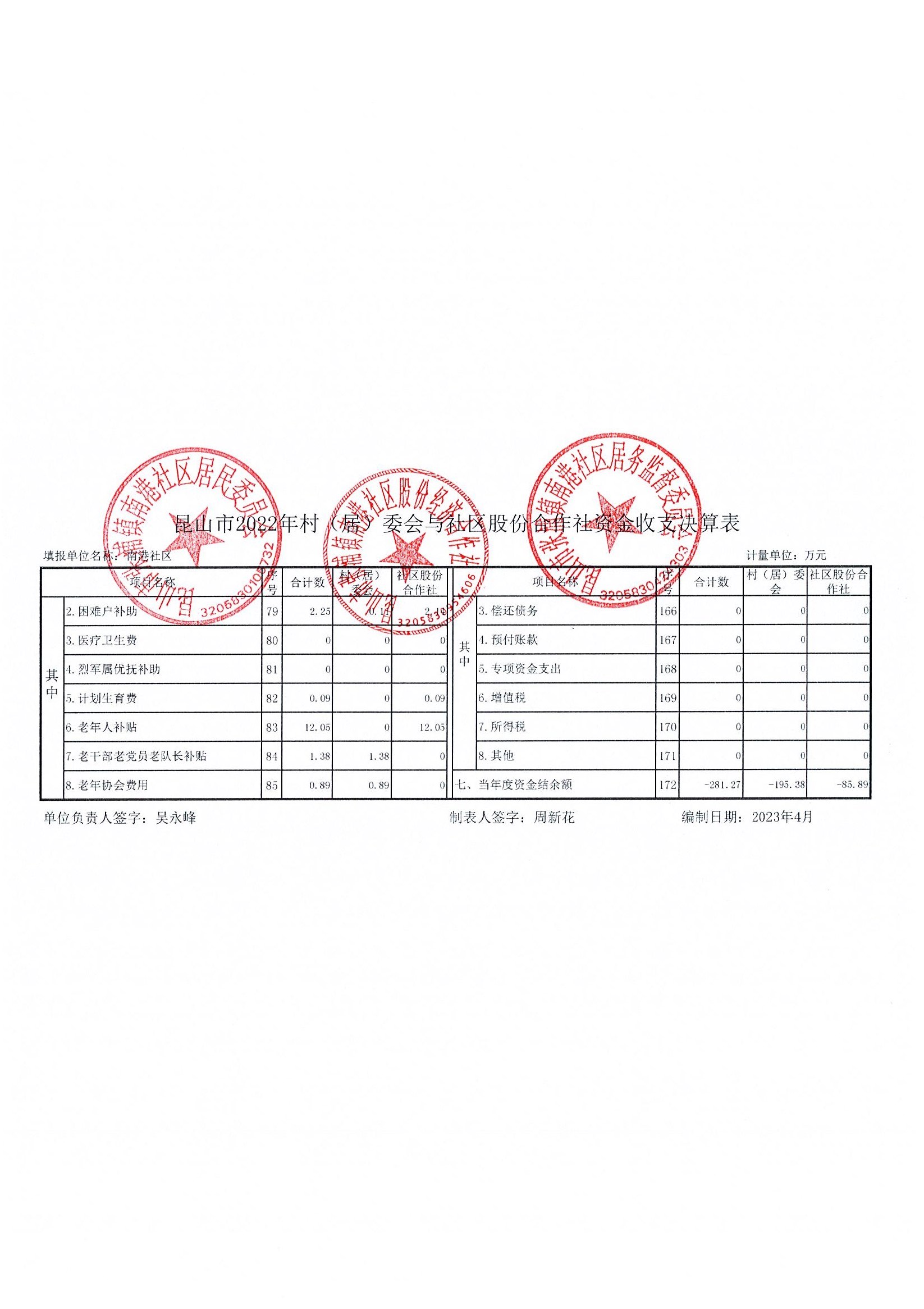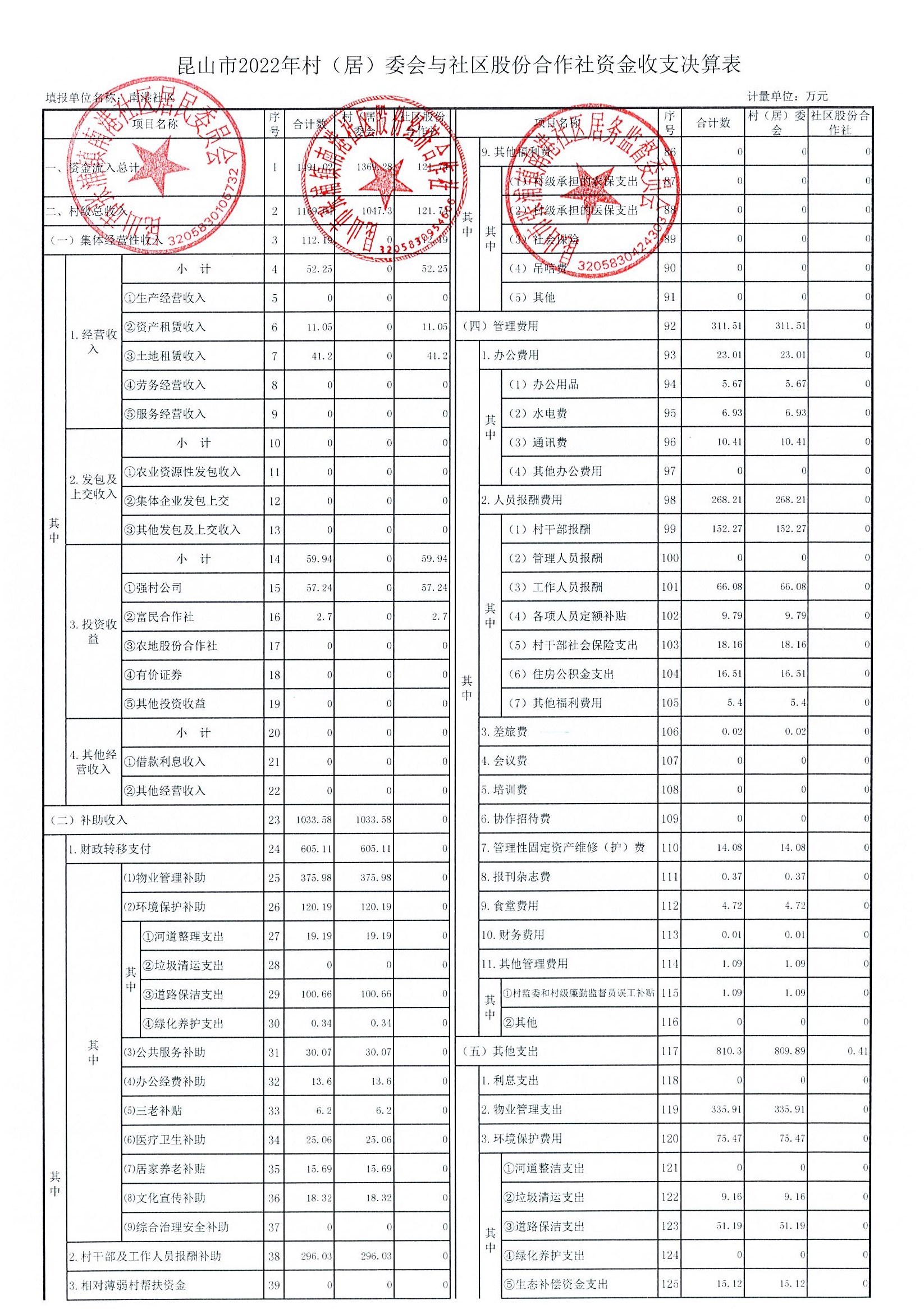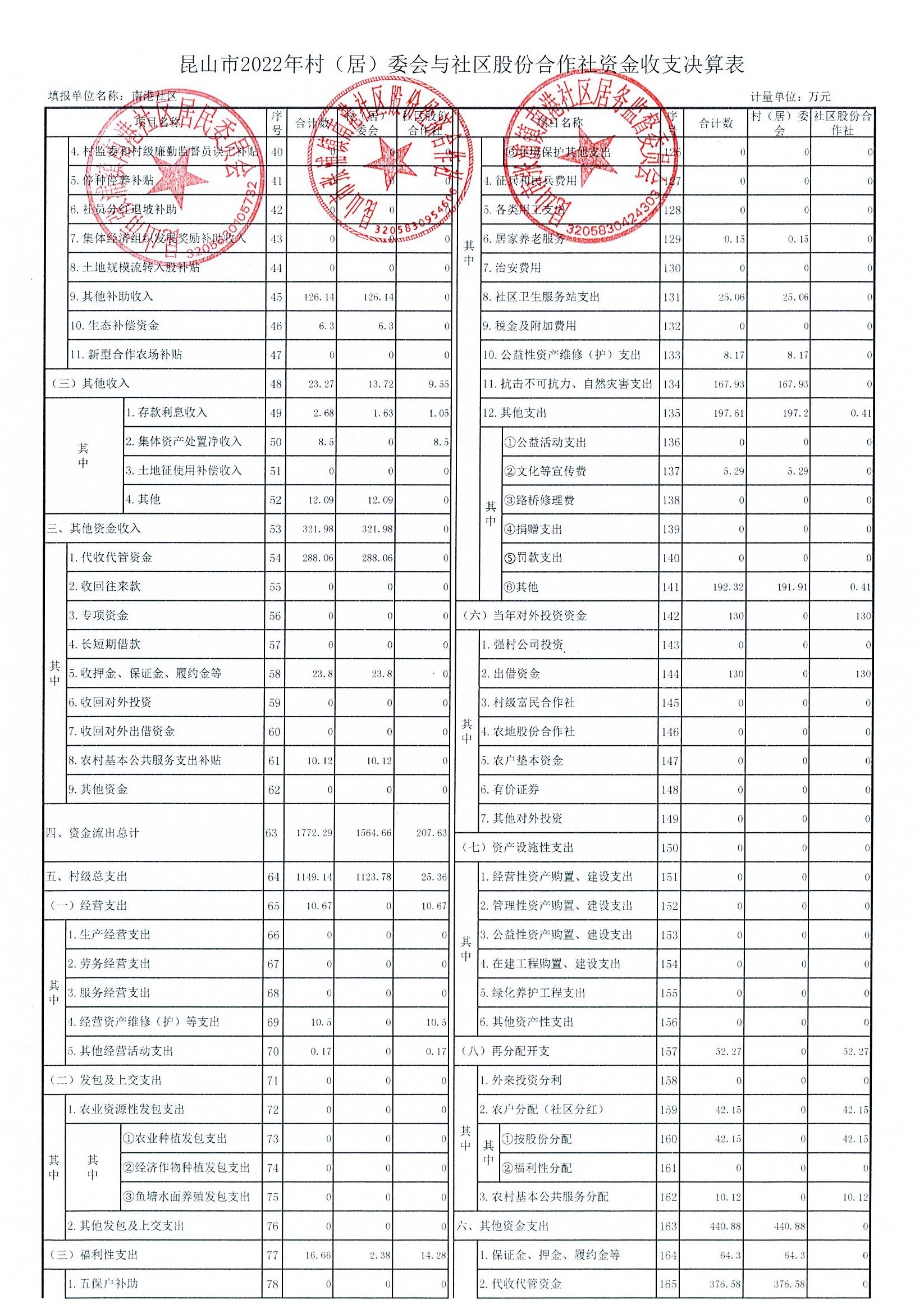 南港社区2022年资金收支决算、2023年资金收支预算