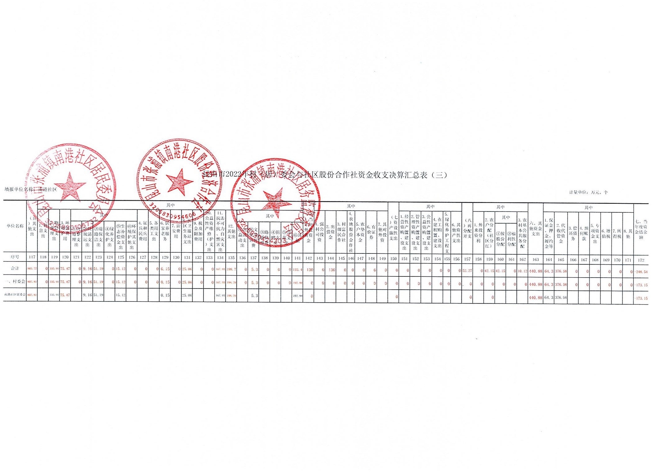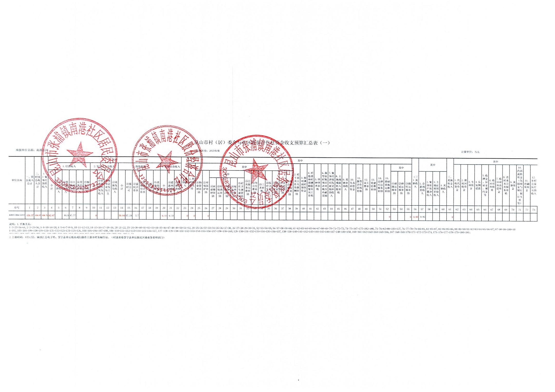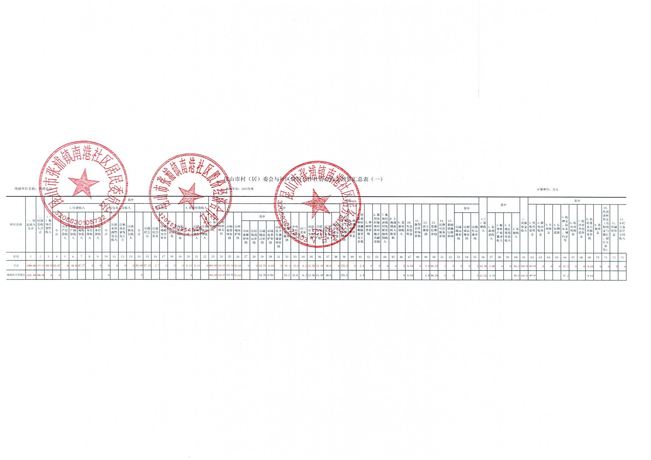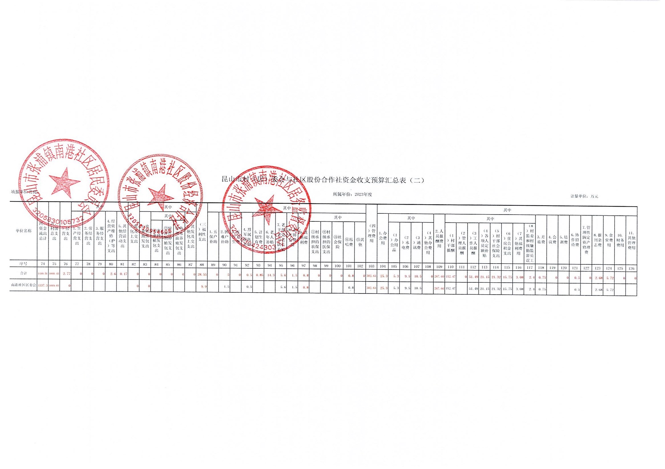 南港社区2022年资金收支决算、2023年资金收支预算