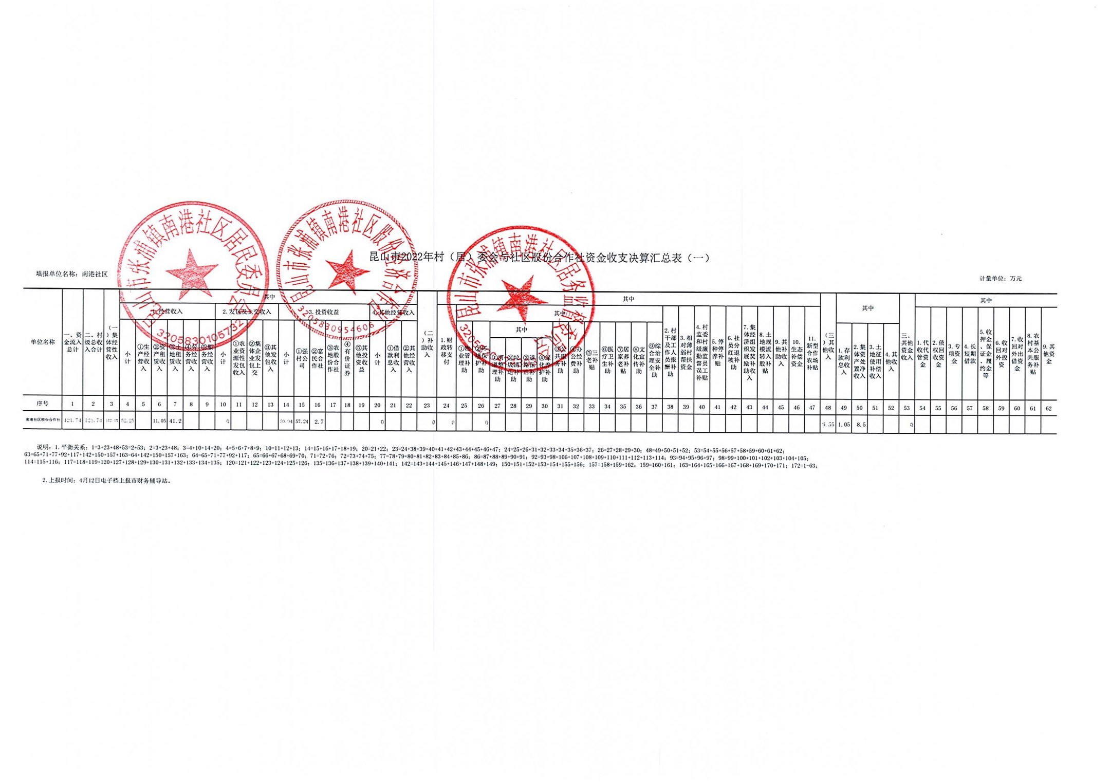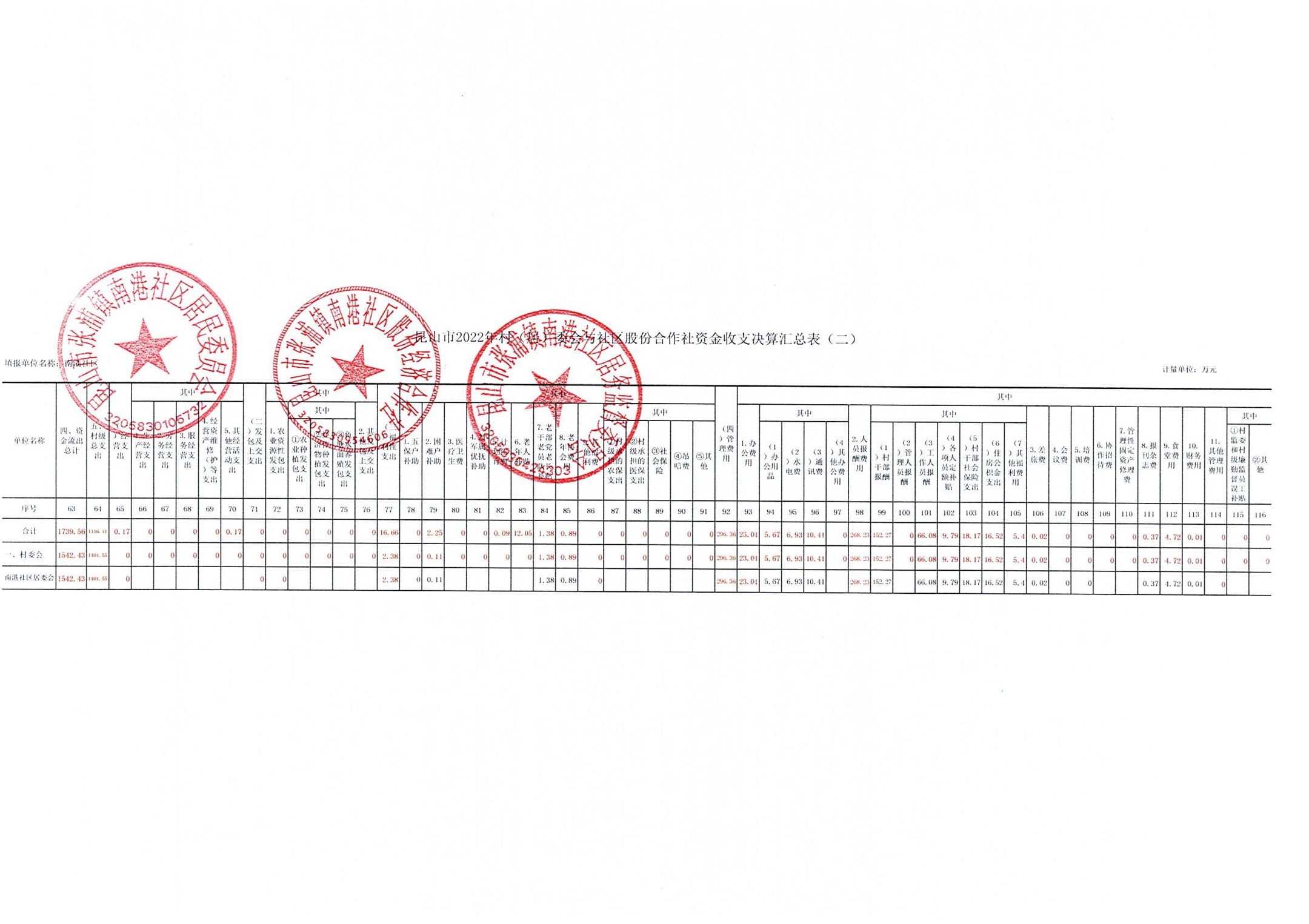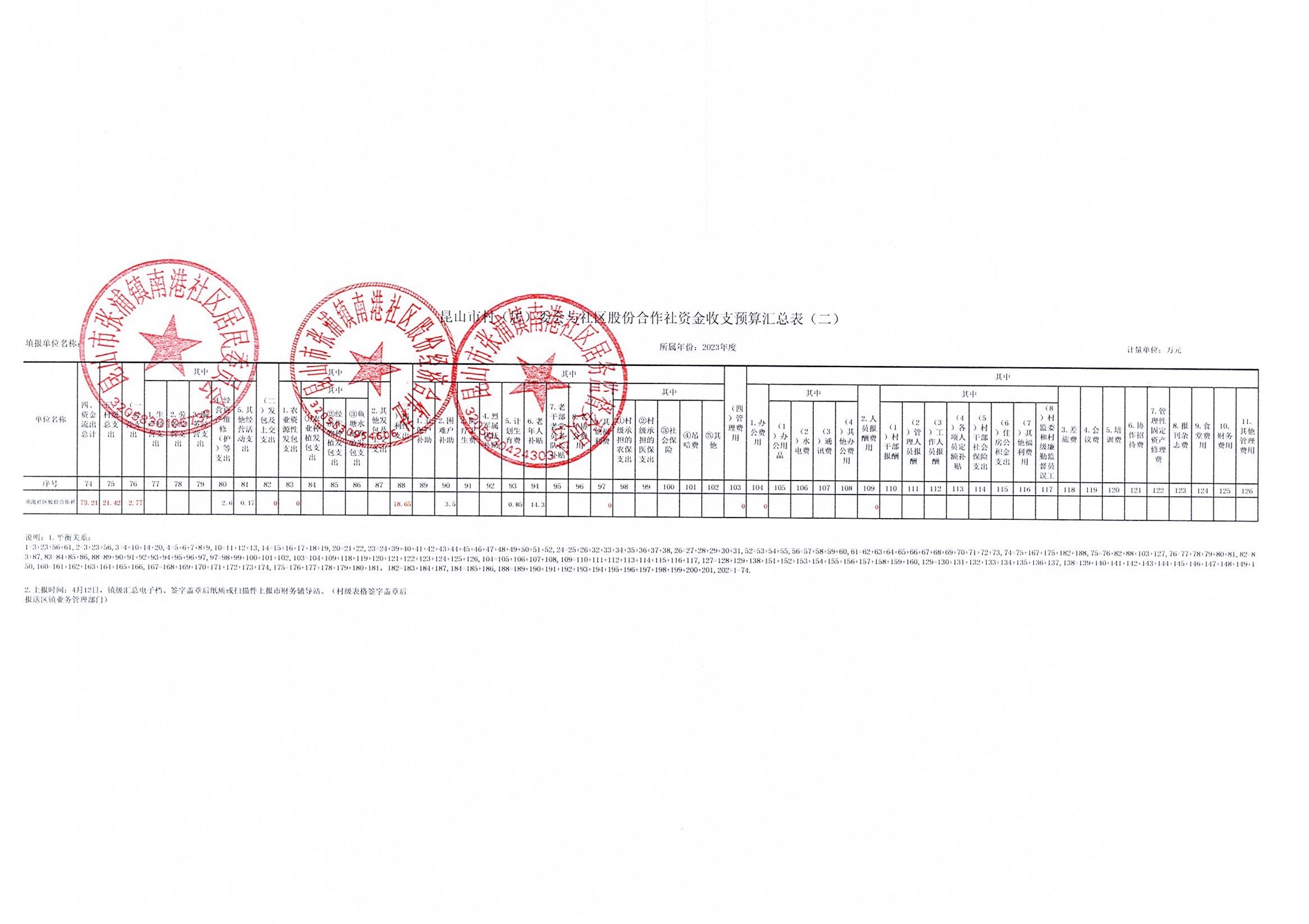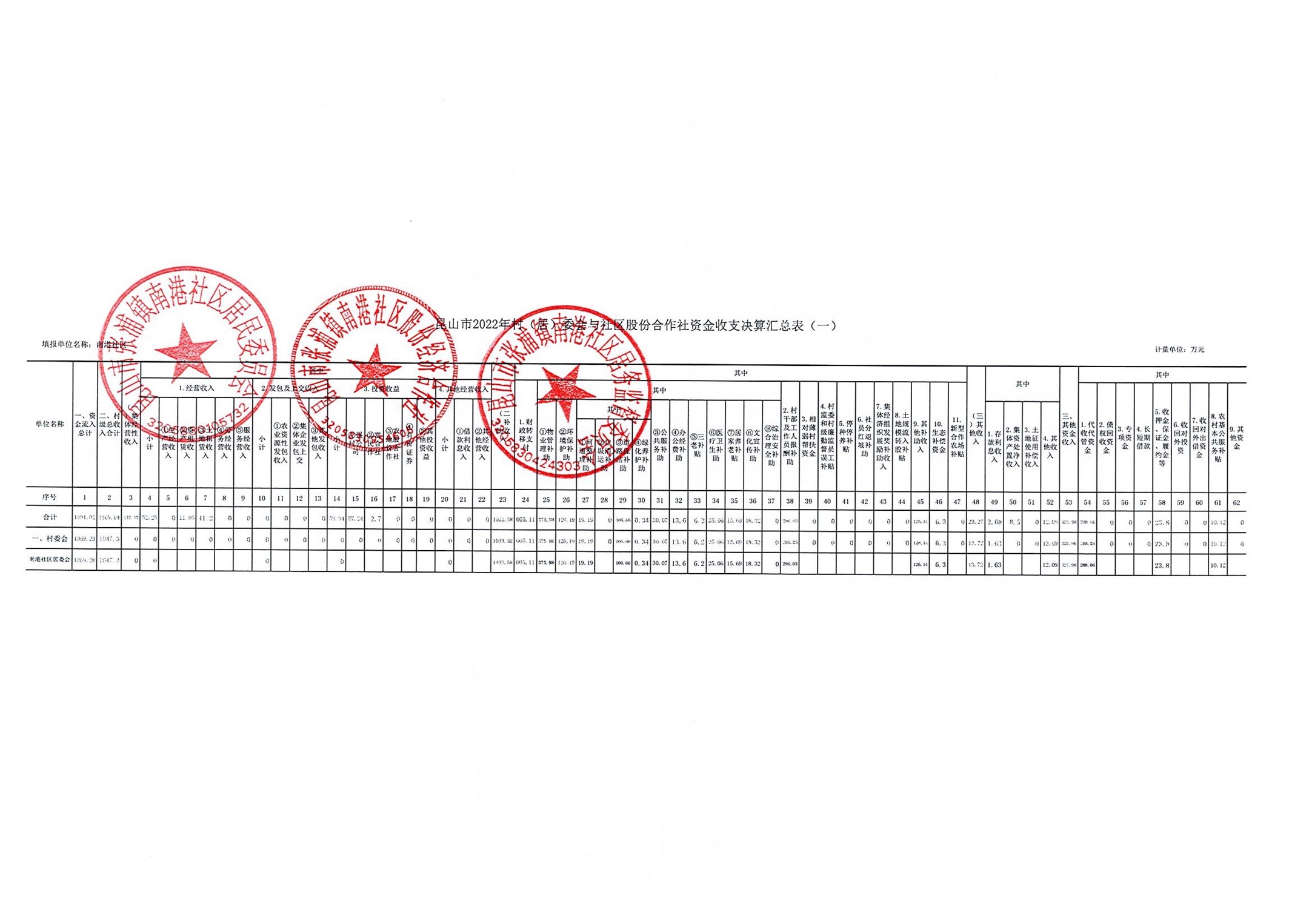 南港社区2022年资金收支决算、2023年资金收支预算
