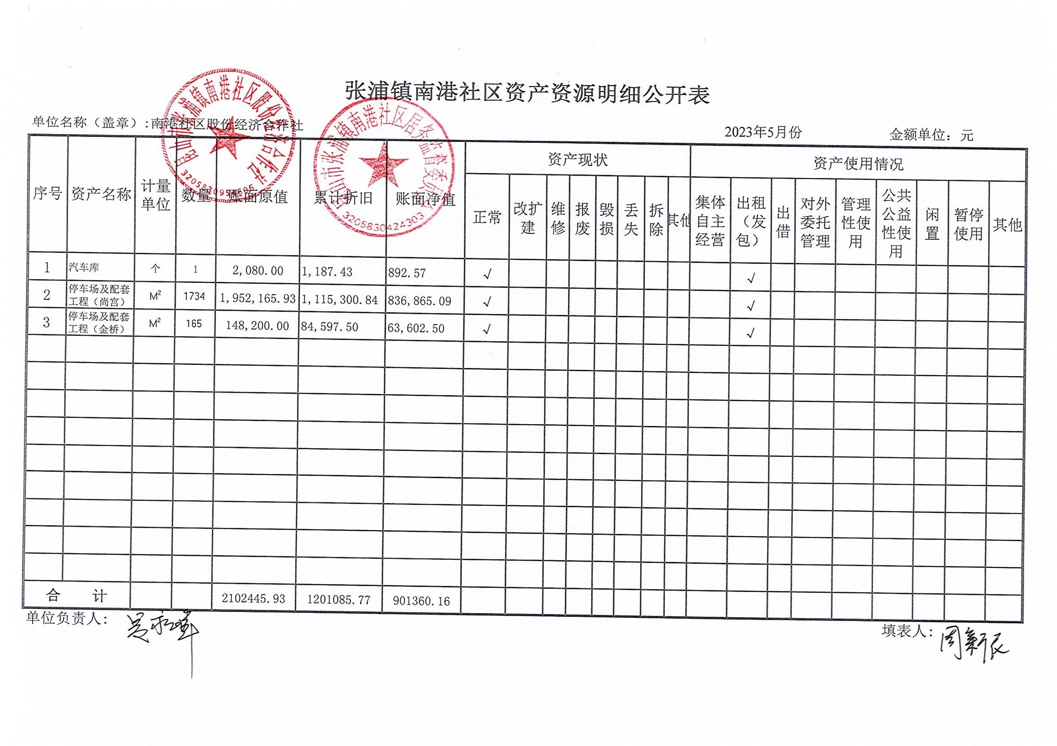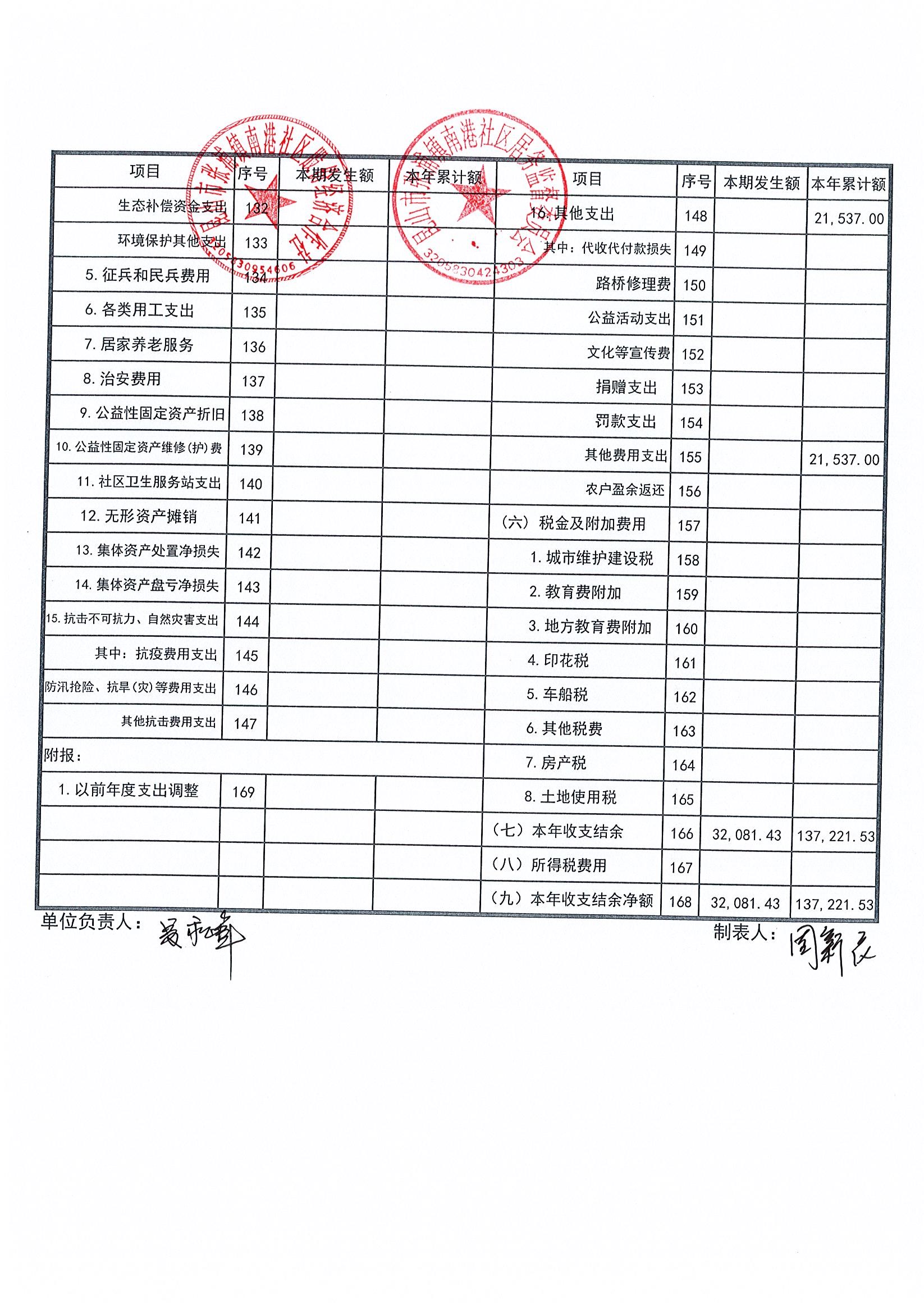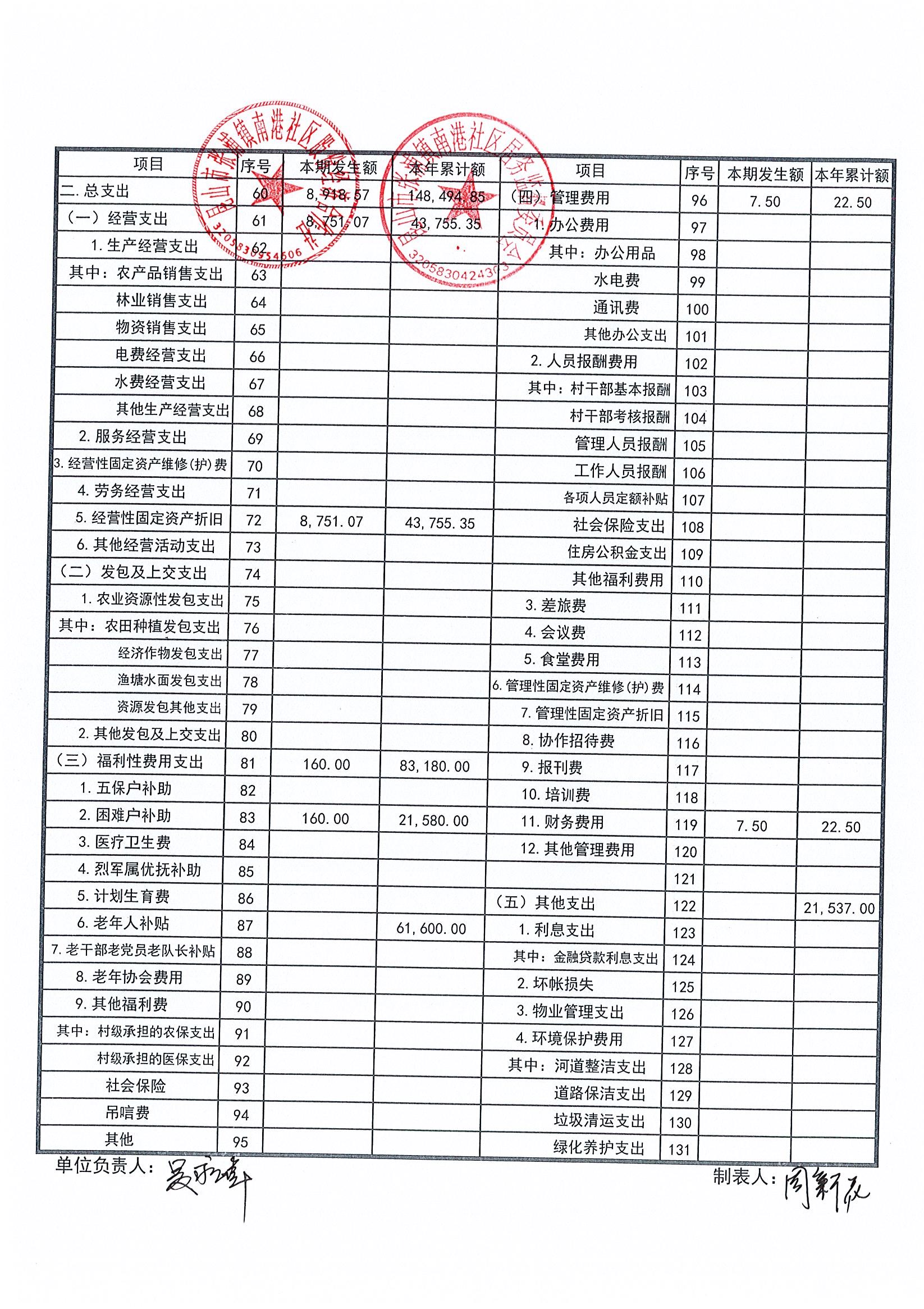 南港社区股份经济合作社2023年5月财务公开(定期公开)