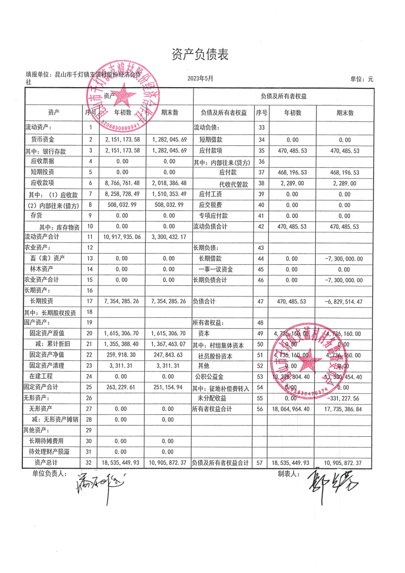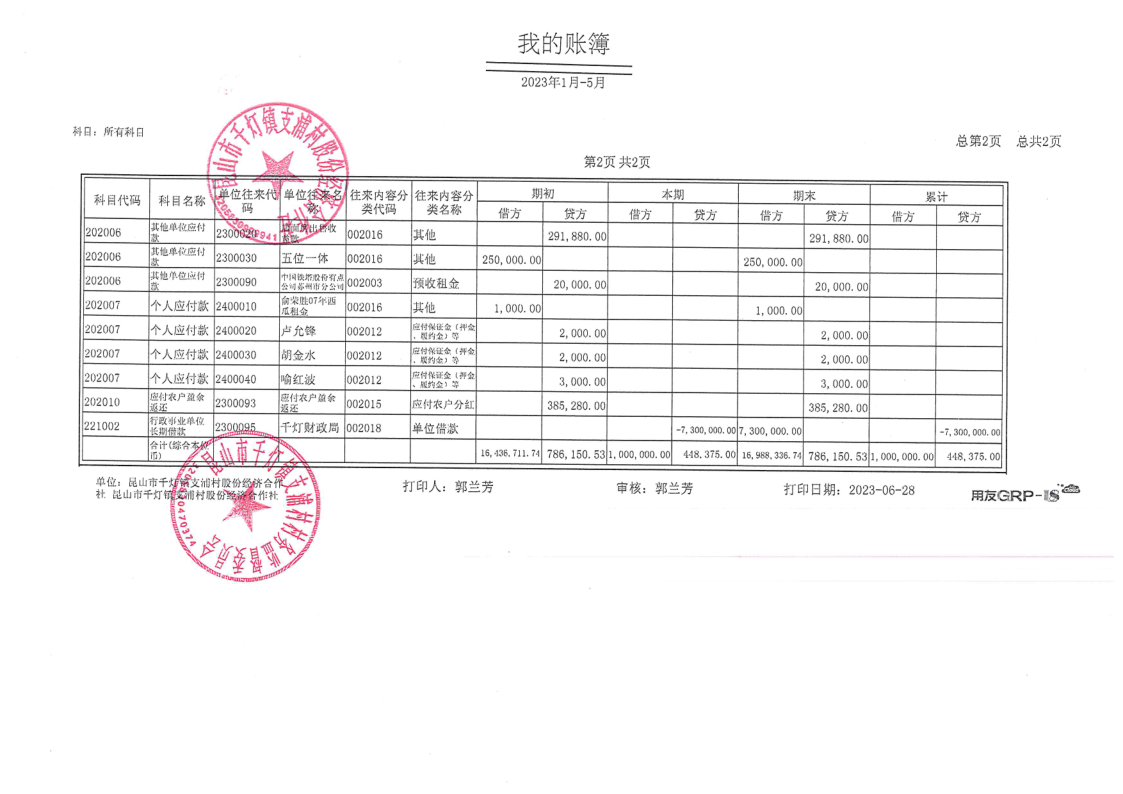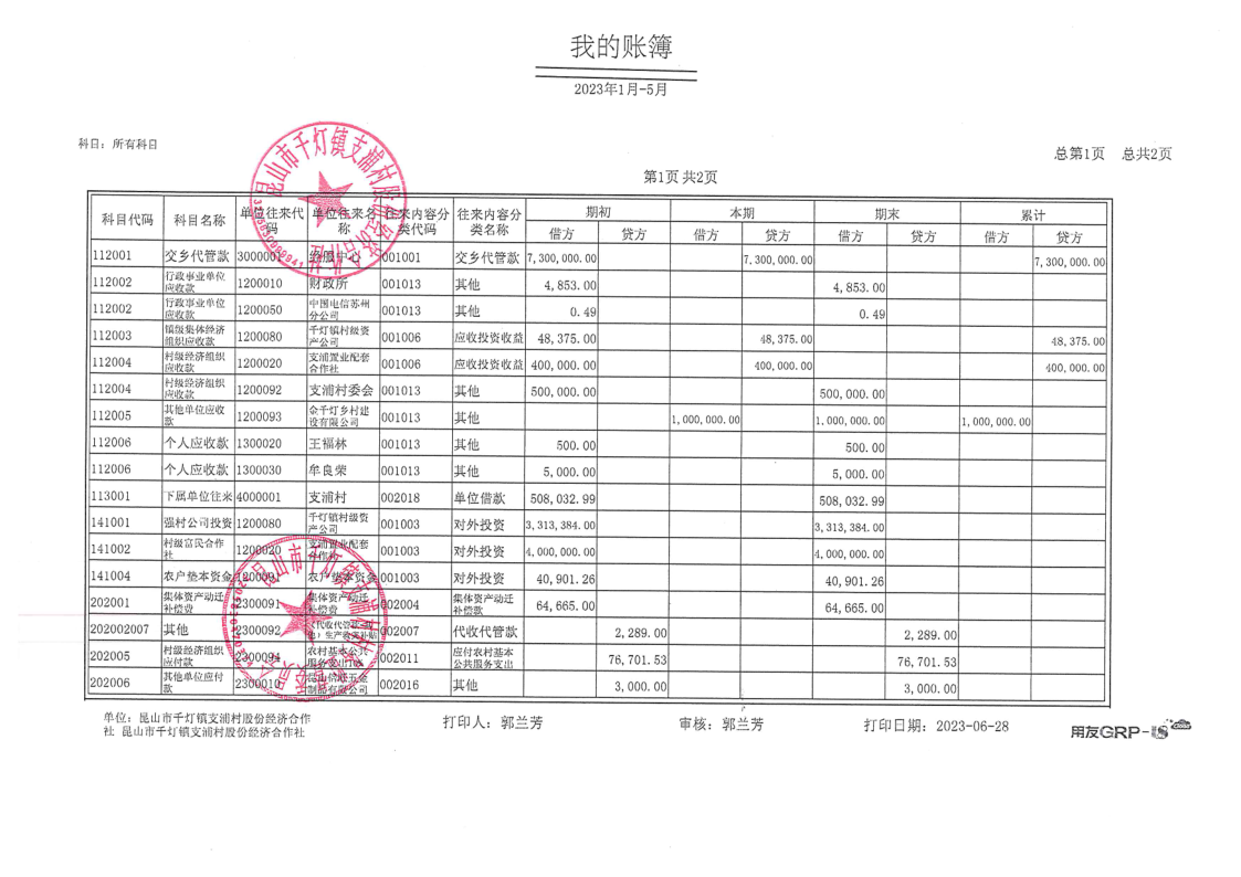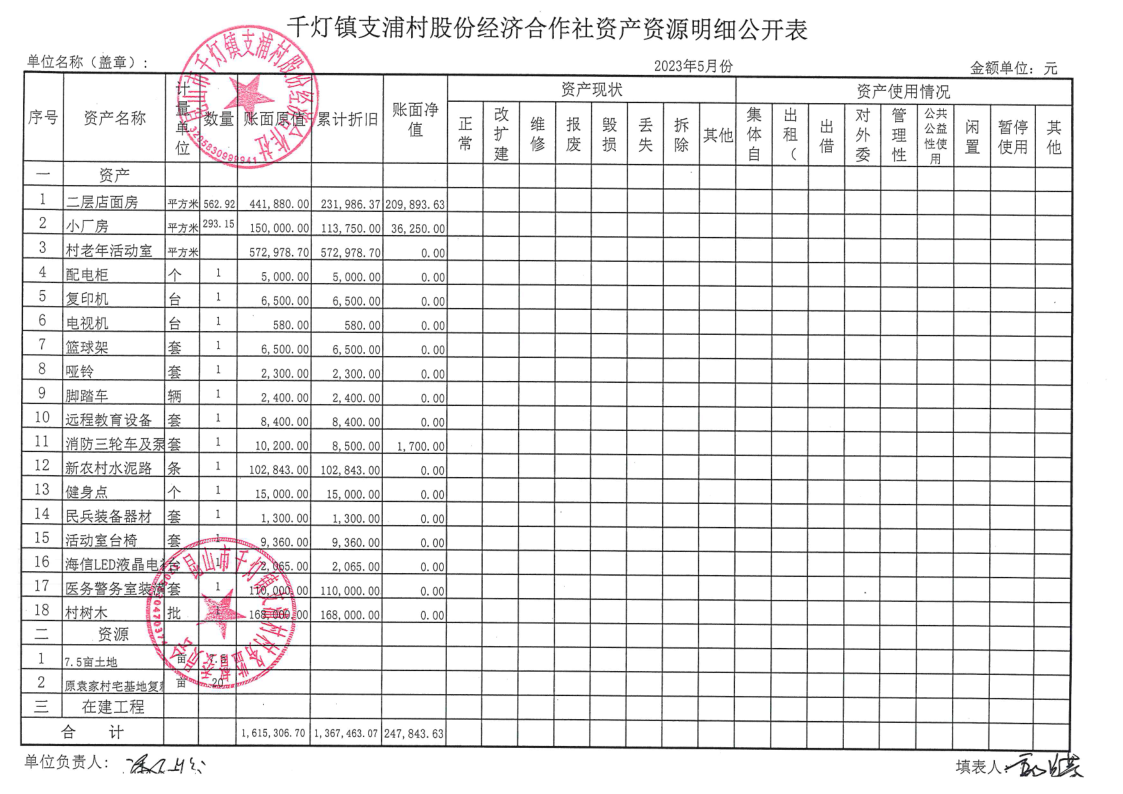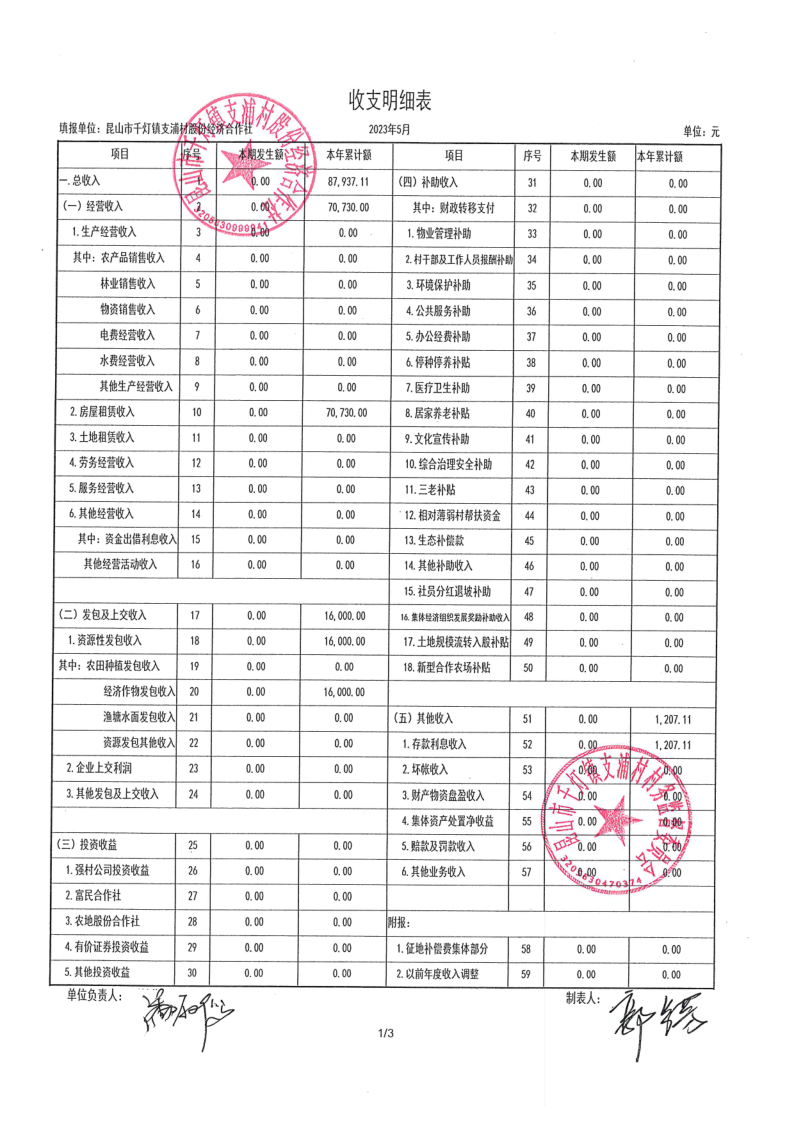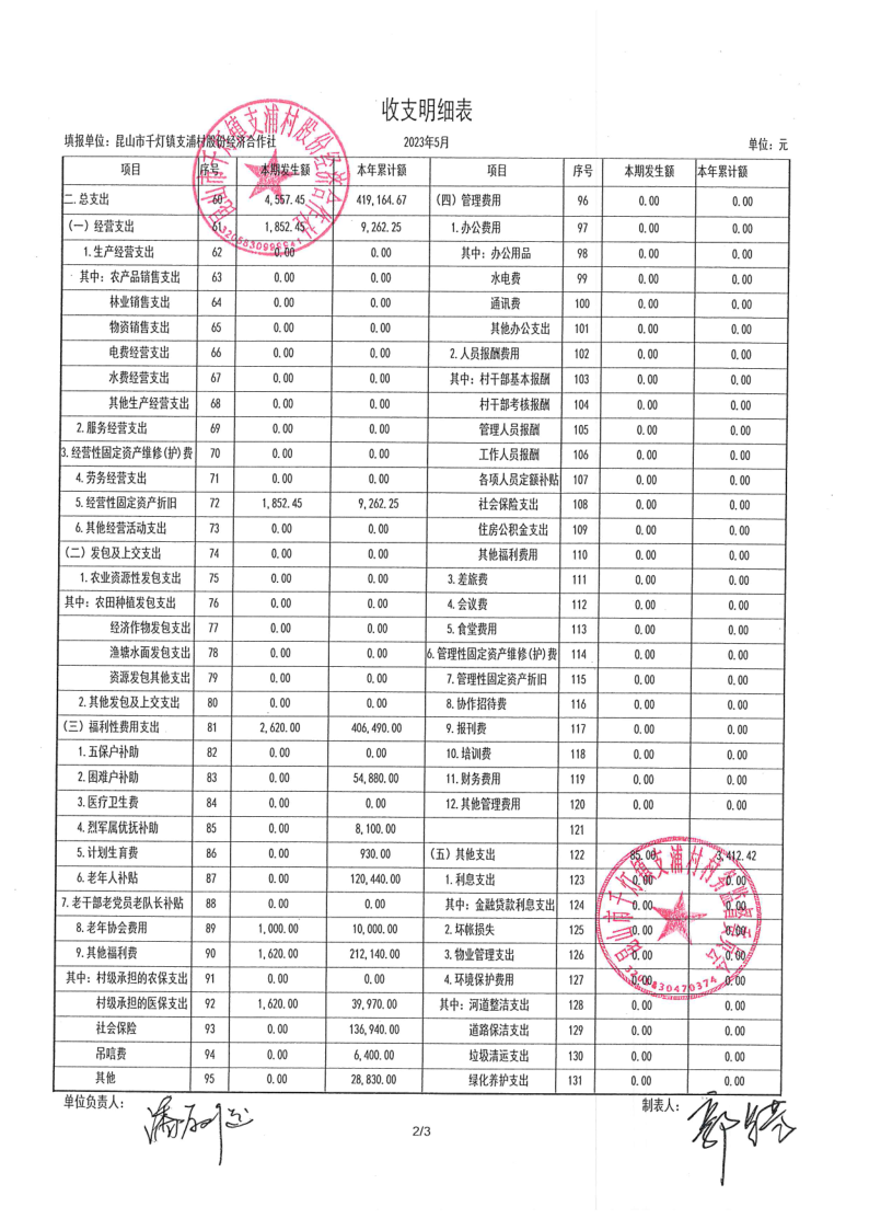 支浦股份合作社2023年5月财务公开