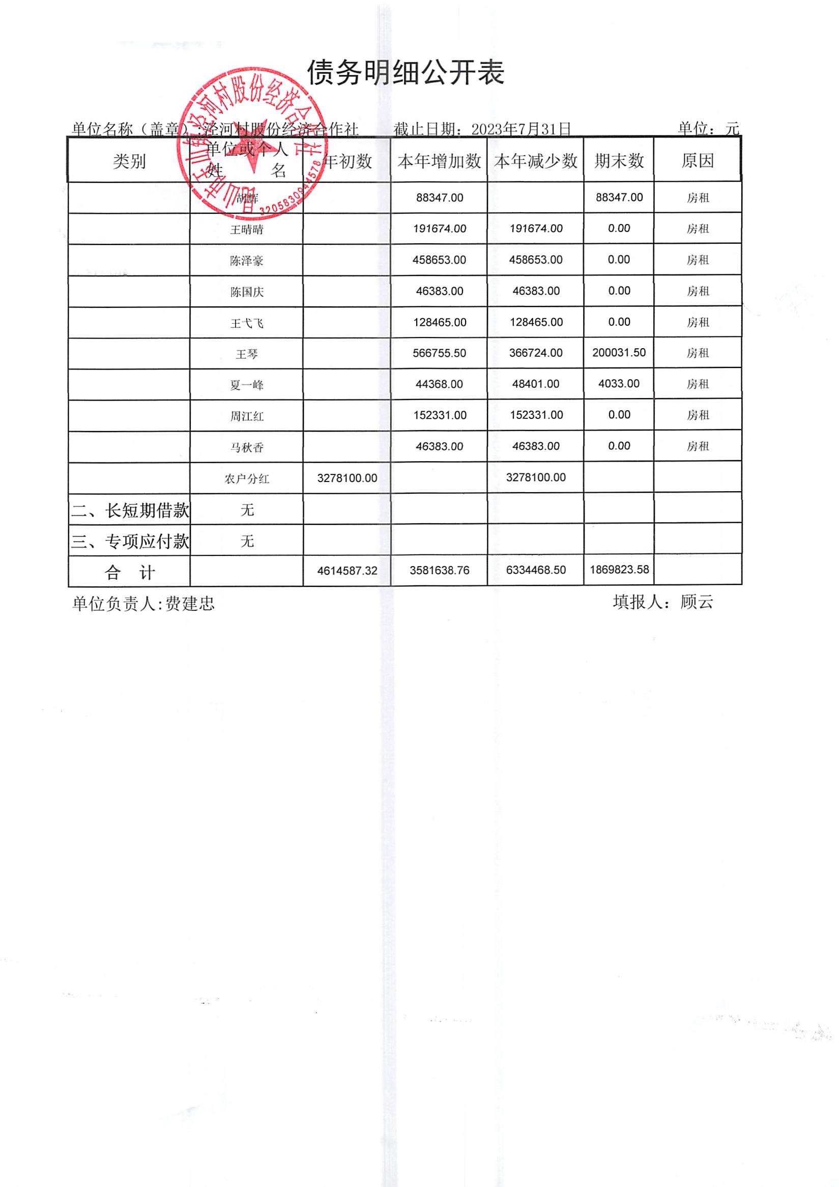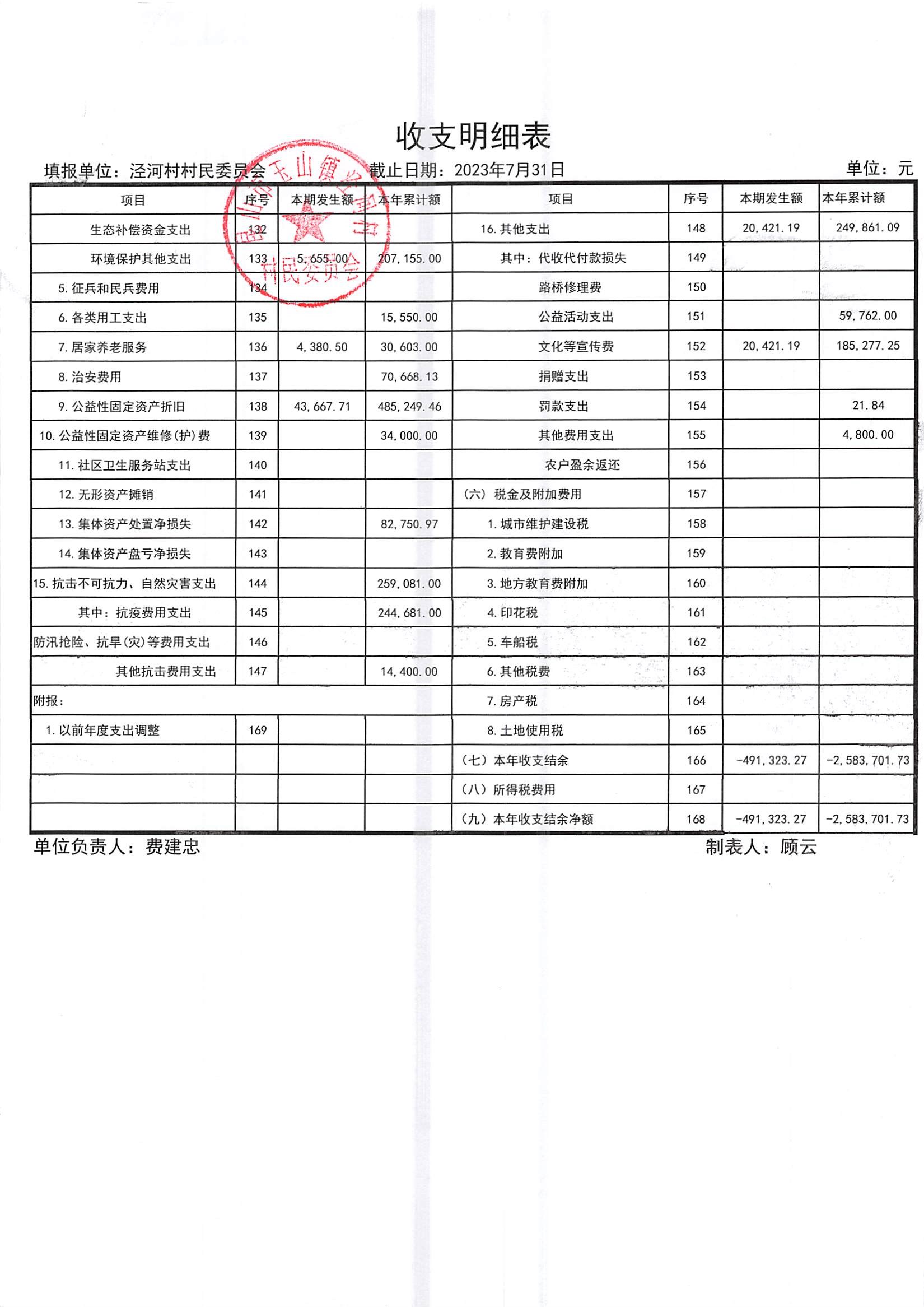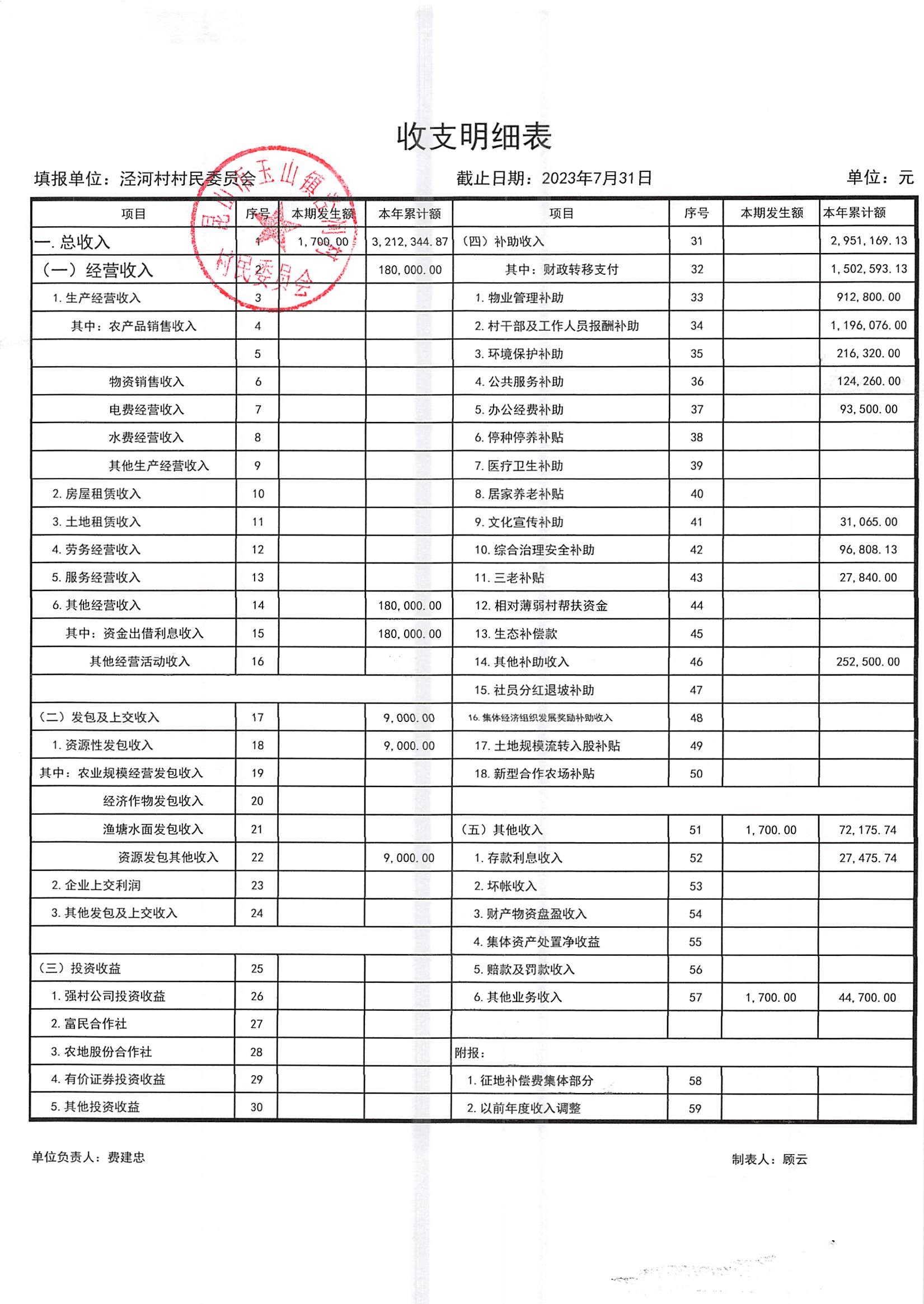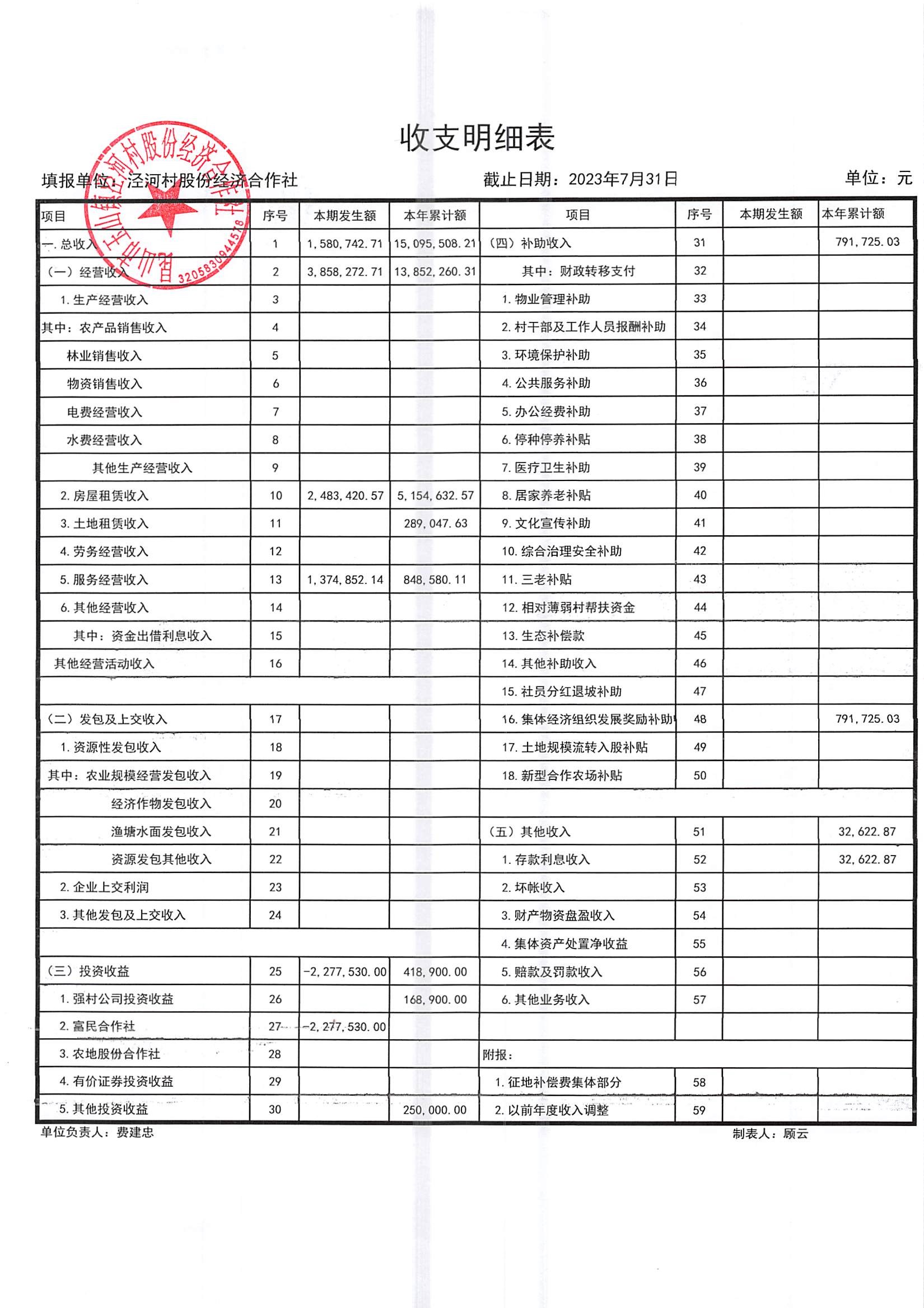 2023年七月份财务公开