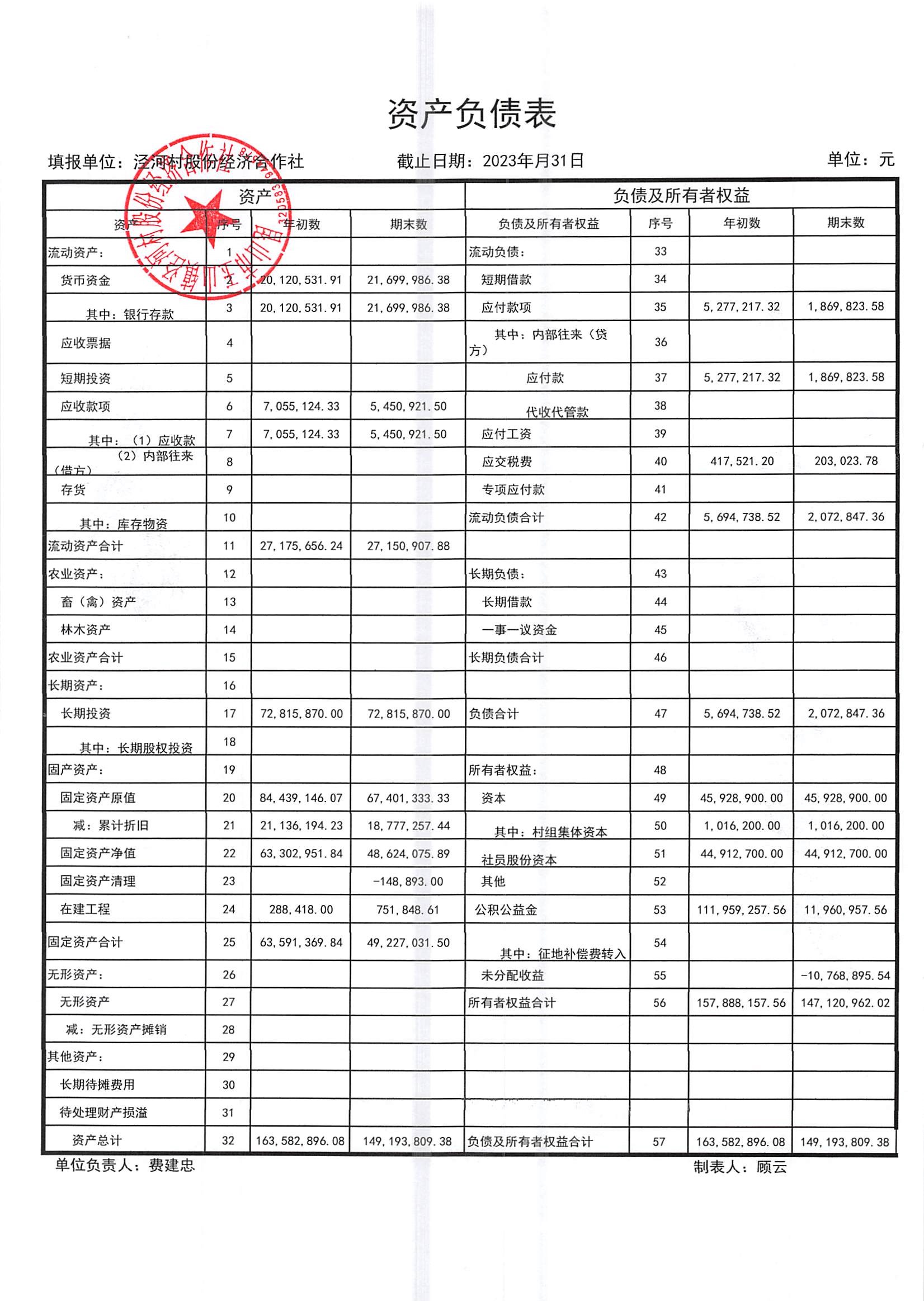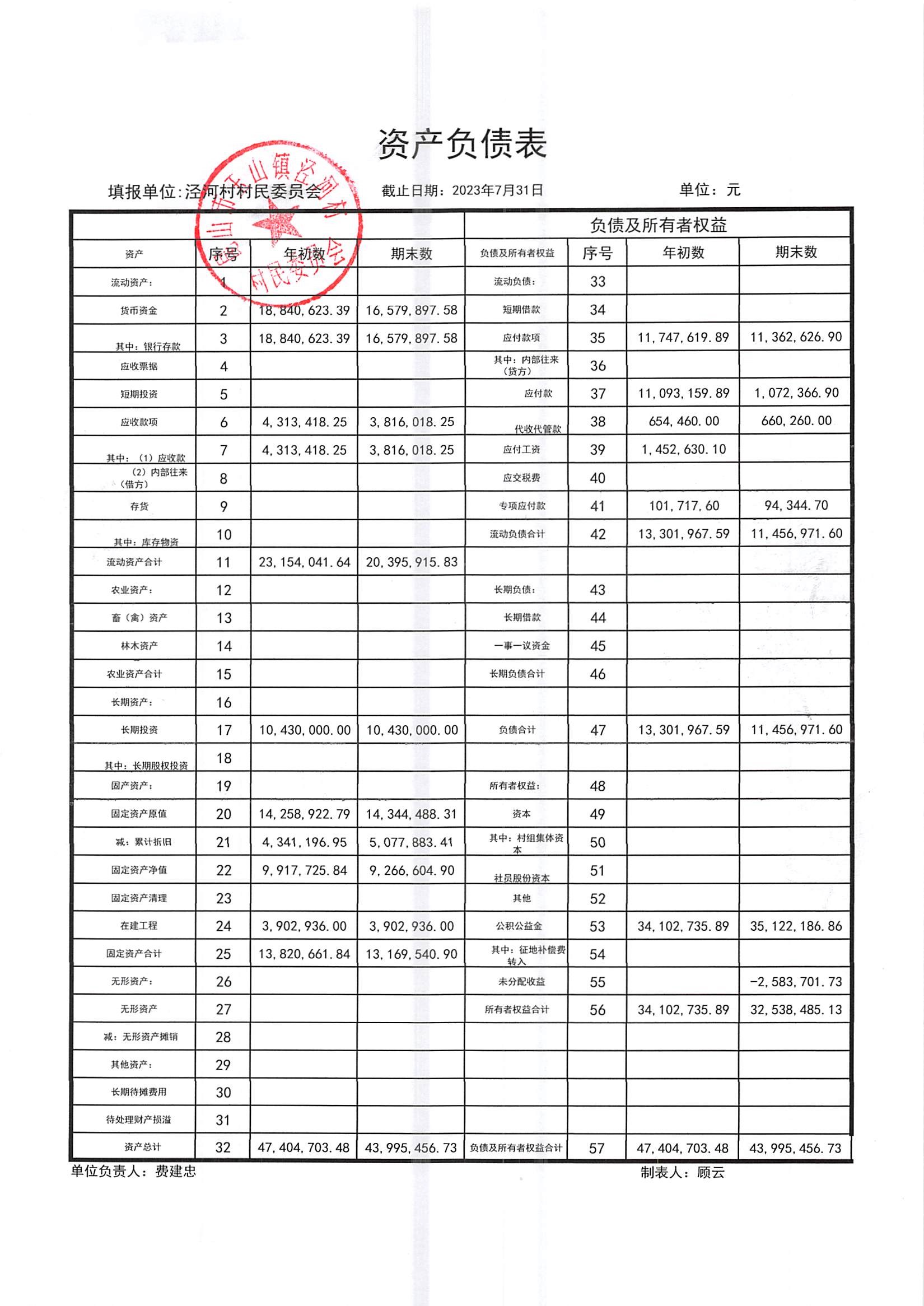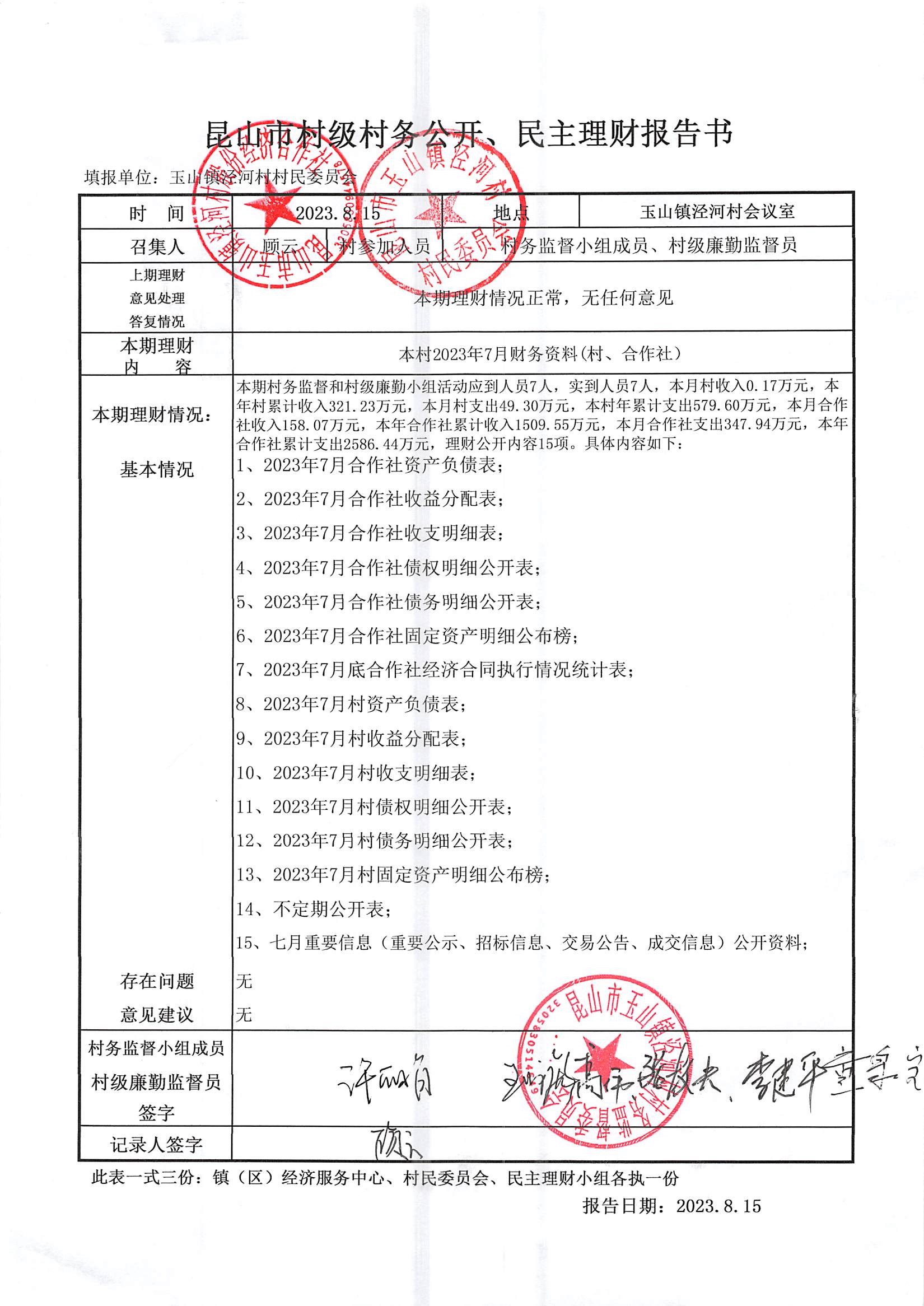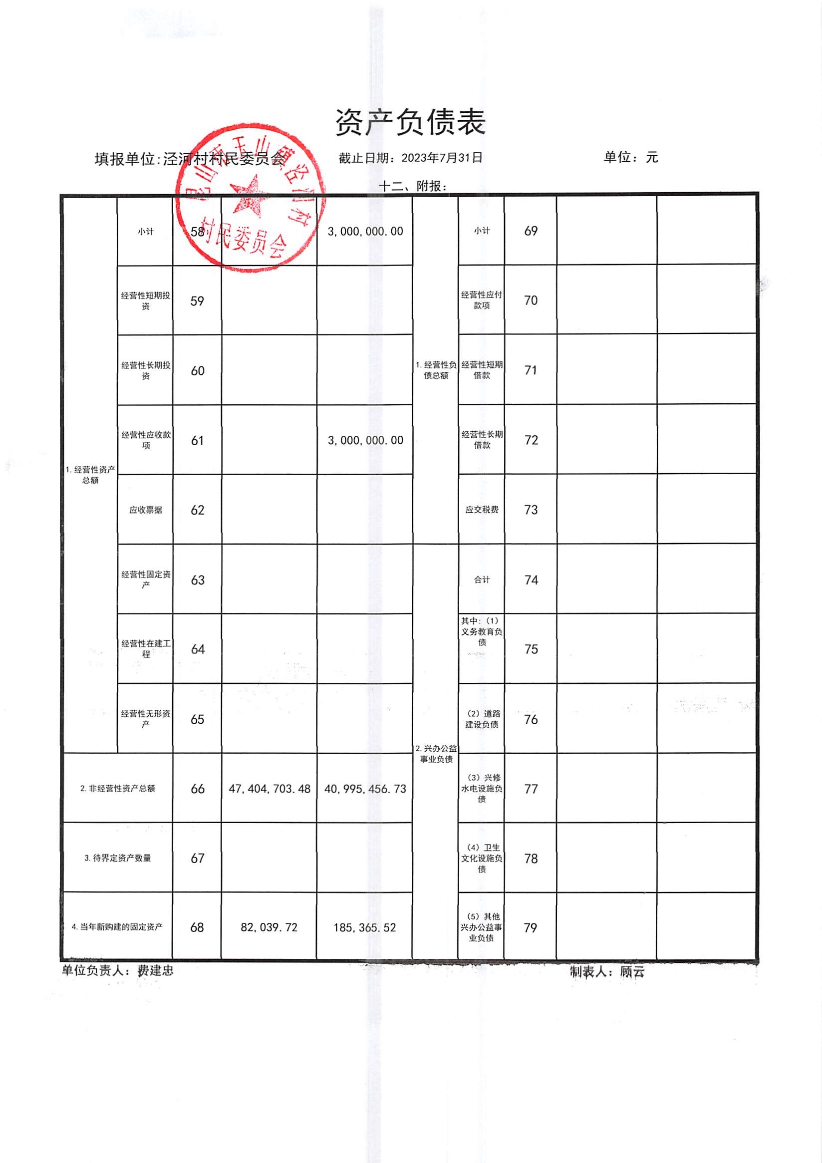 2023年七月份财务公开