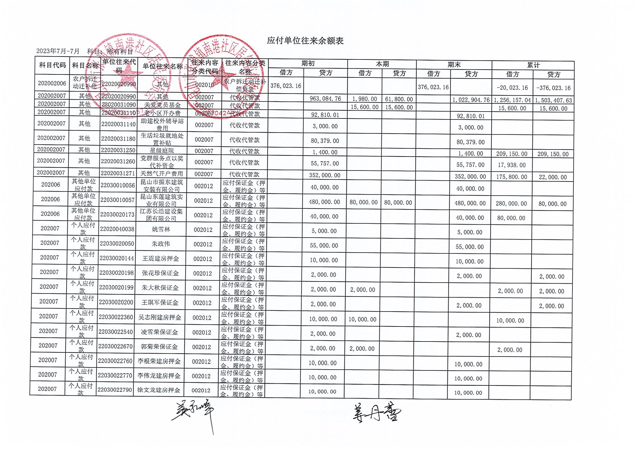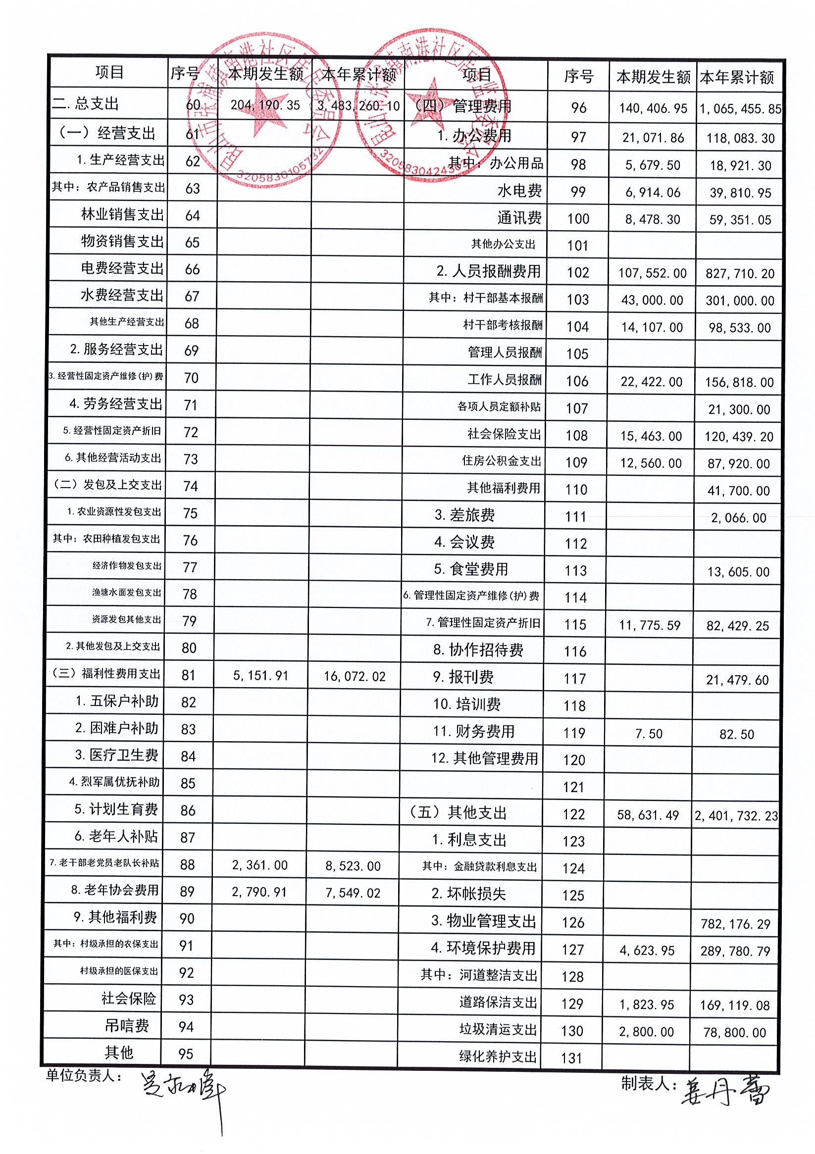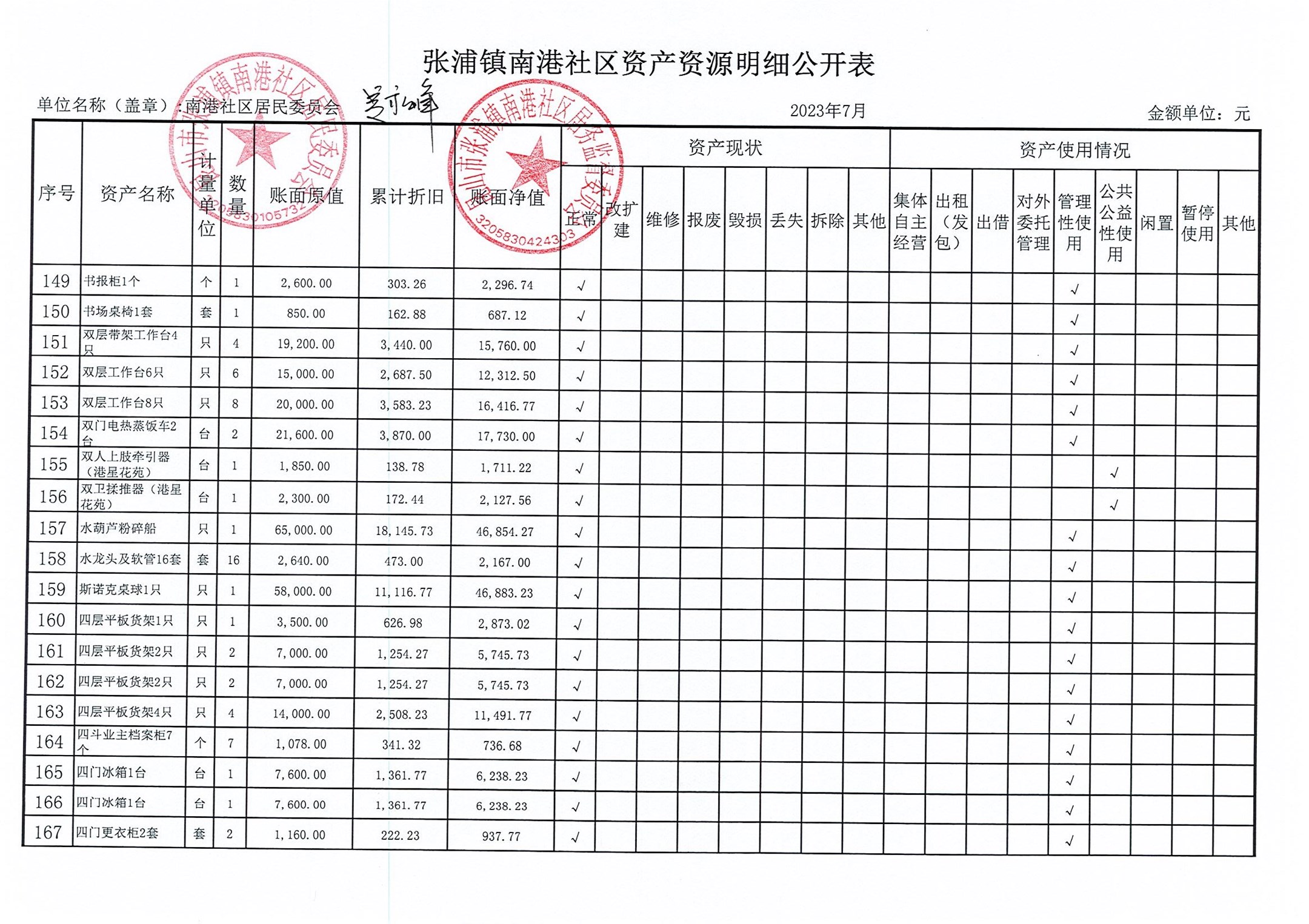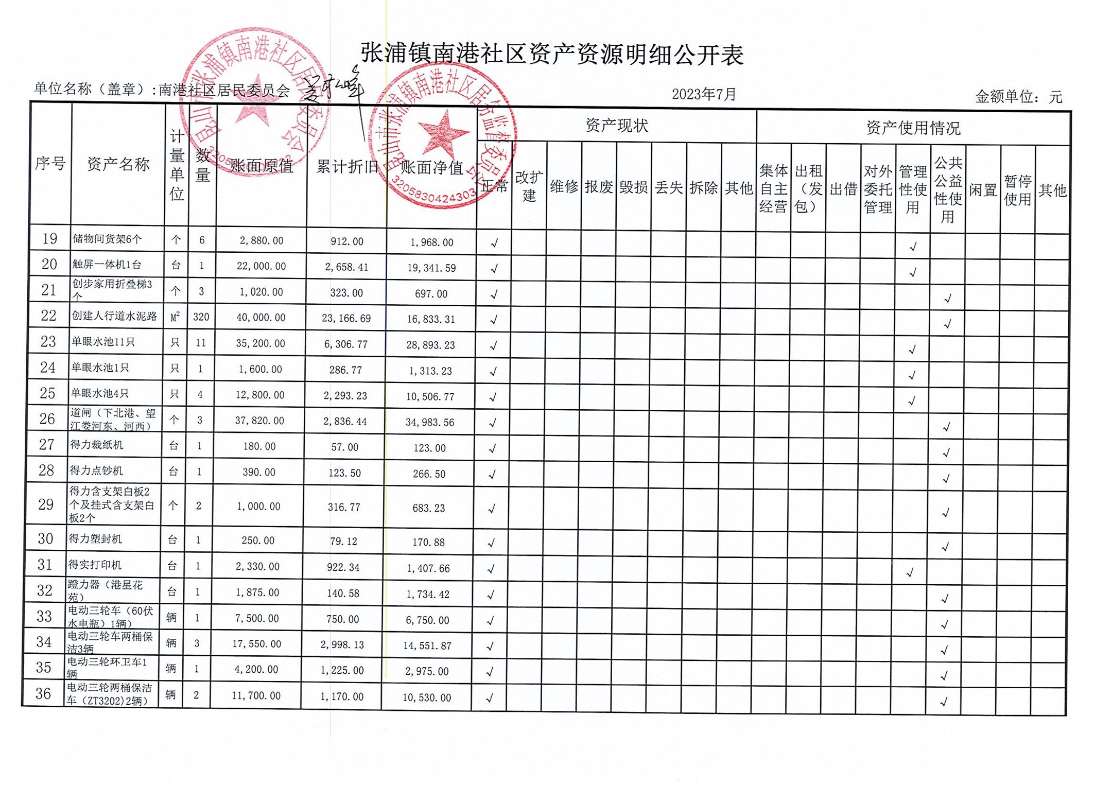 南港社区居委会2023年7月财务公开(定期公开)
