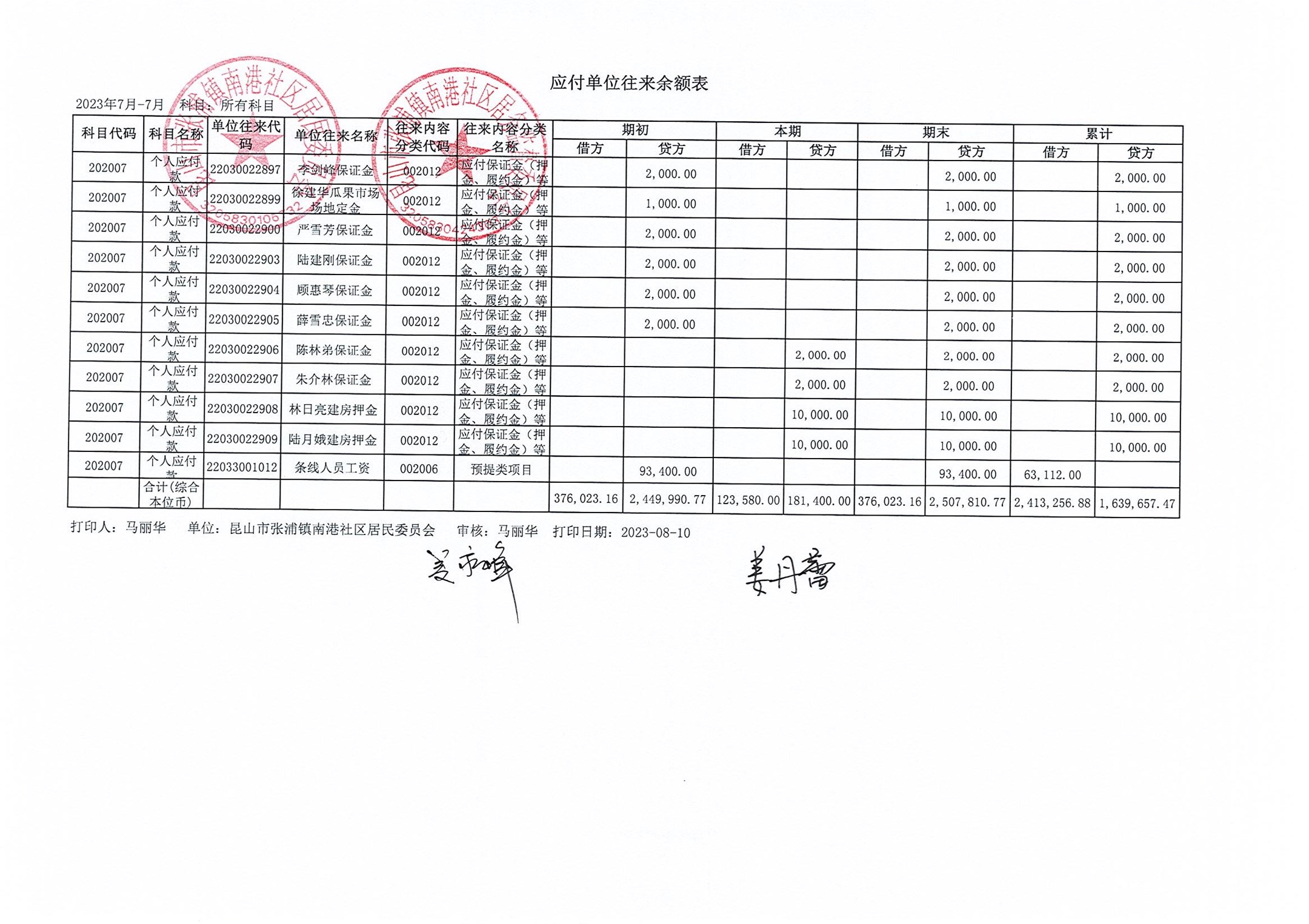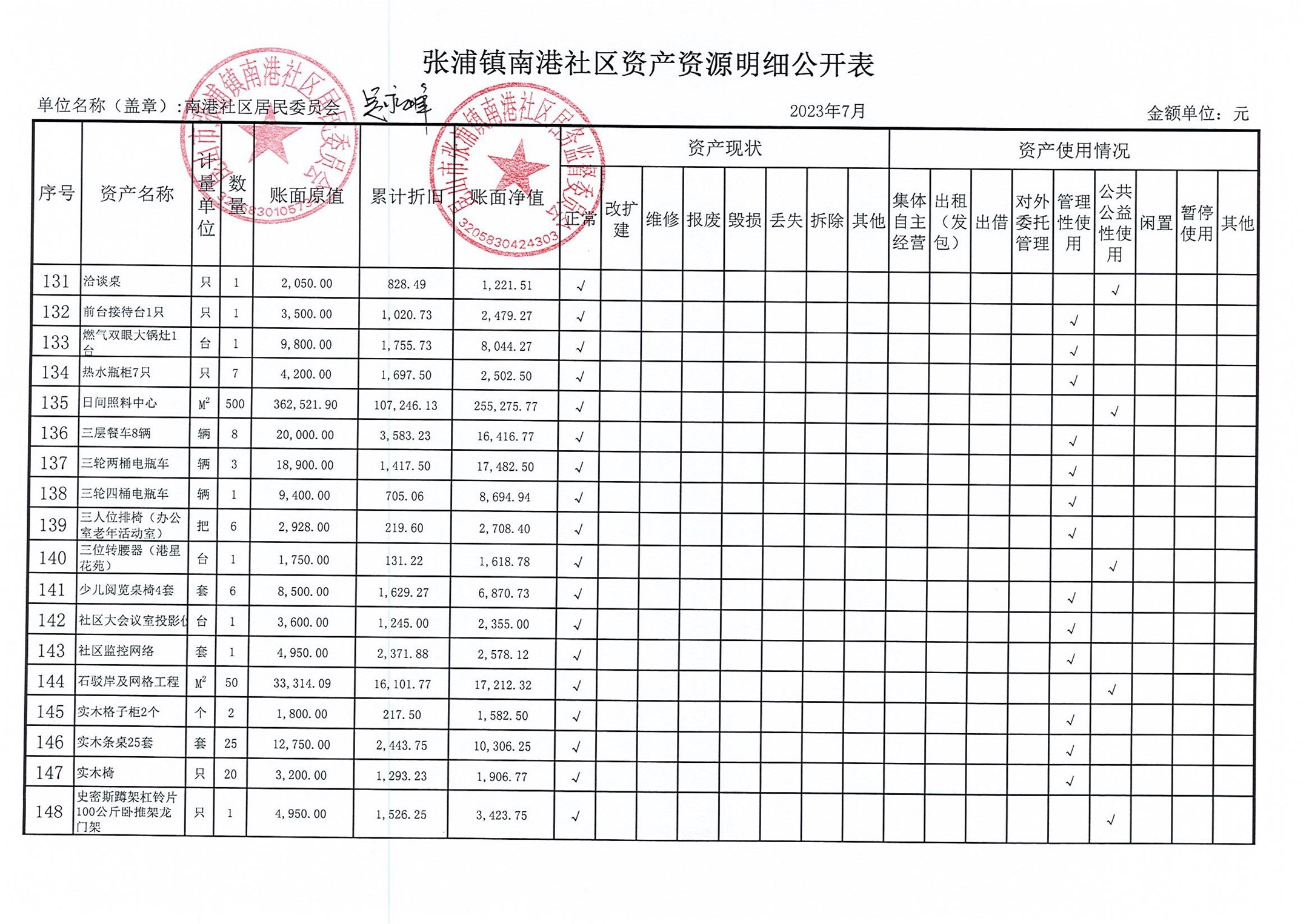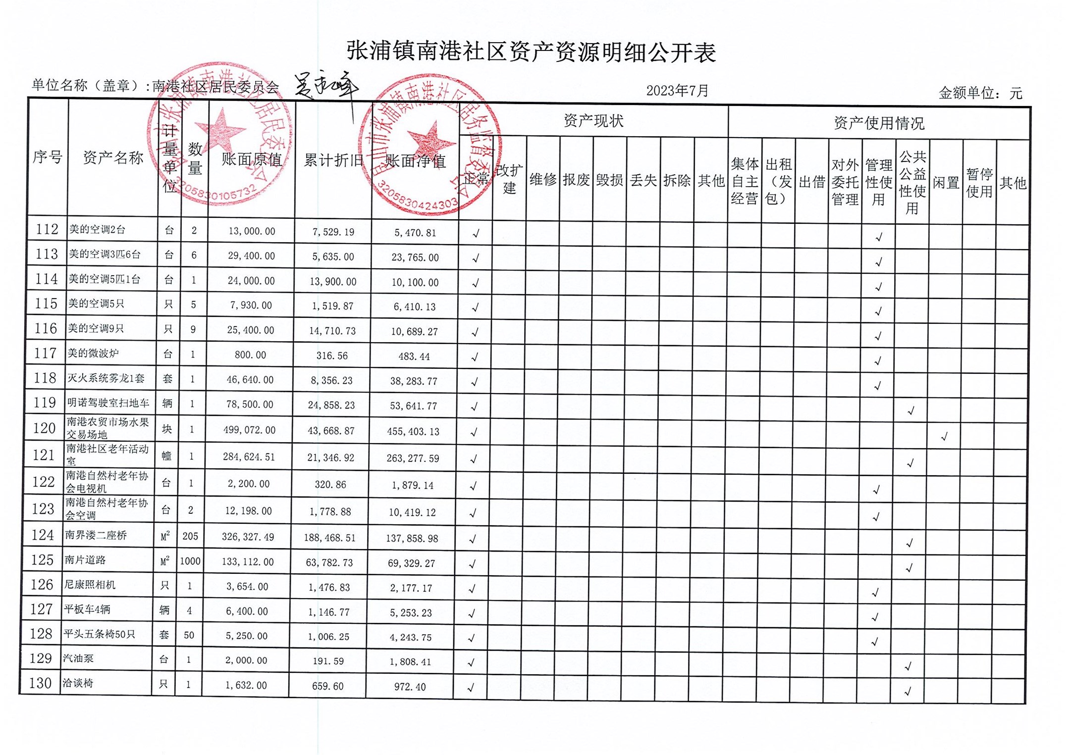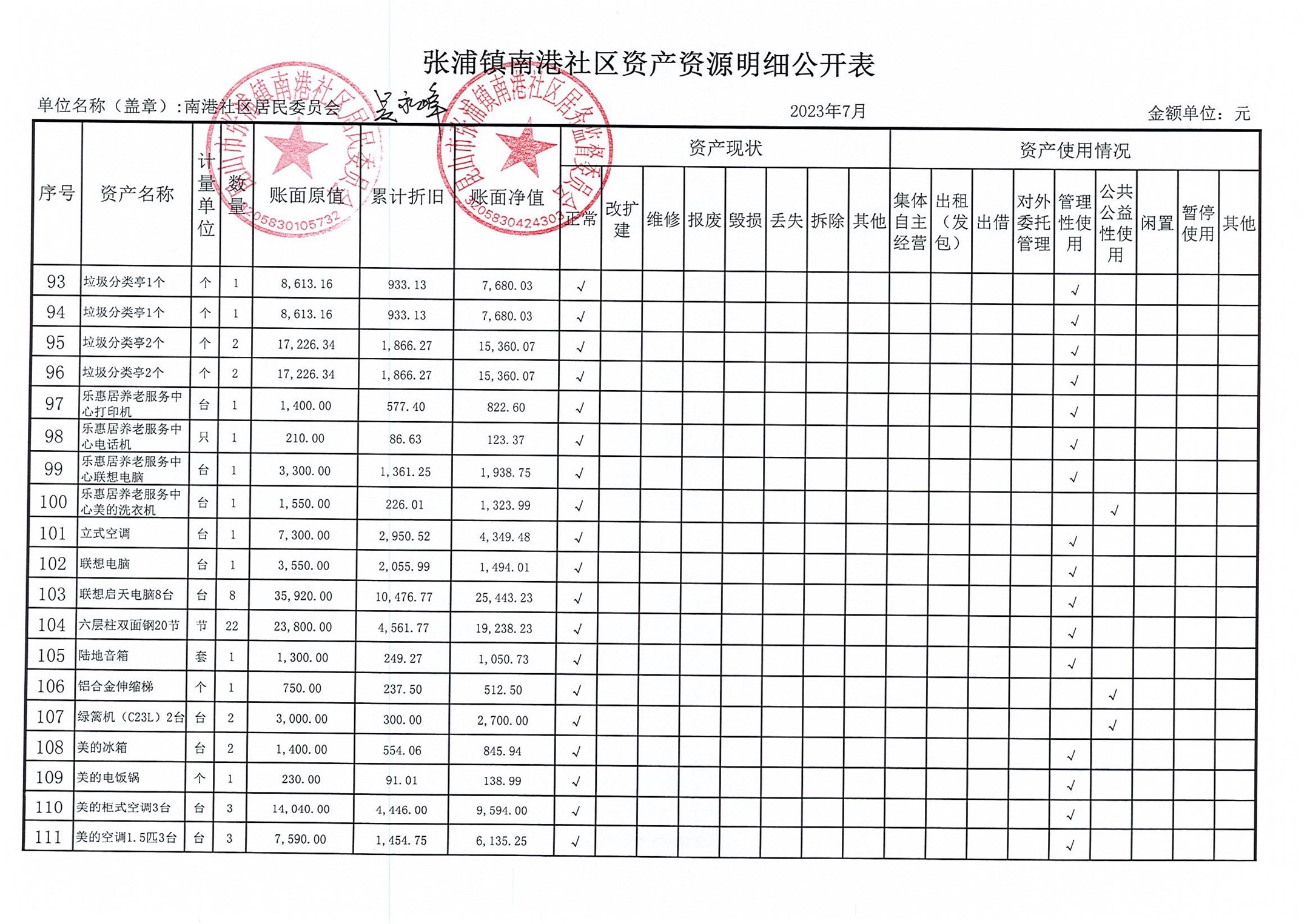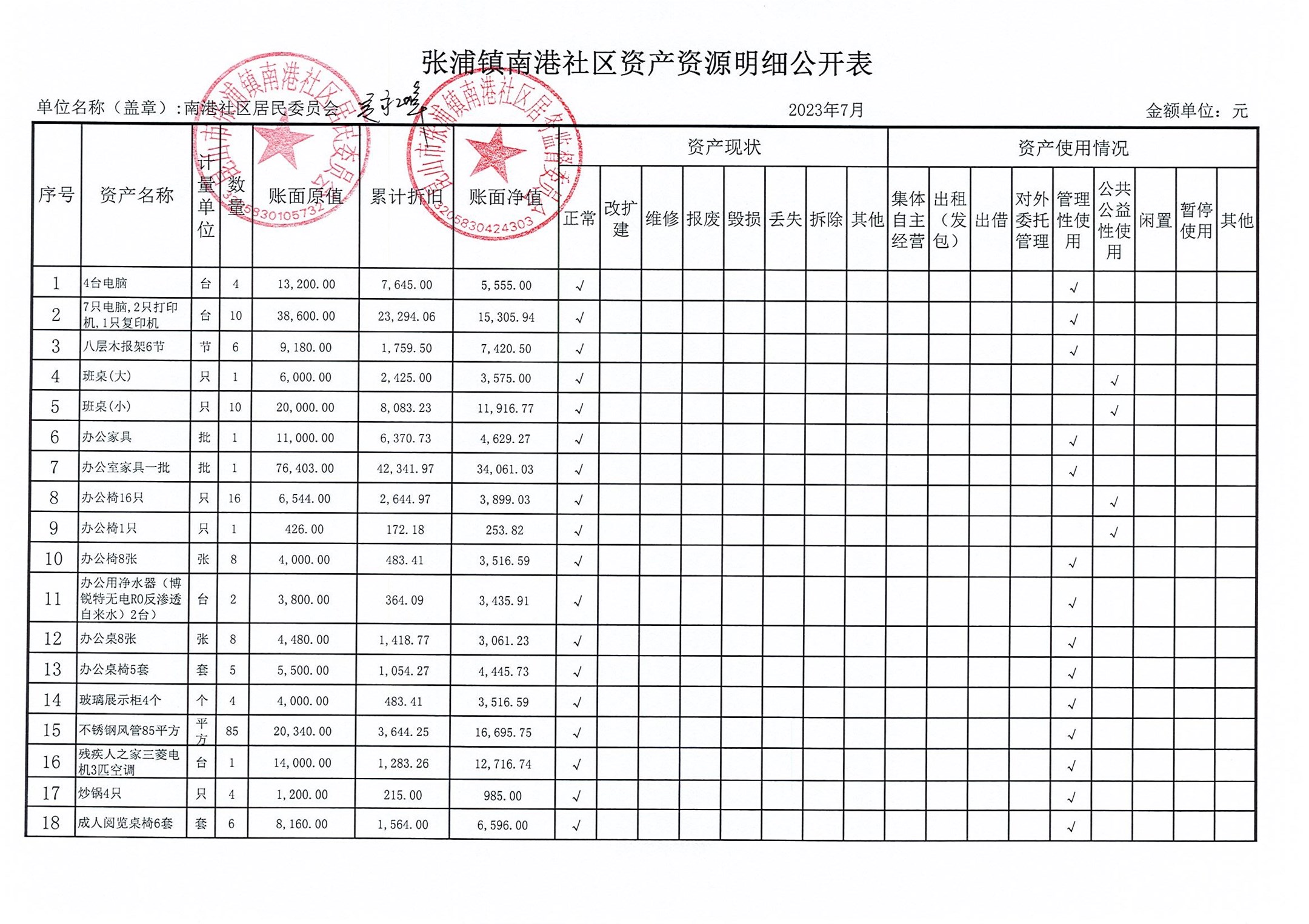南港社区居委会2023年7月财务公开(定期公开)