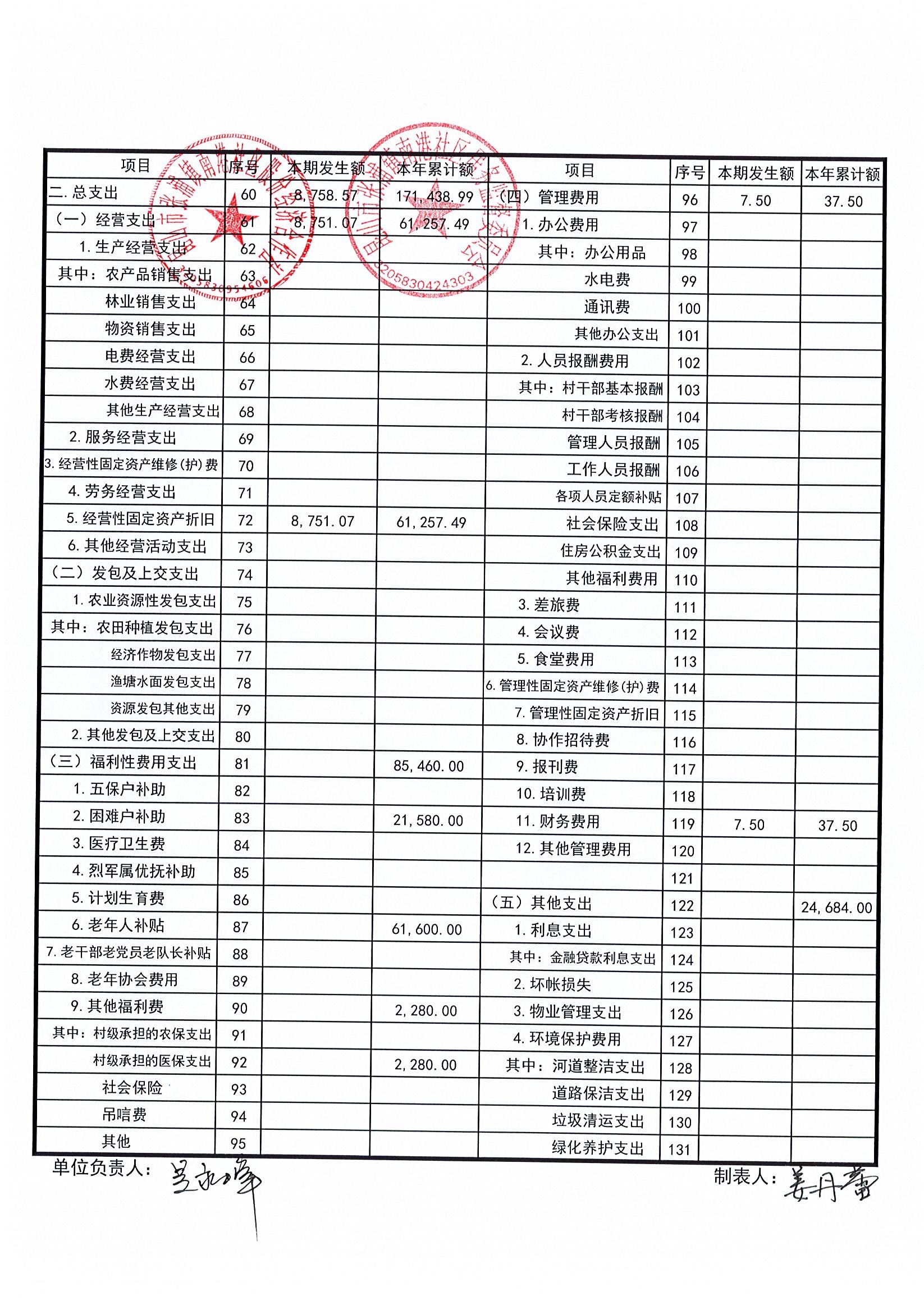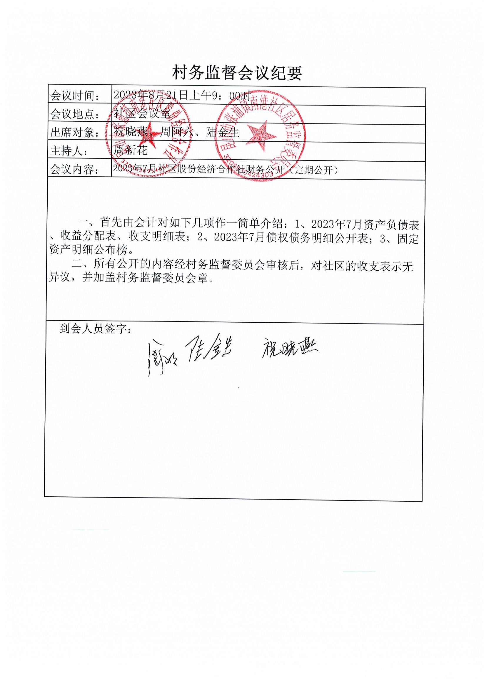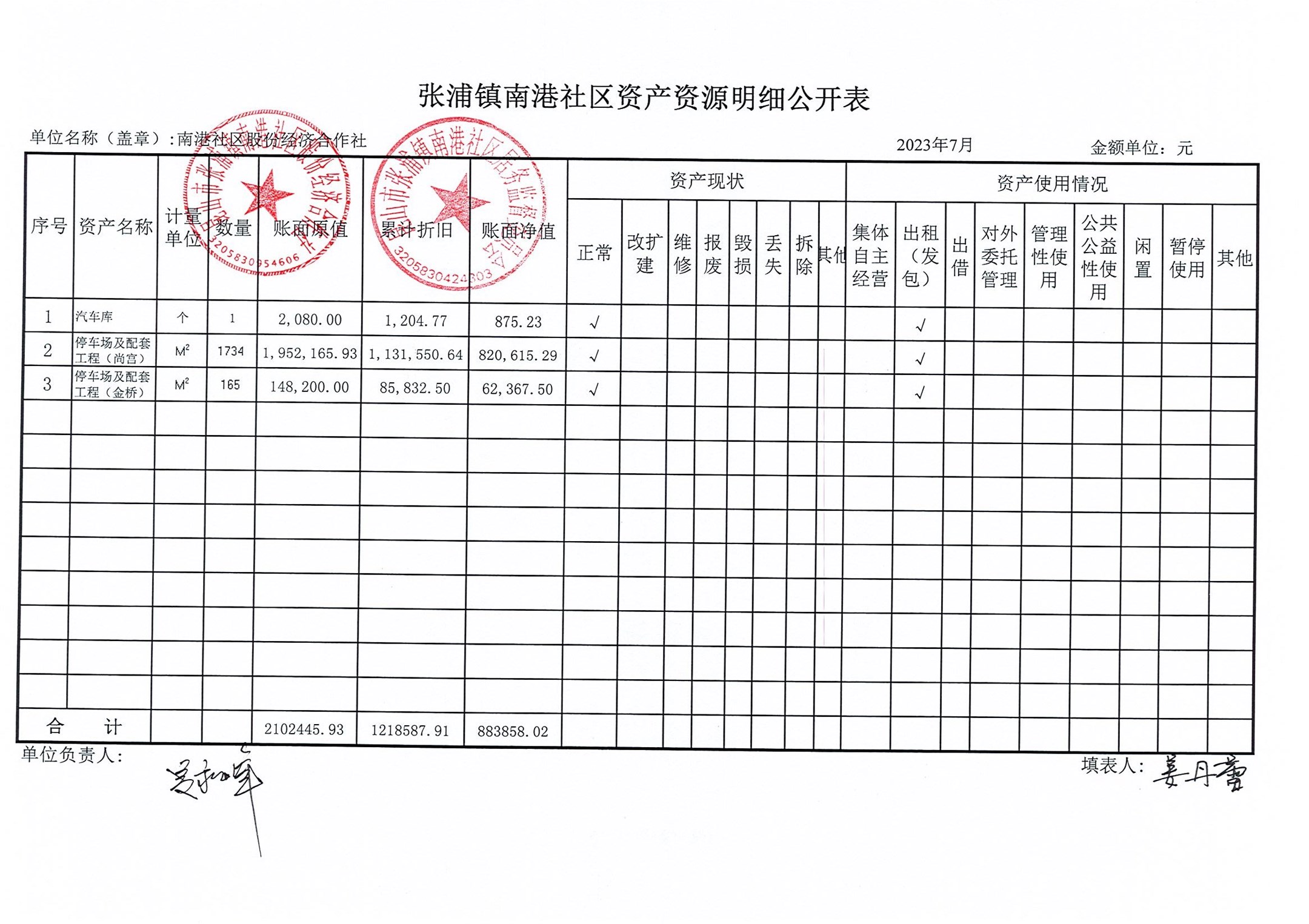 南港社区股份经济合作社2023年7月财务公开(定期公开)