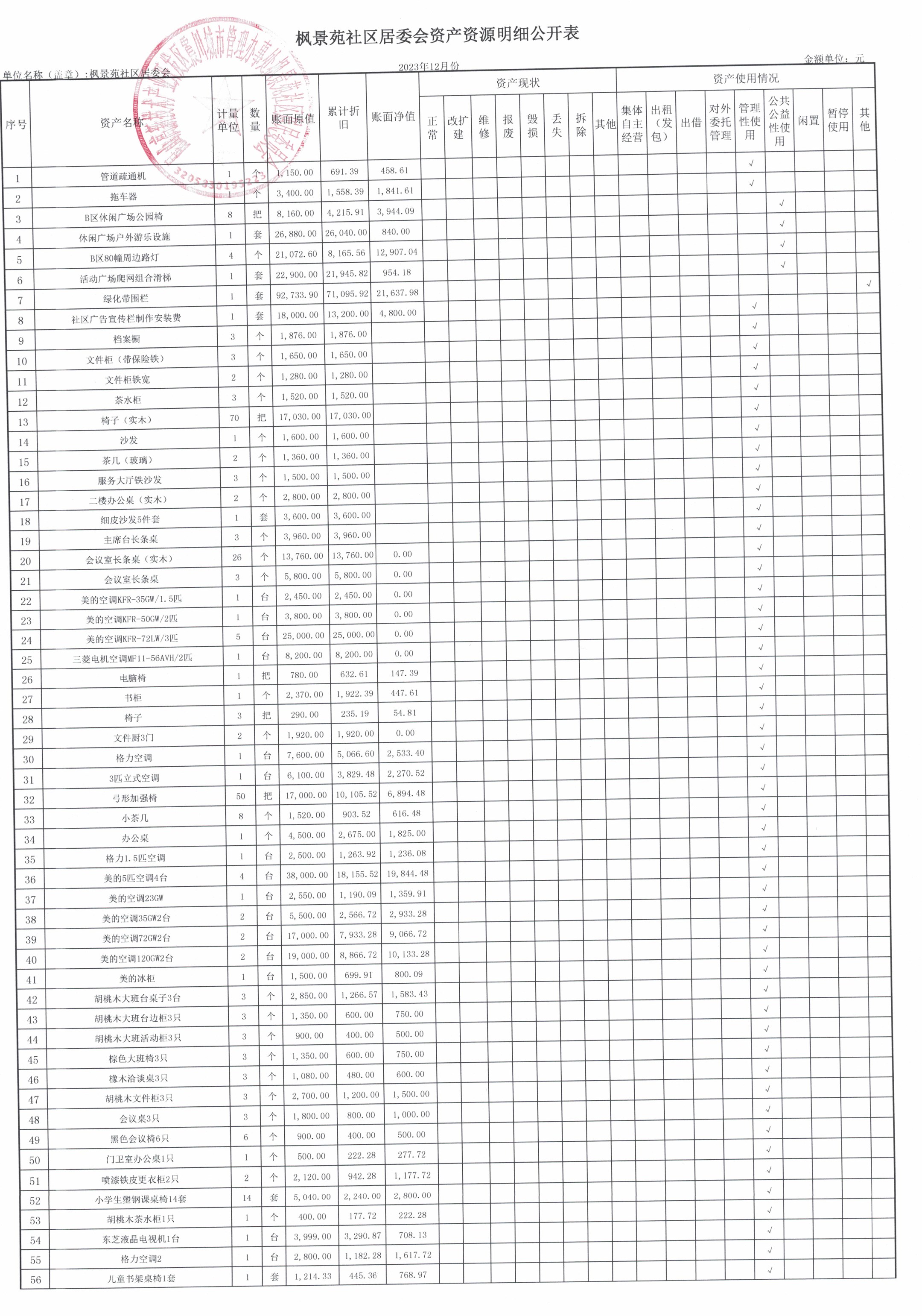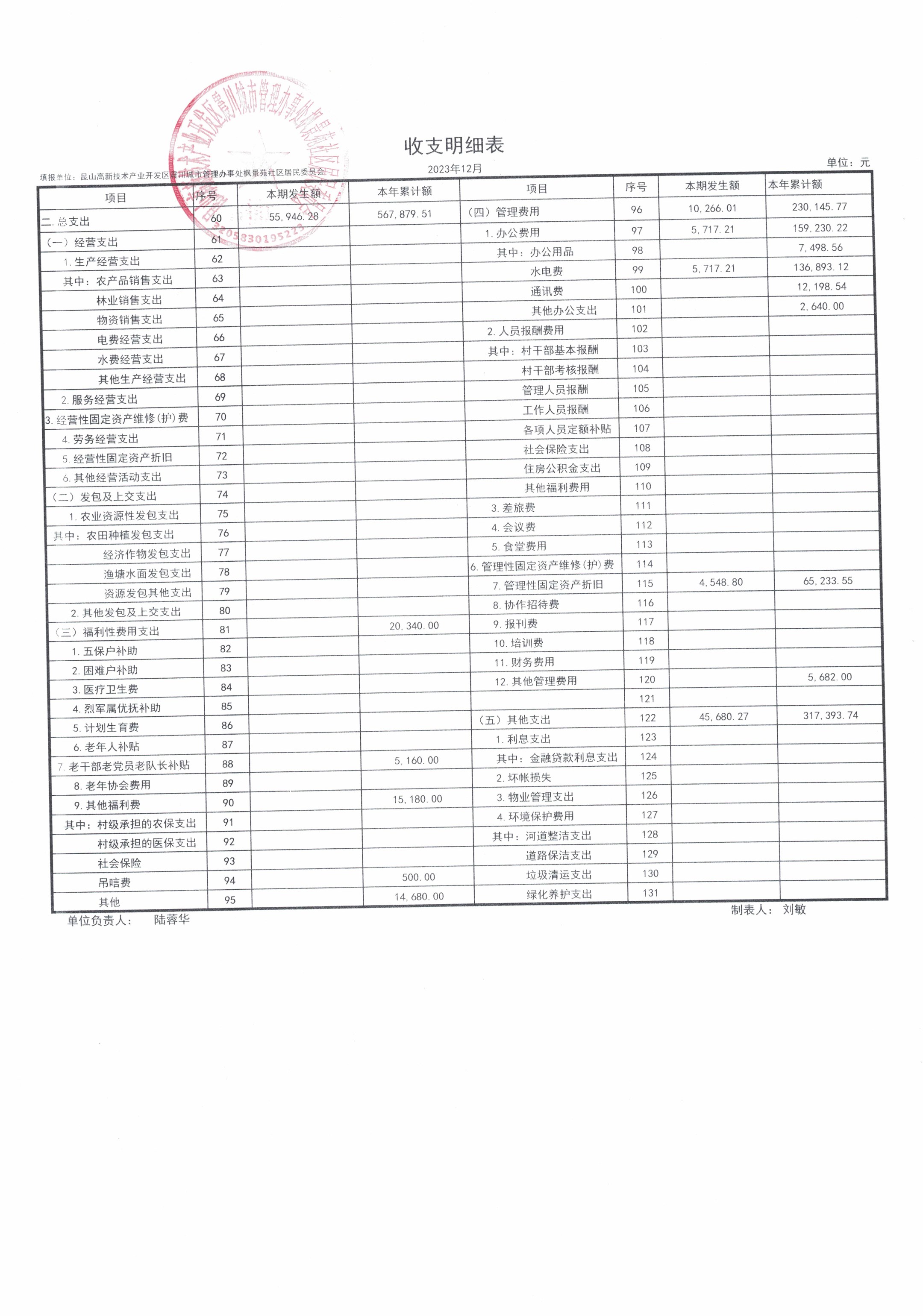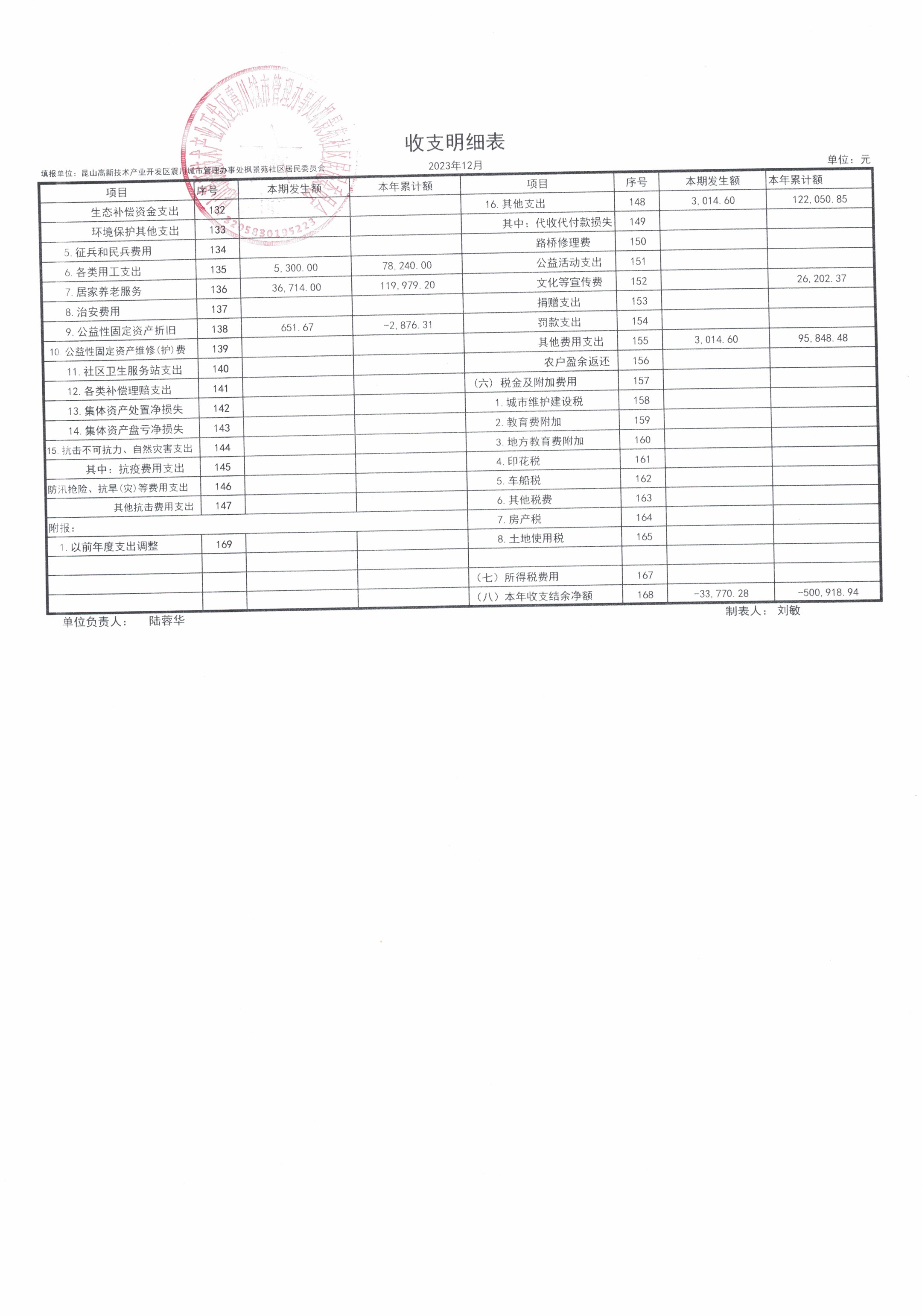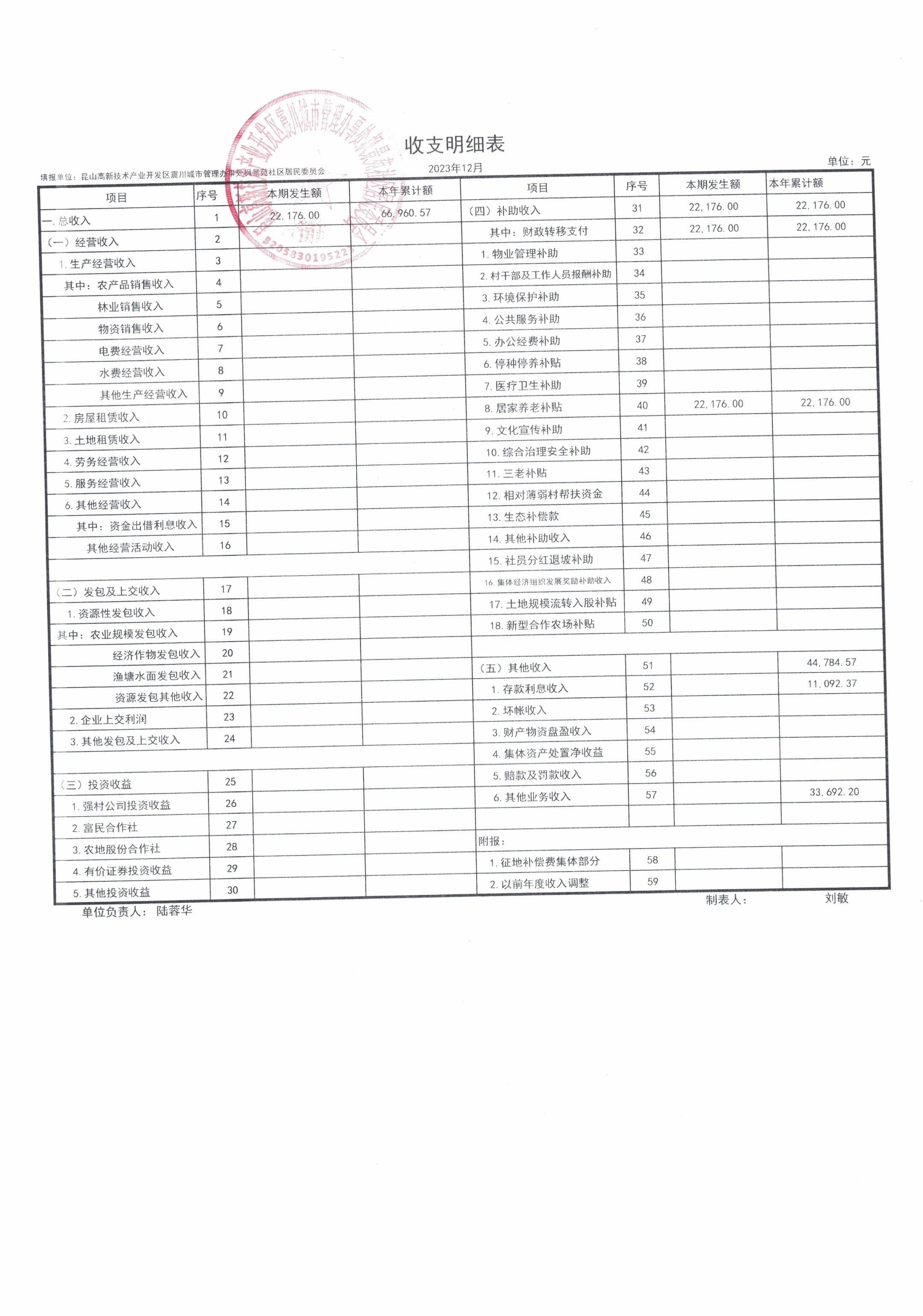 2023年第四季度财务公开(居委会)