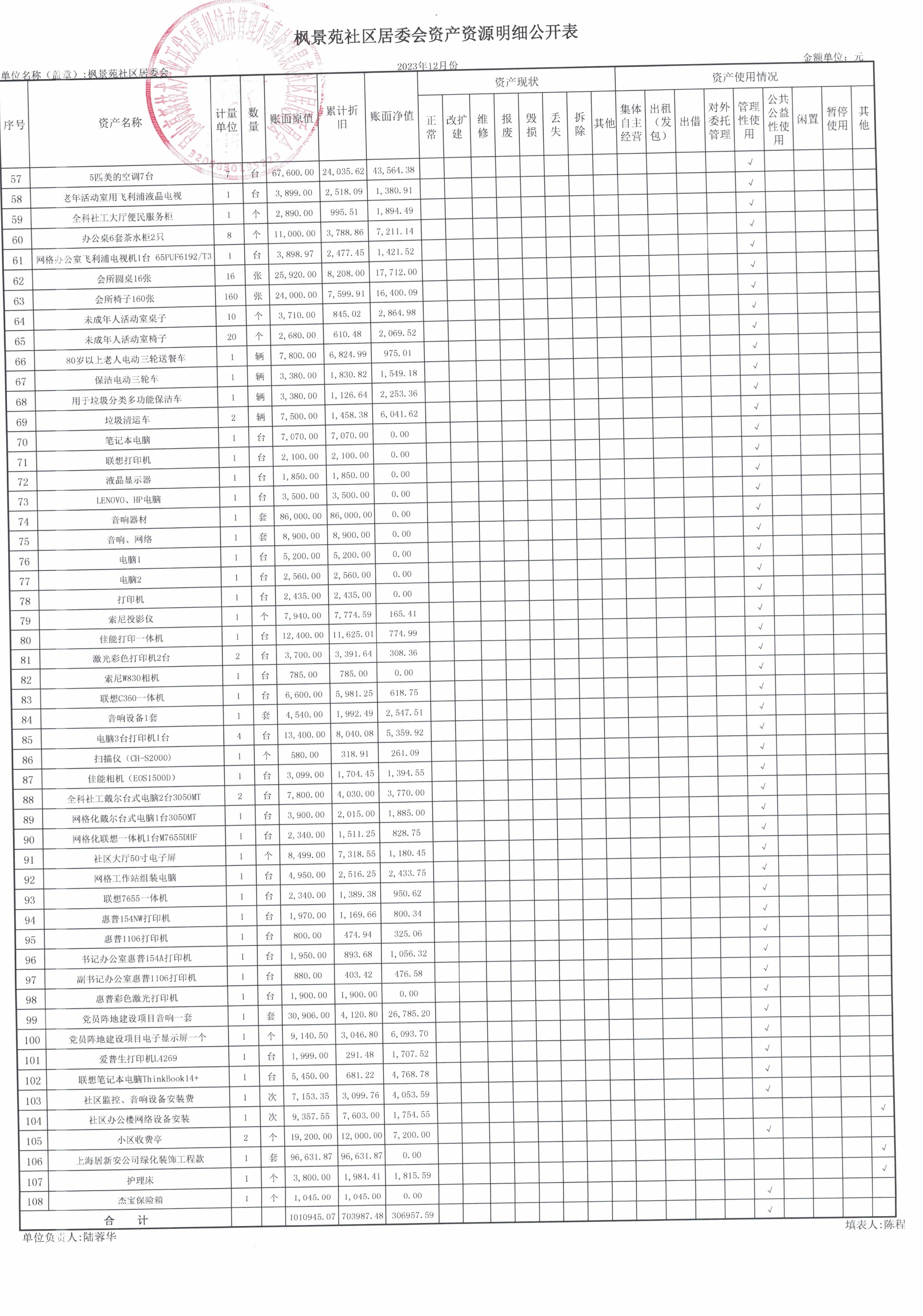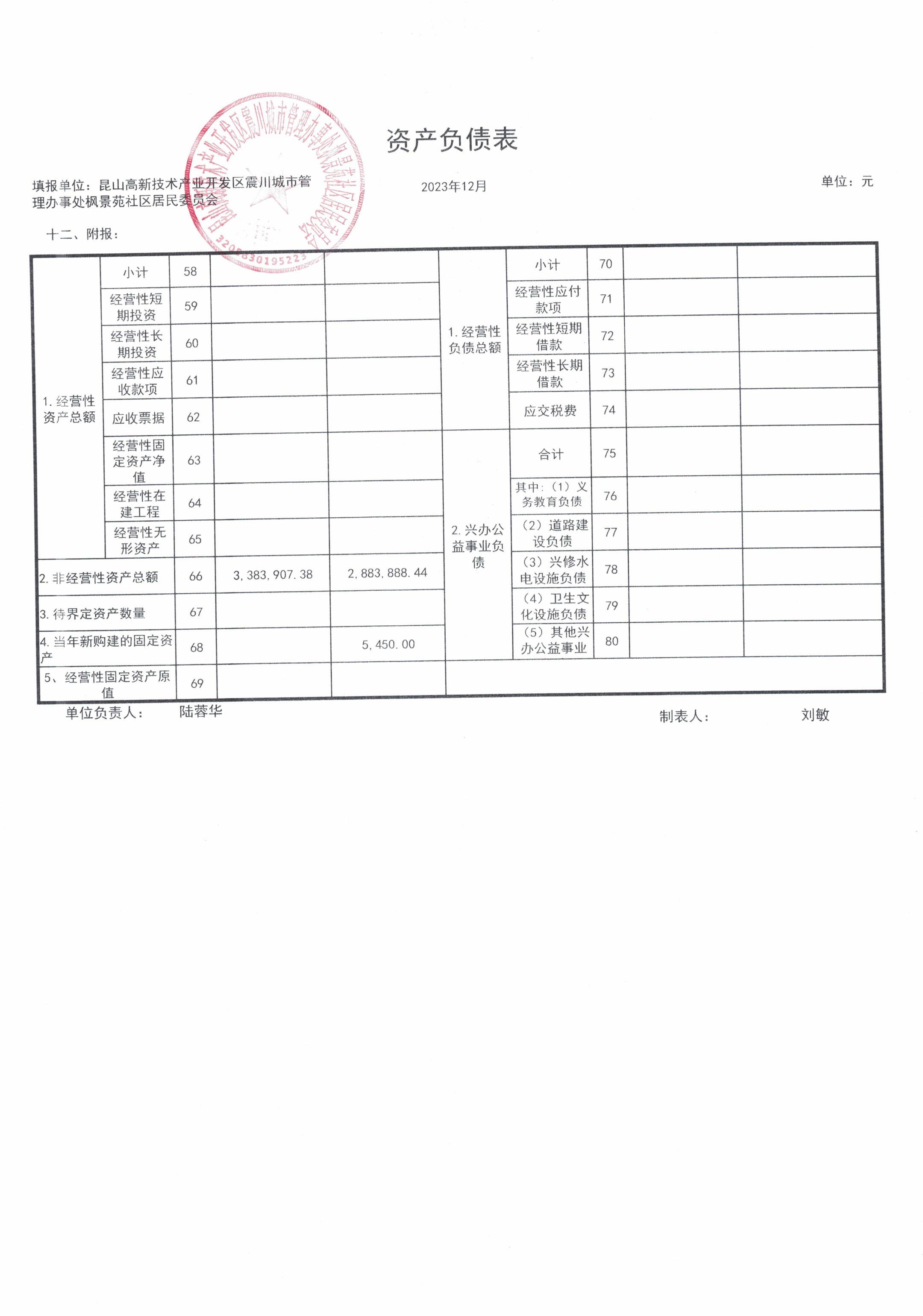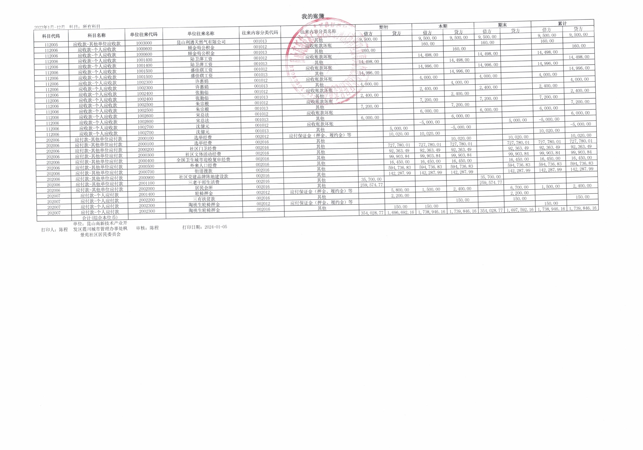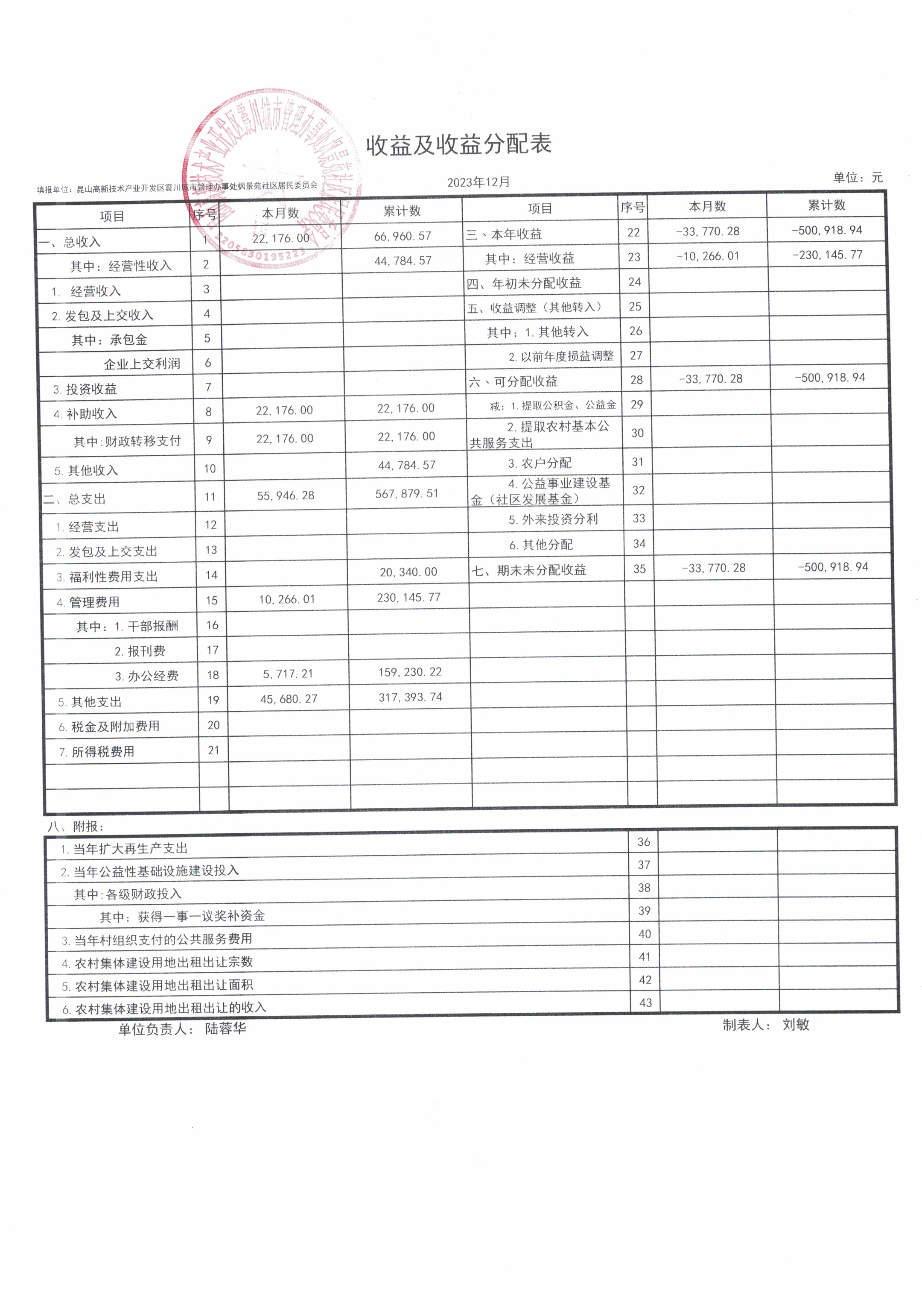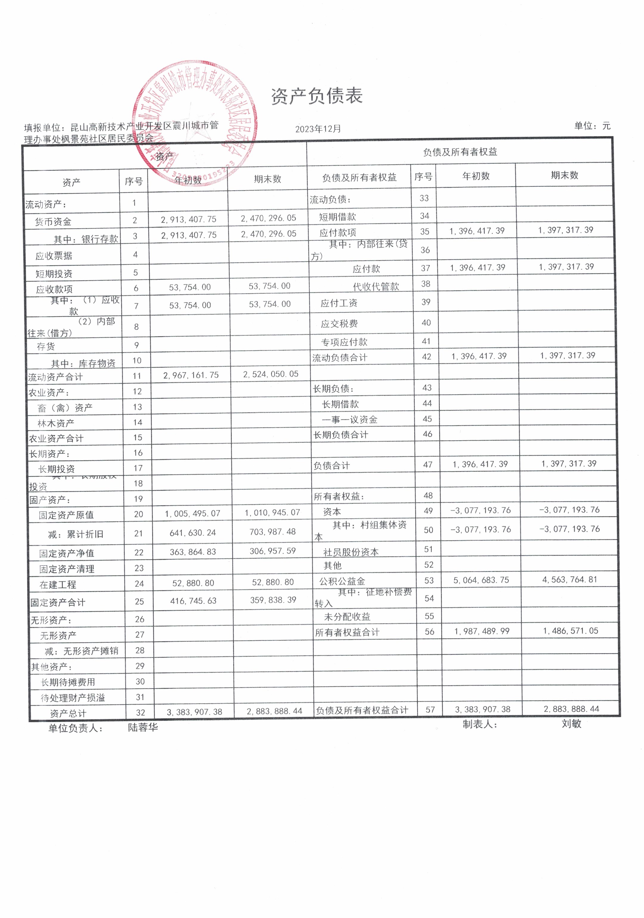 2023年第四季度财务公开(居委会)