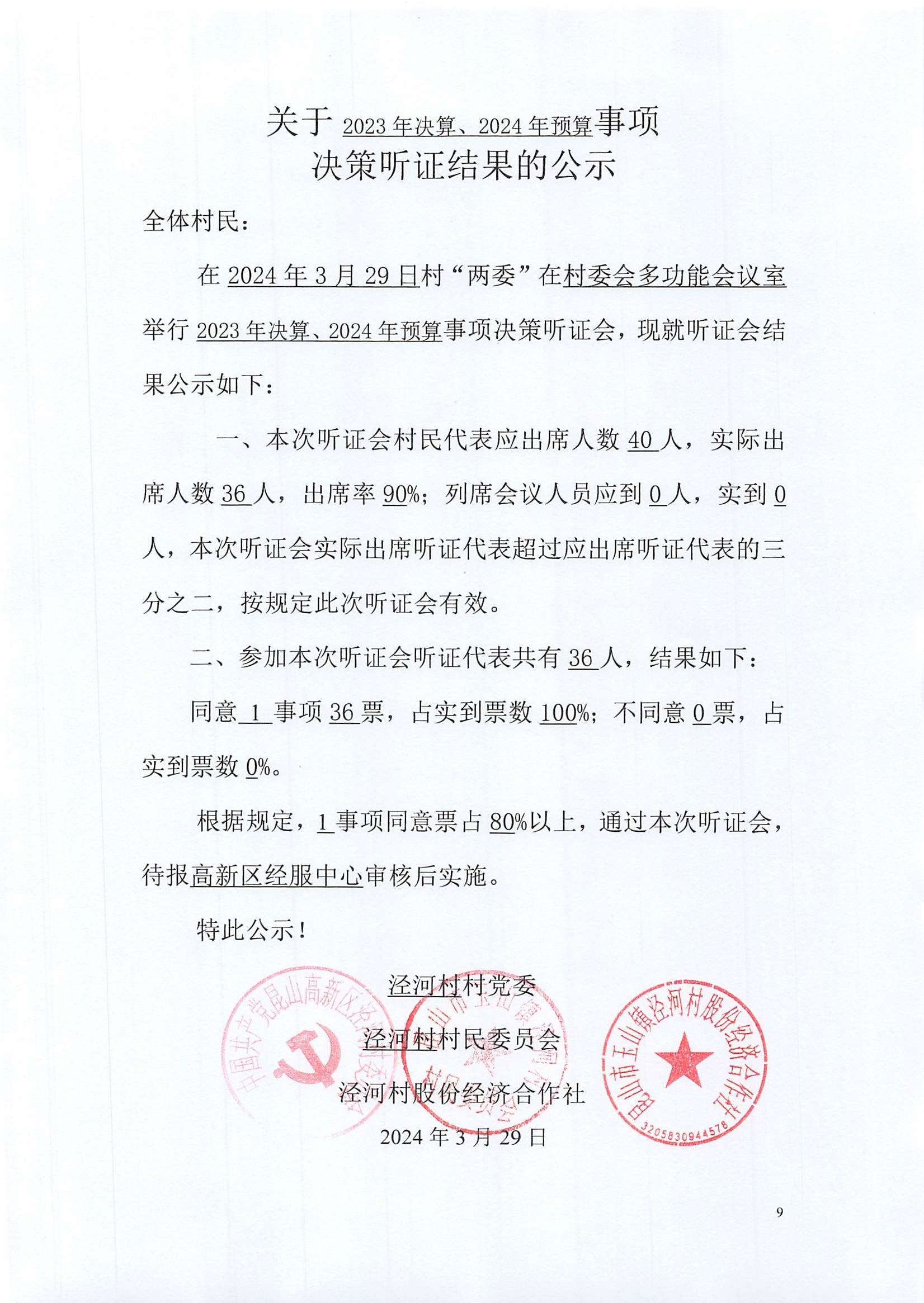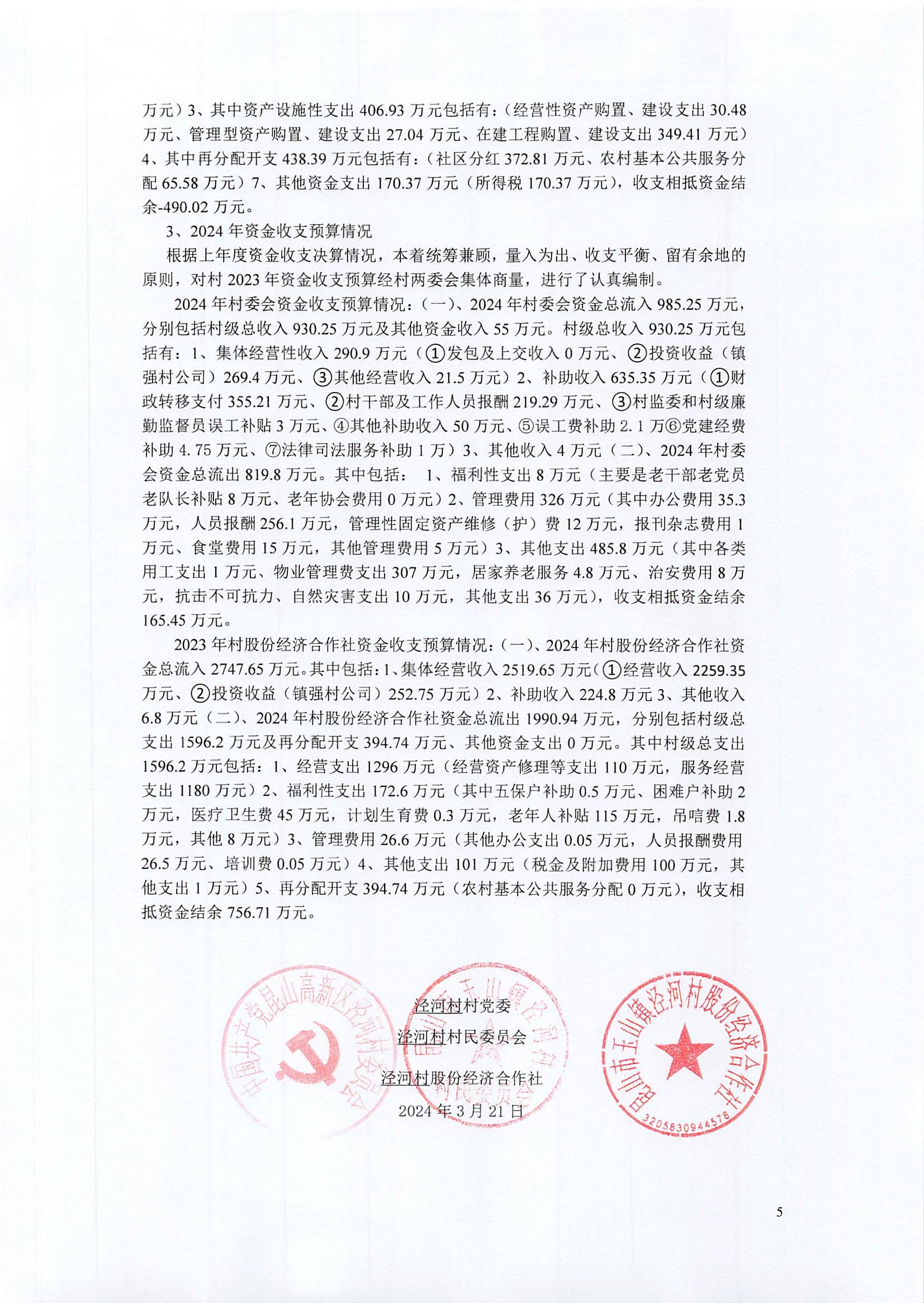 2024年预算、2023年决算公示