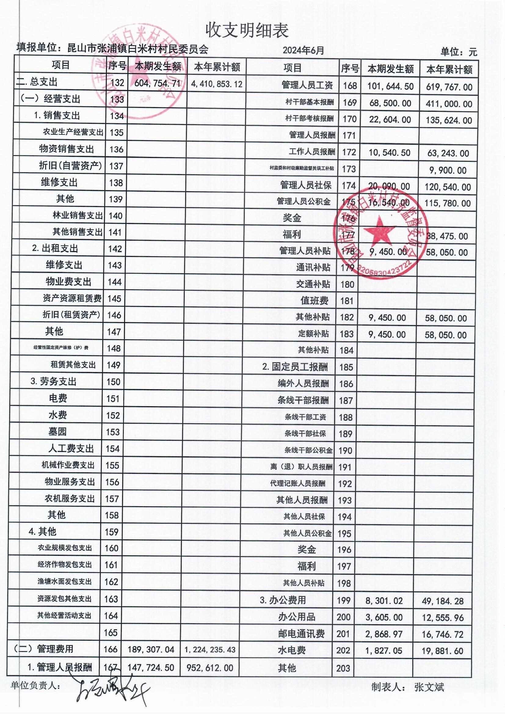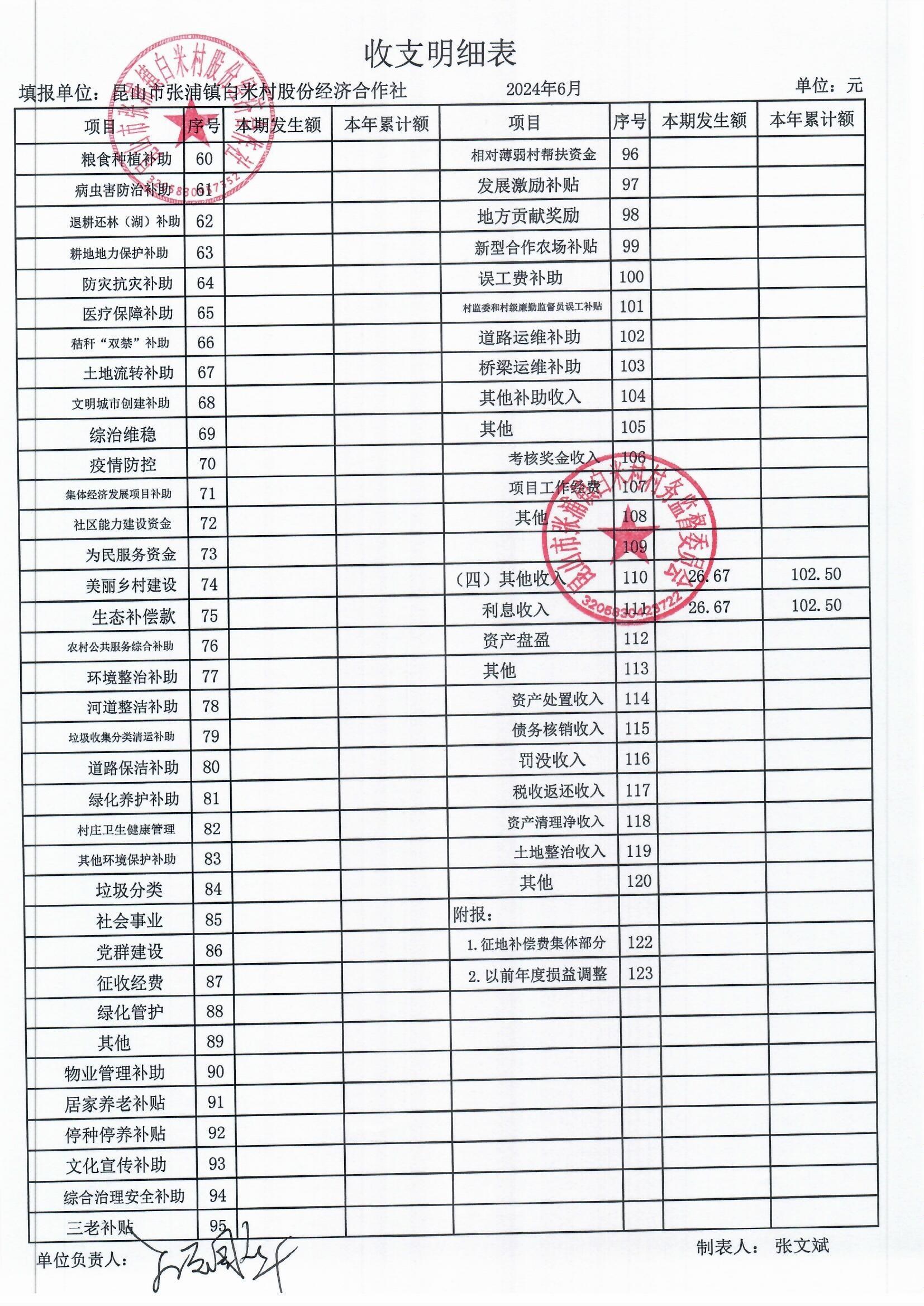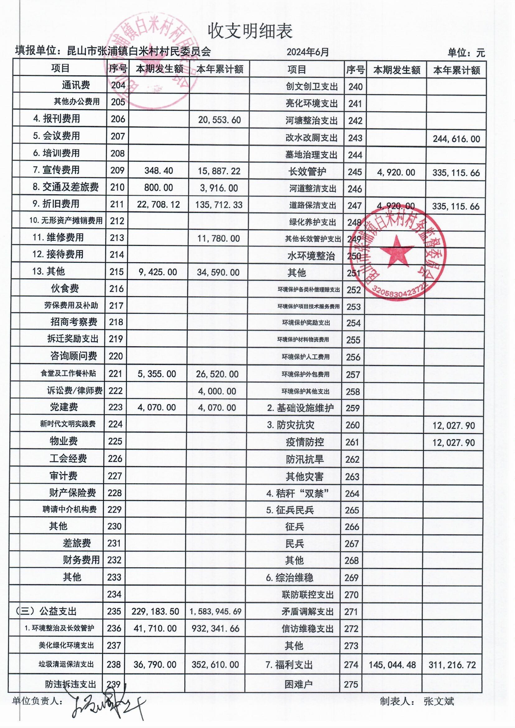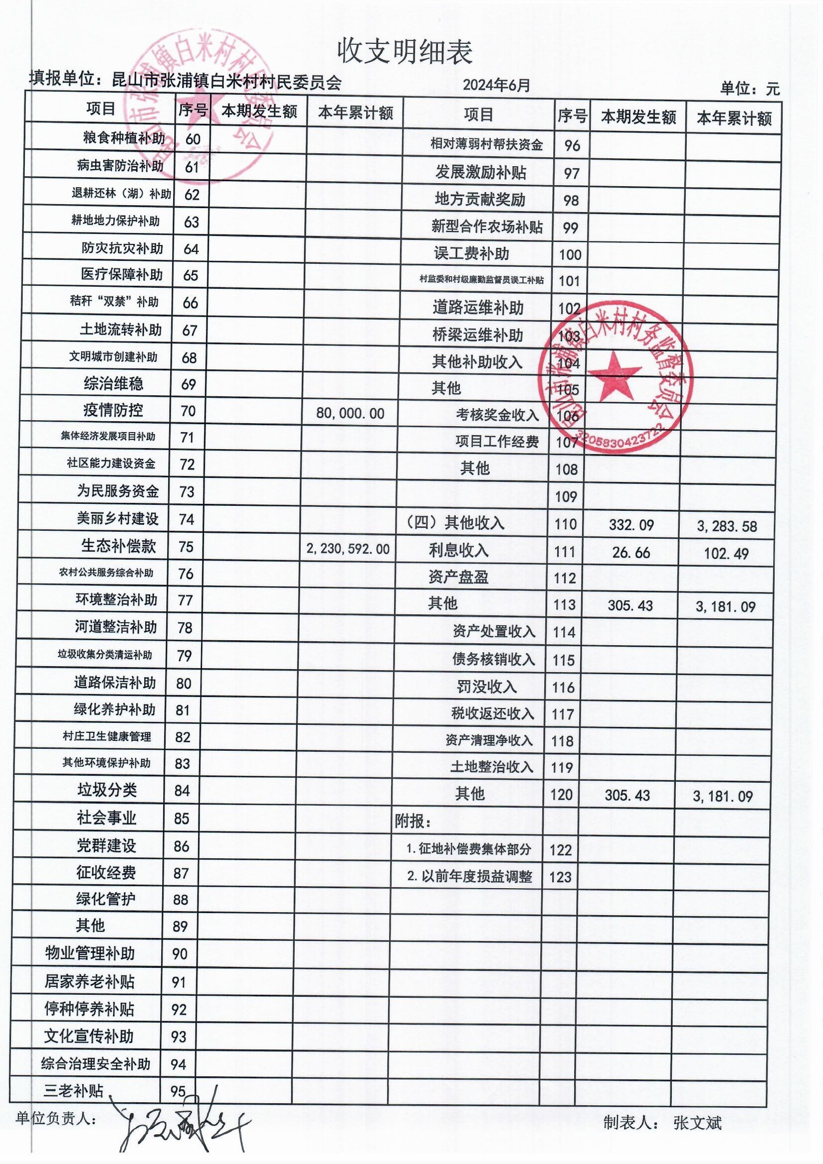 2024年6月白米村村民委员会和股份经济合作社财务公开和不定期公开