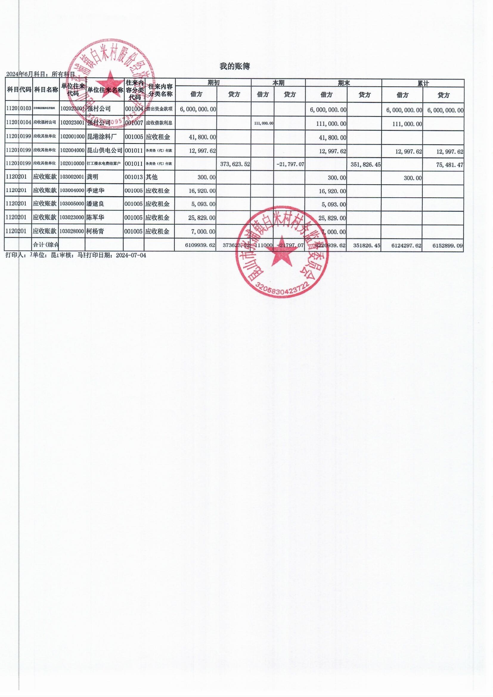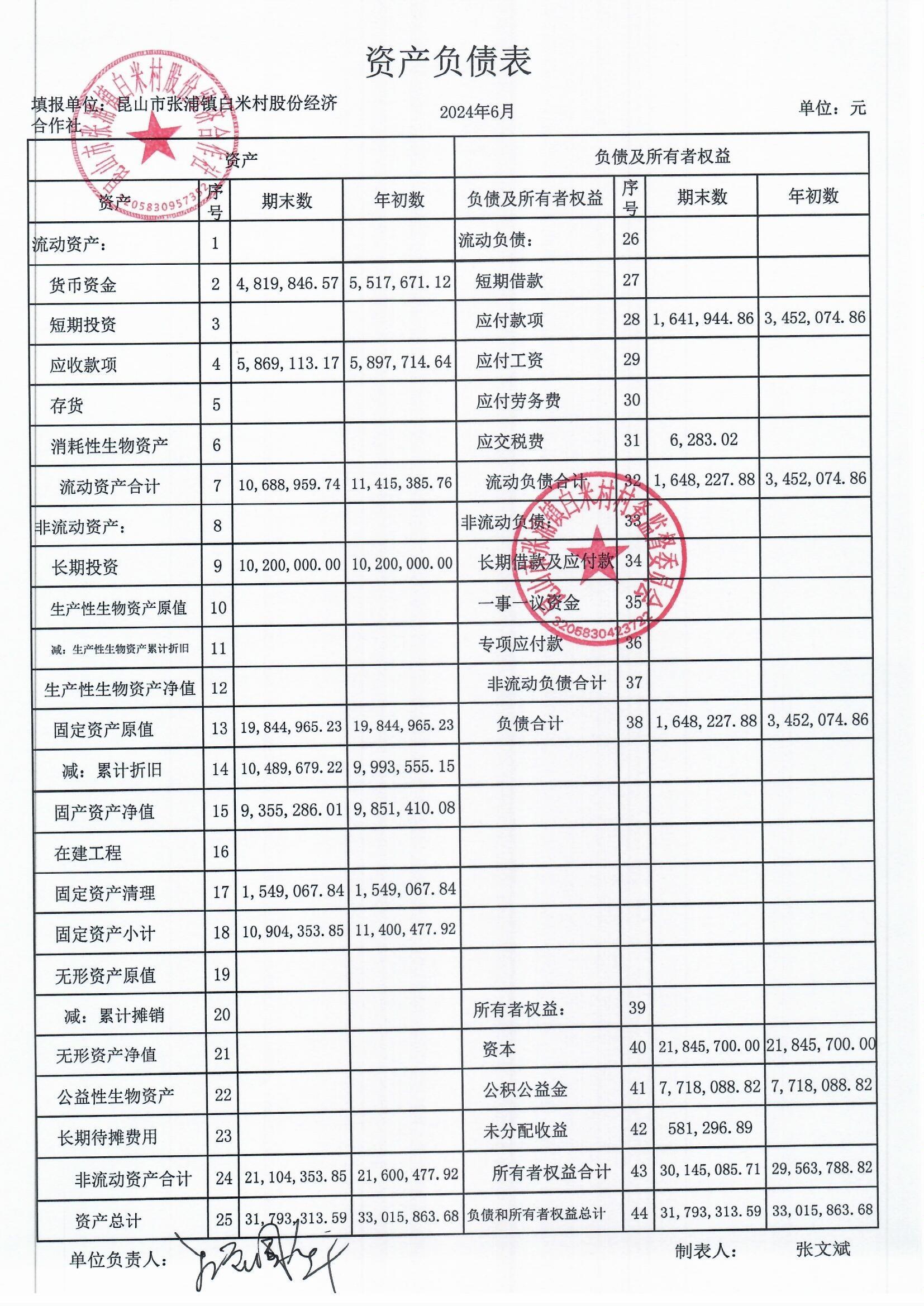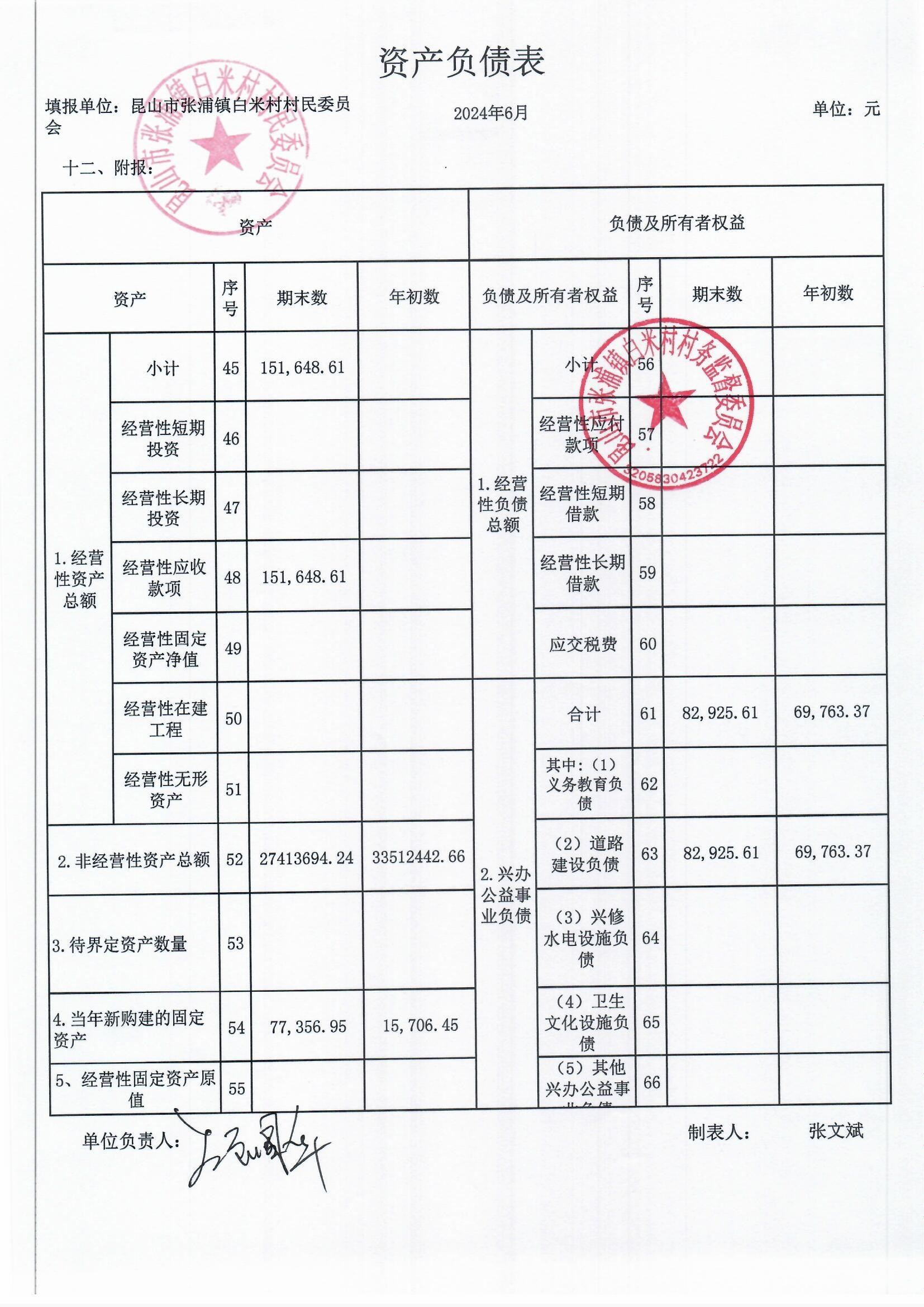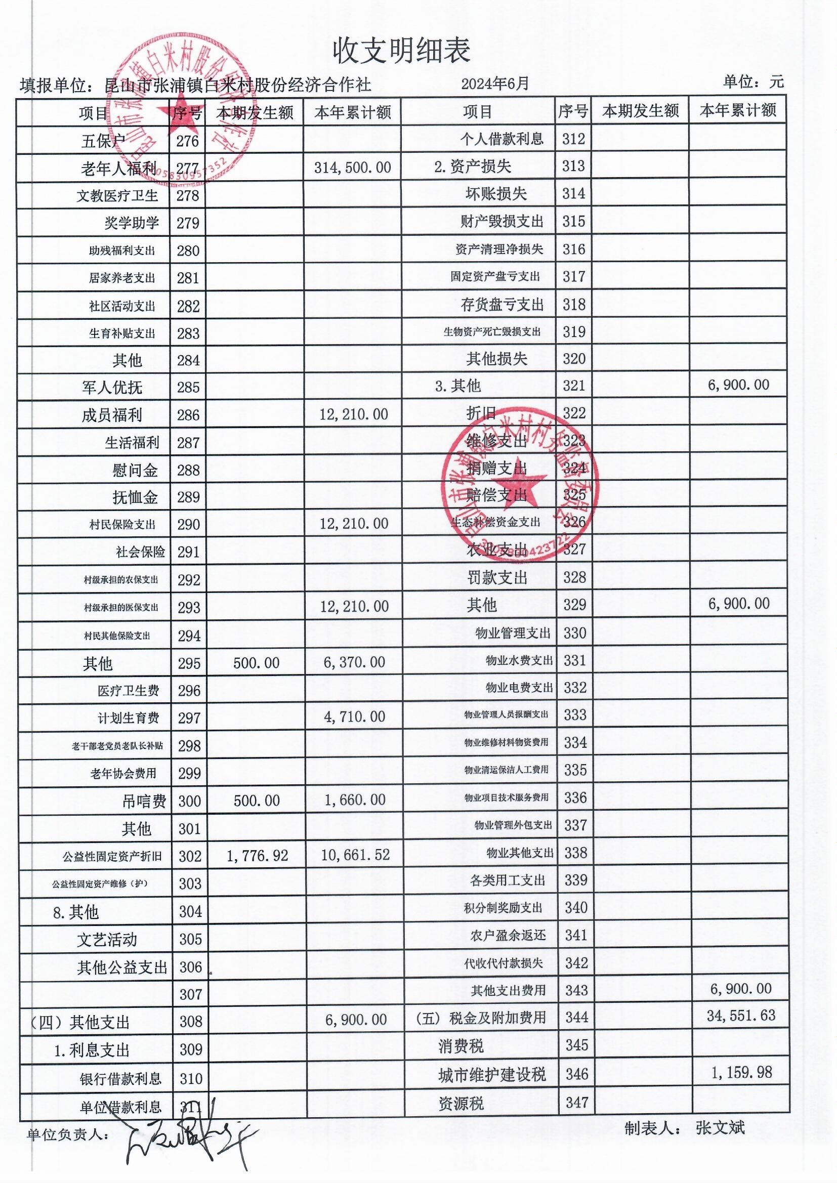 2024年6月白米村村民委员会和股份经济合作社财务公开和不定期公开