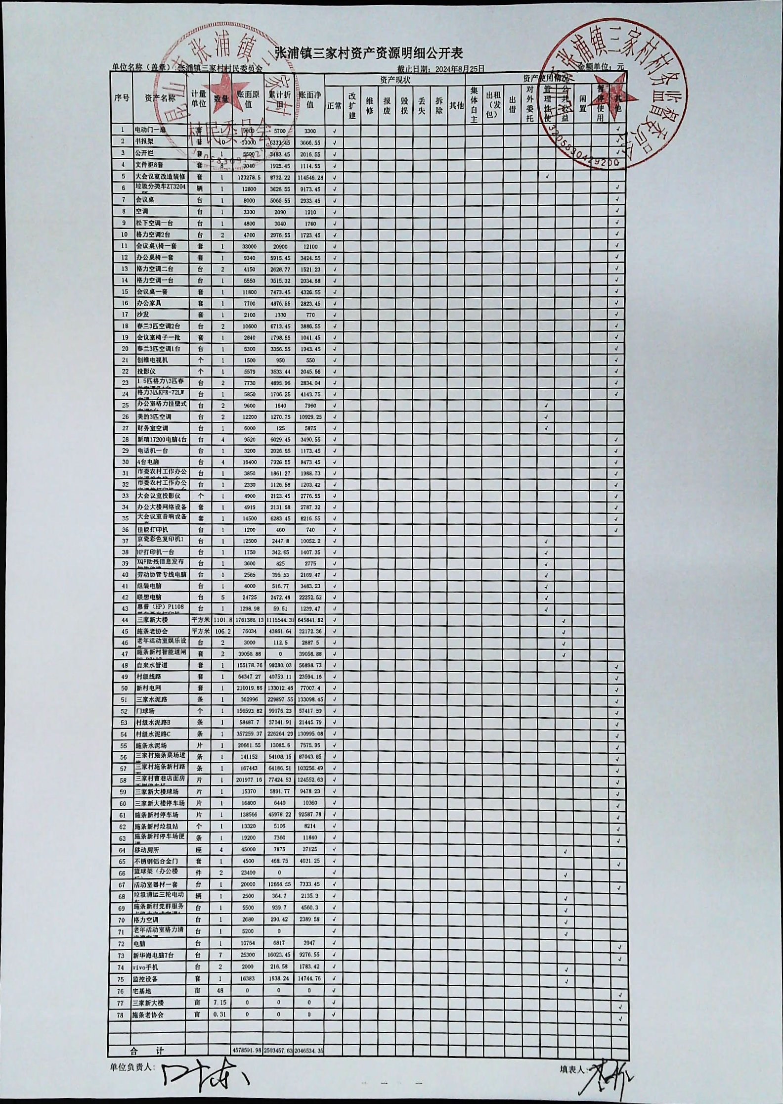 村盖章事项名录