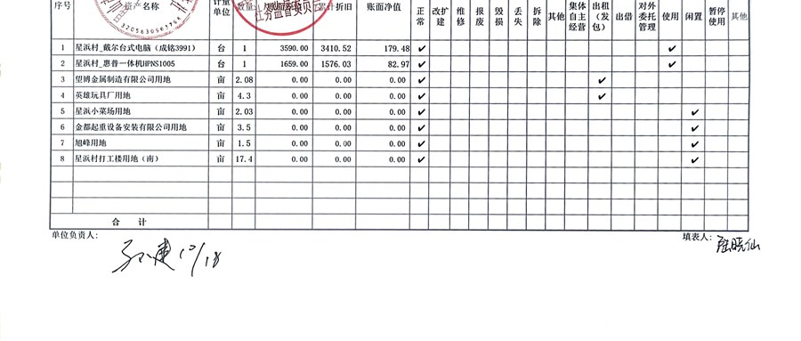 村盖章事项名录