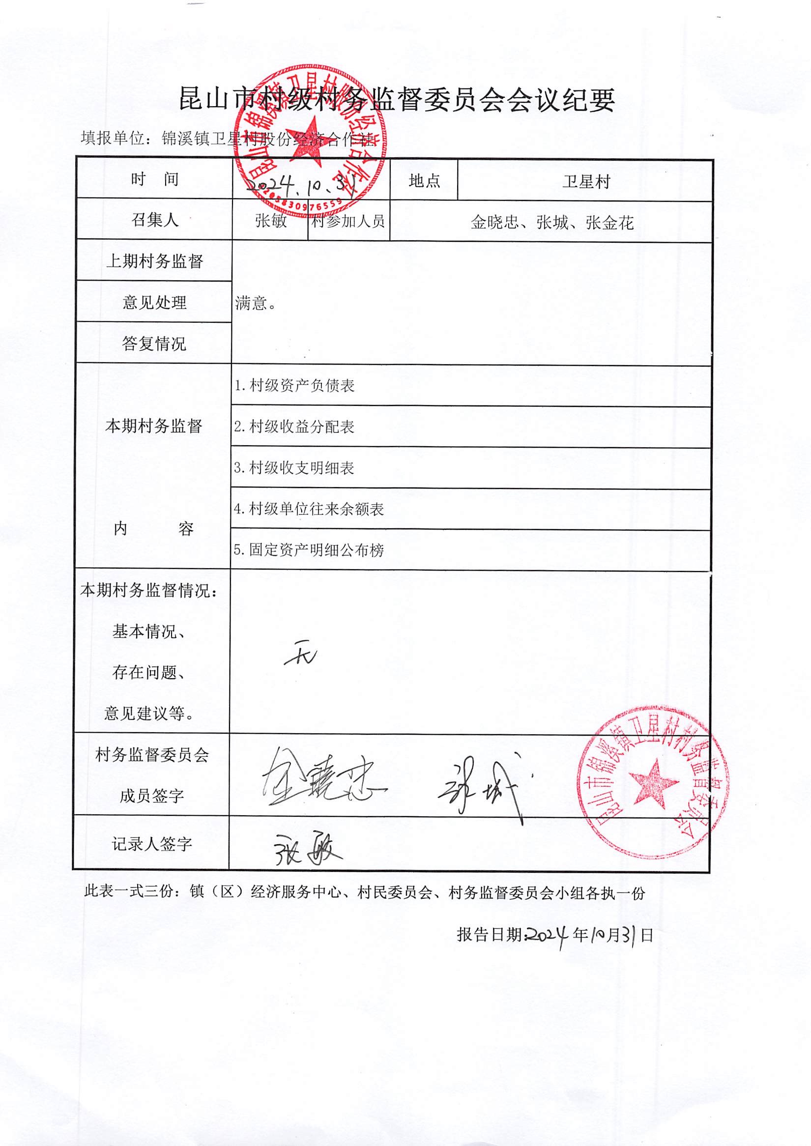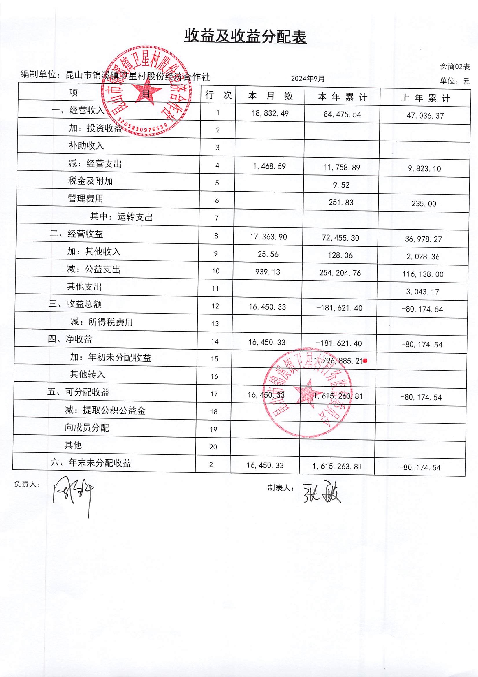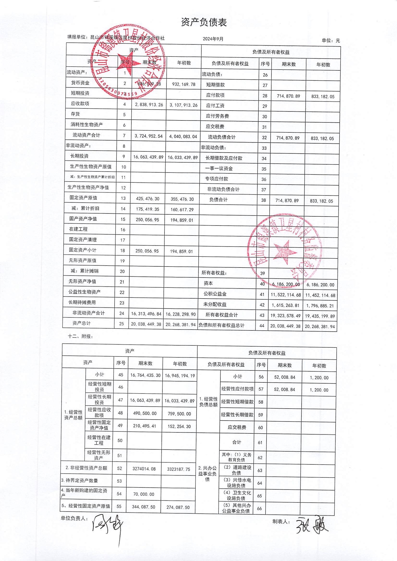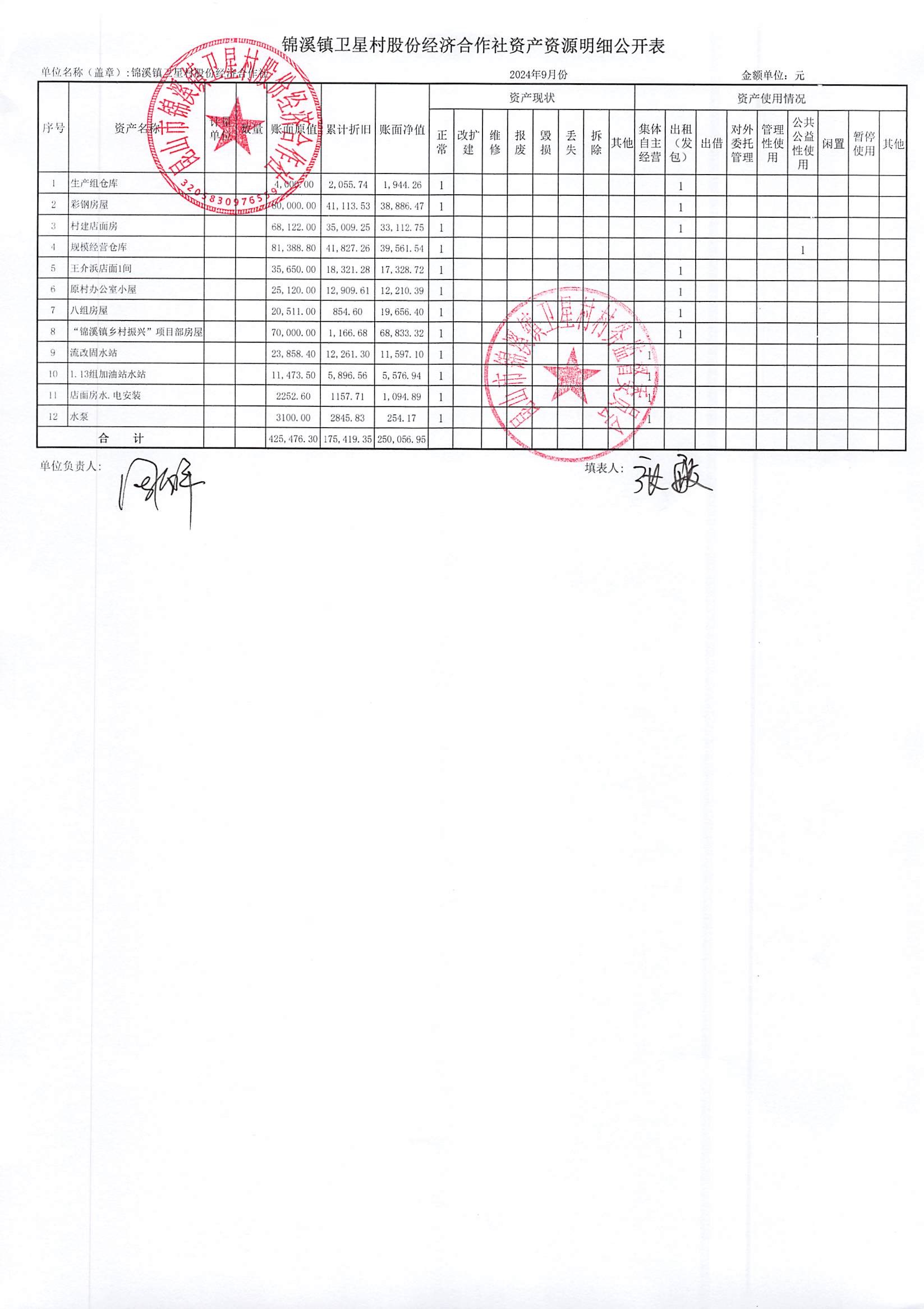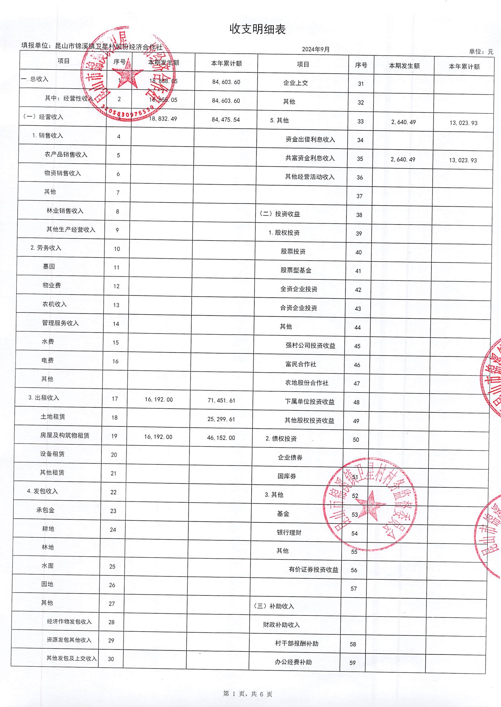 卫星村股份经济合作社2024年9月财务公开内容如下: