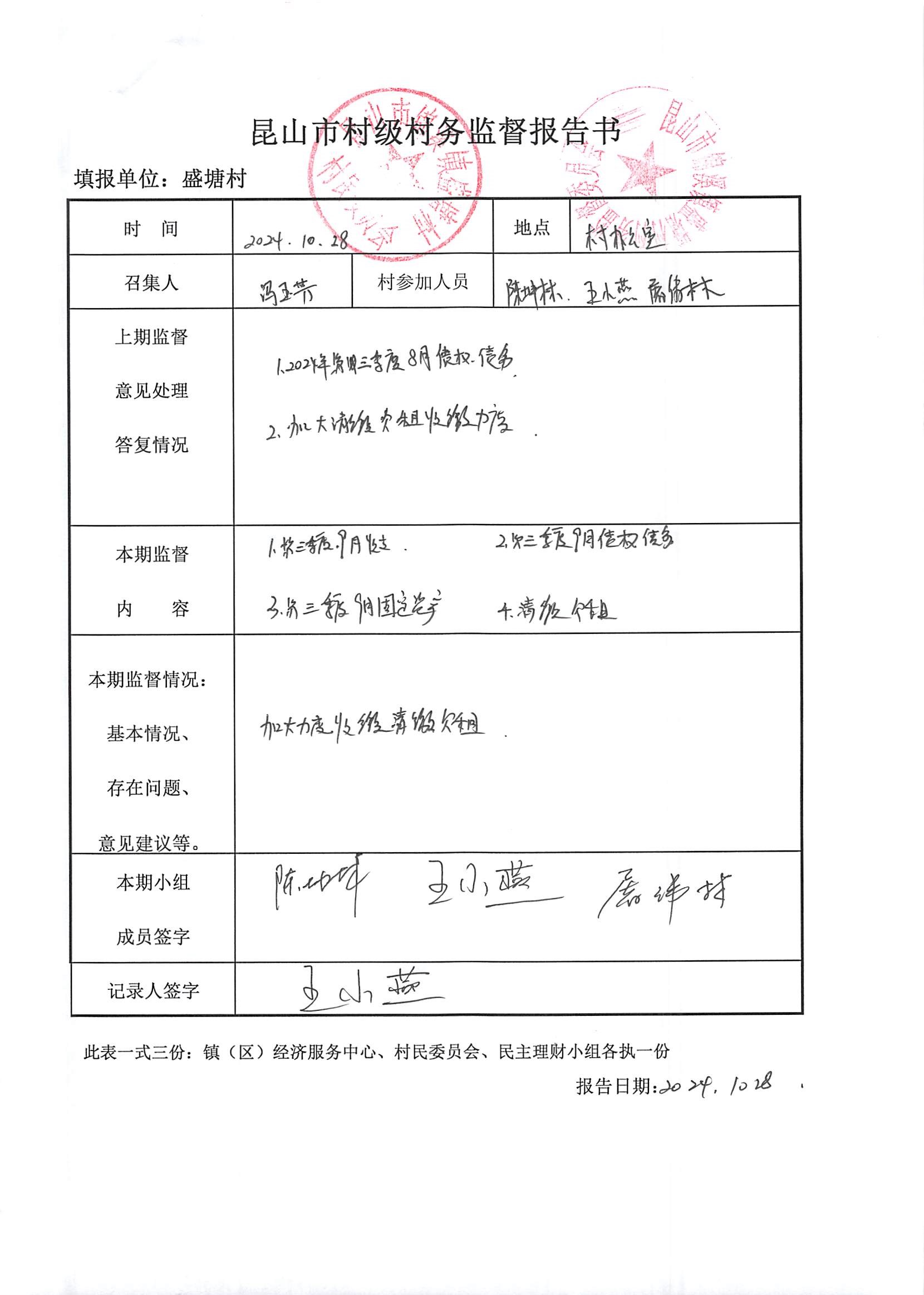 昆山市锦溪镇盛塘村2024年第三季度9月村财务公开资料