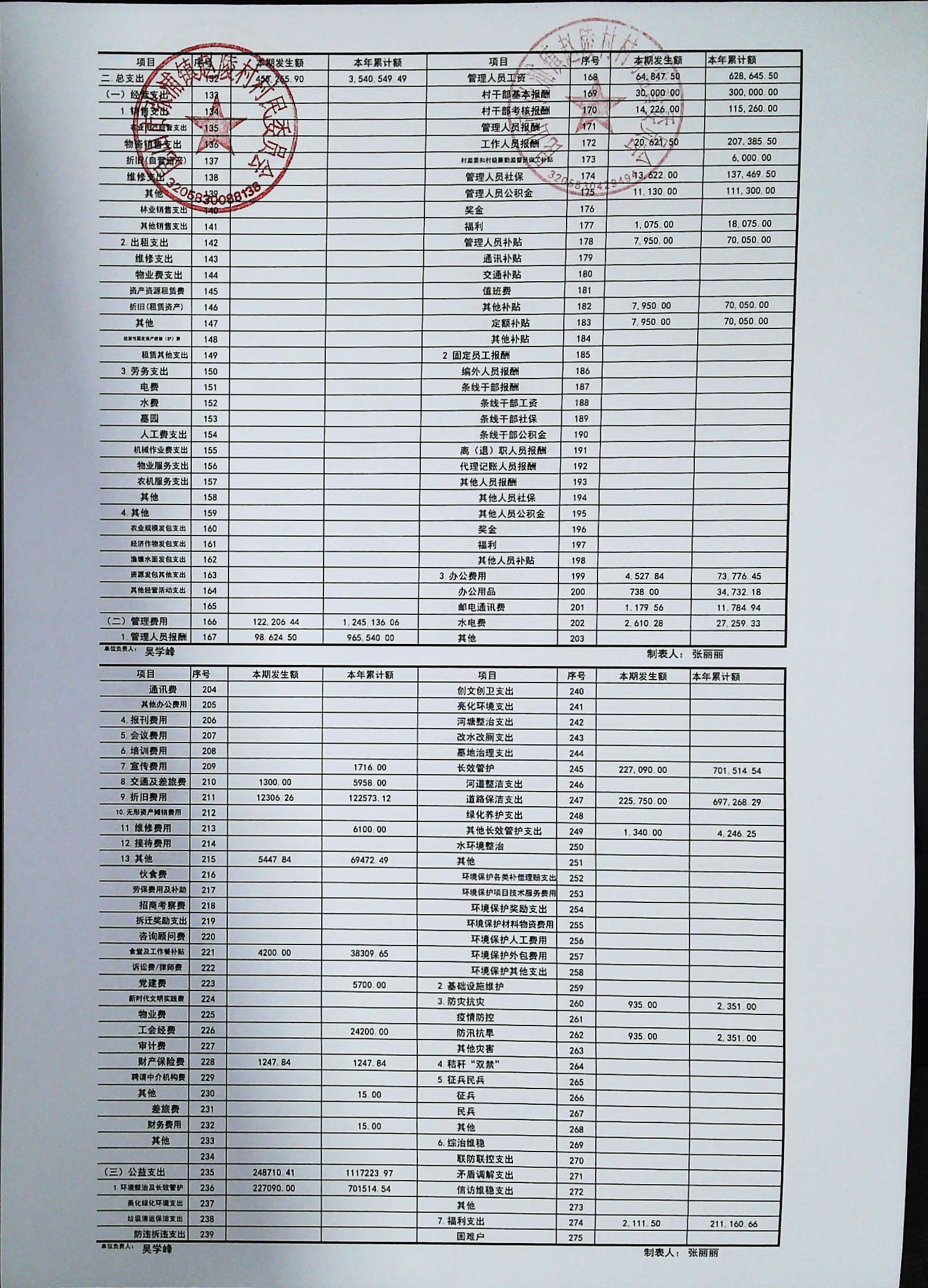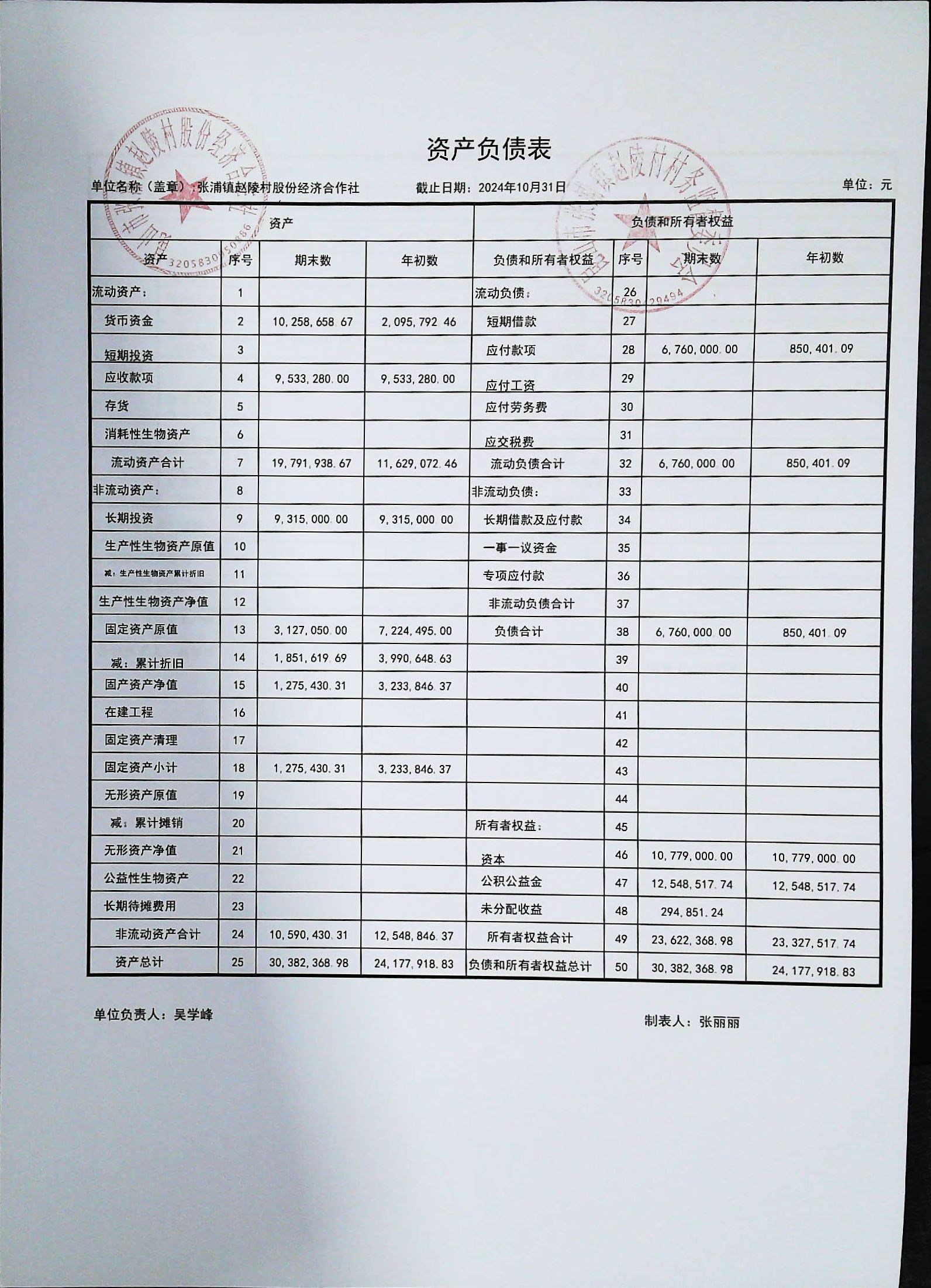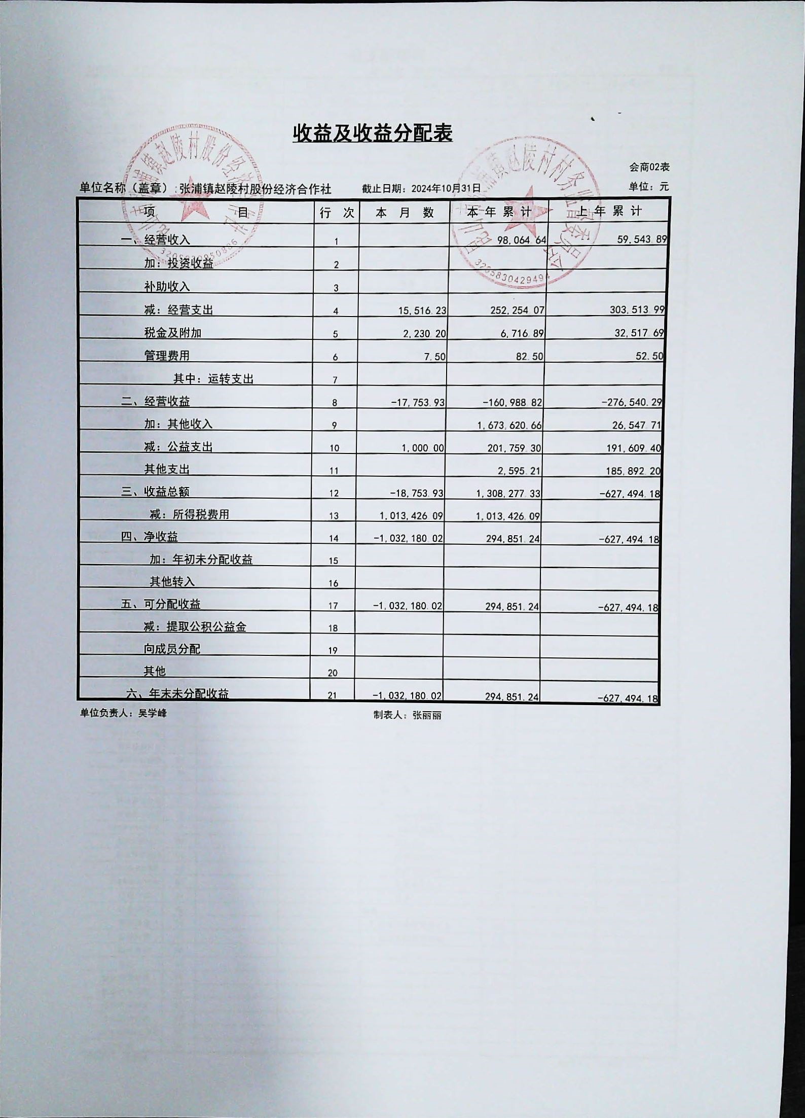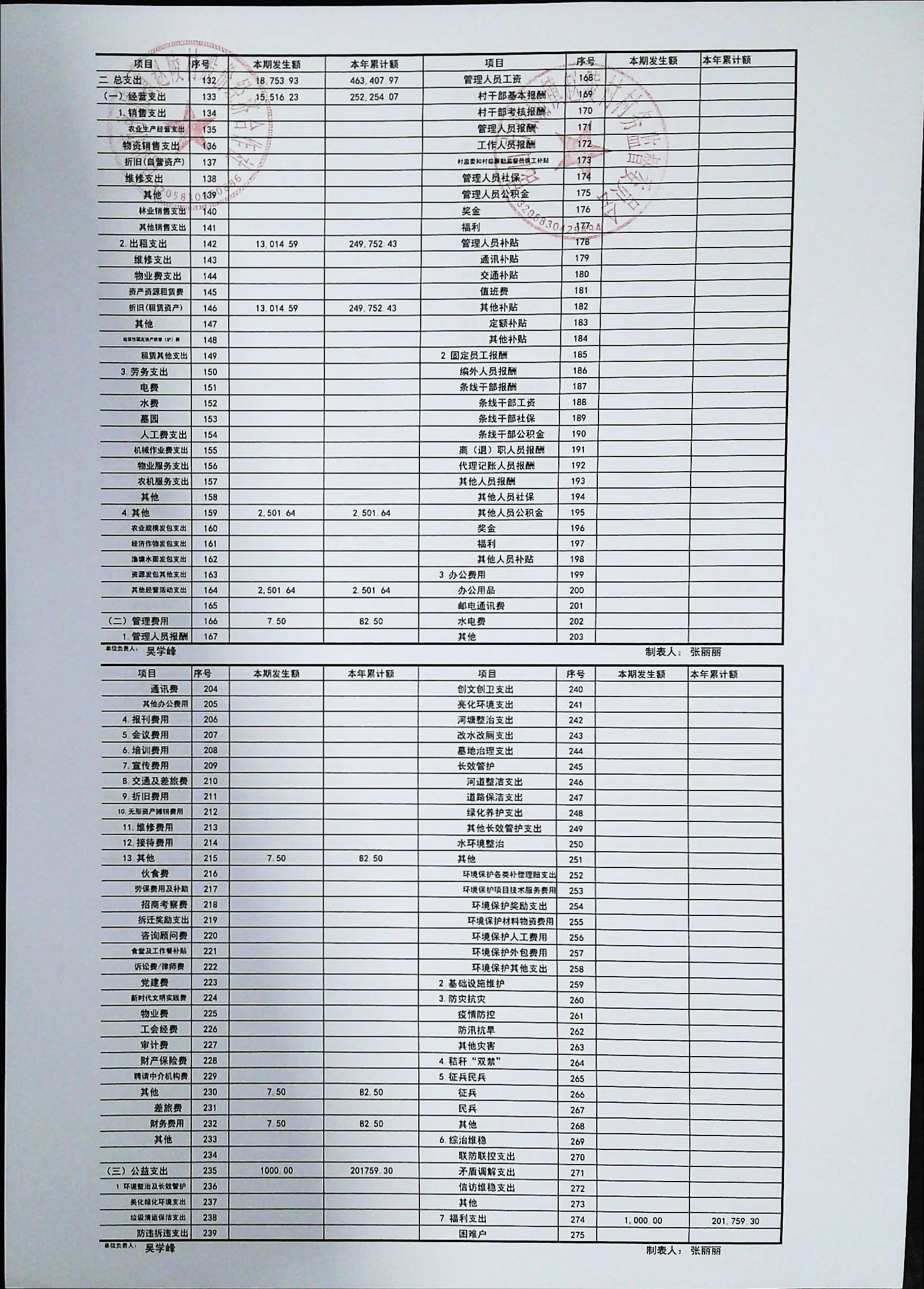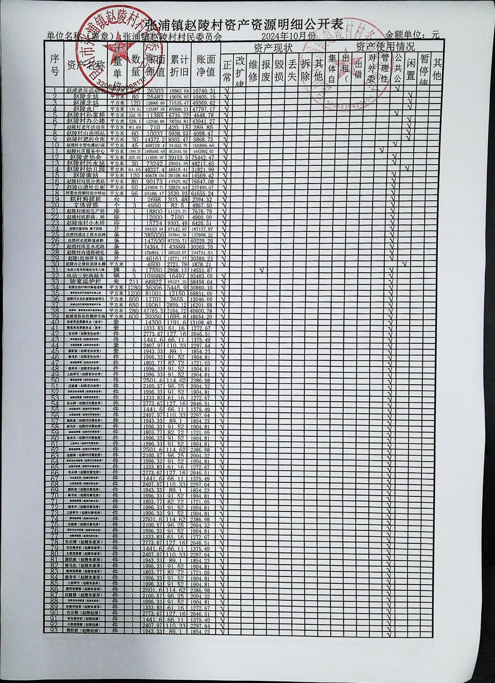 赵陵村2024年度10月份财务公开