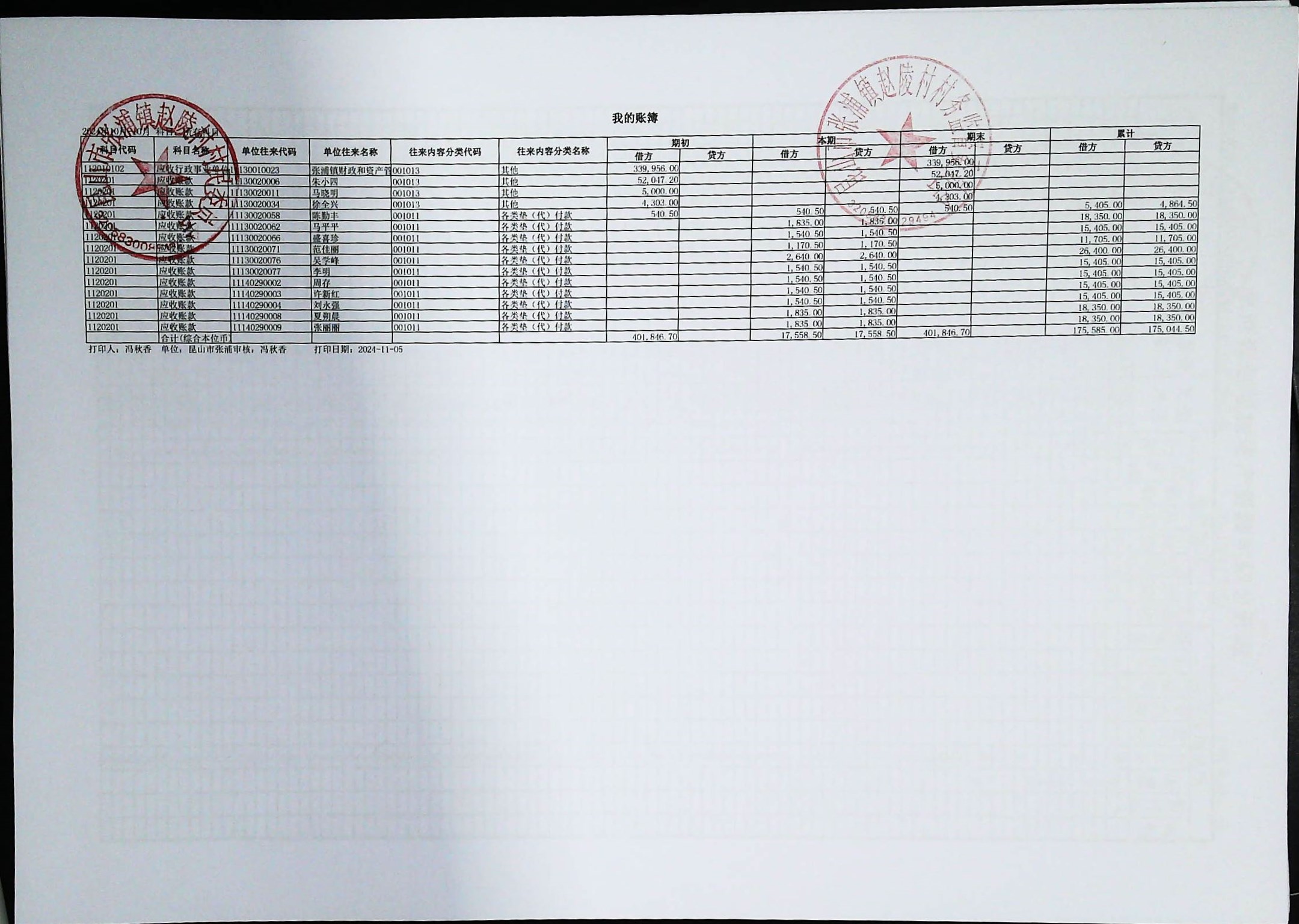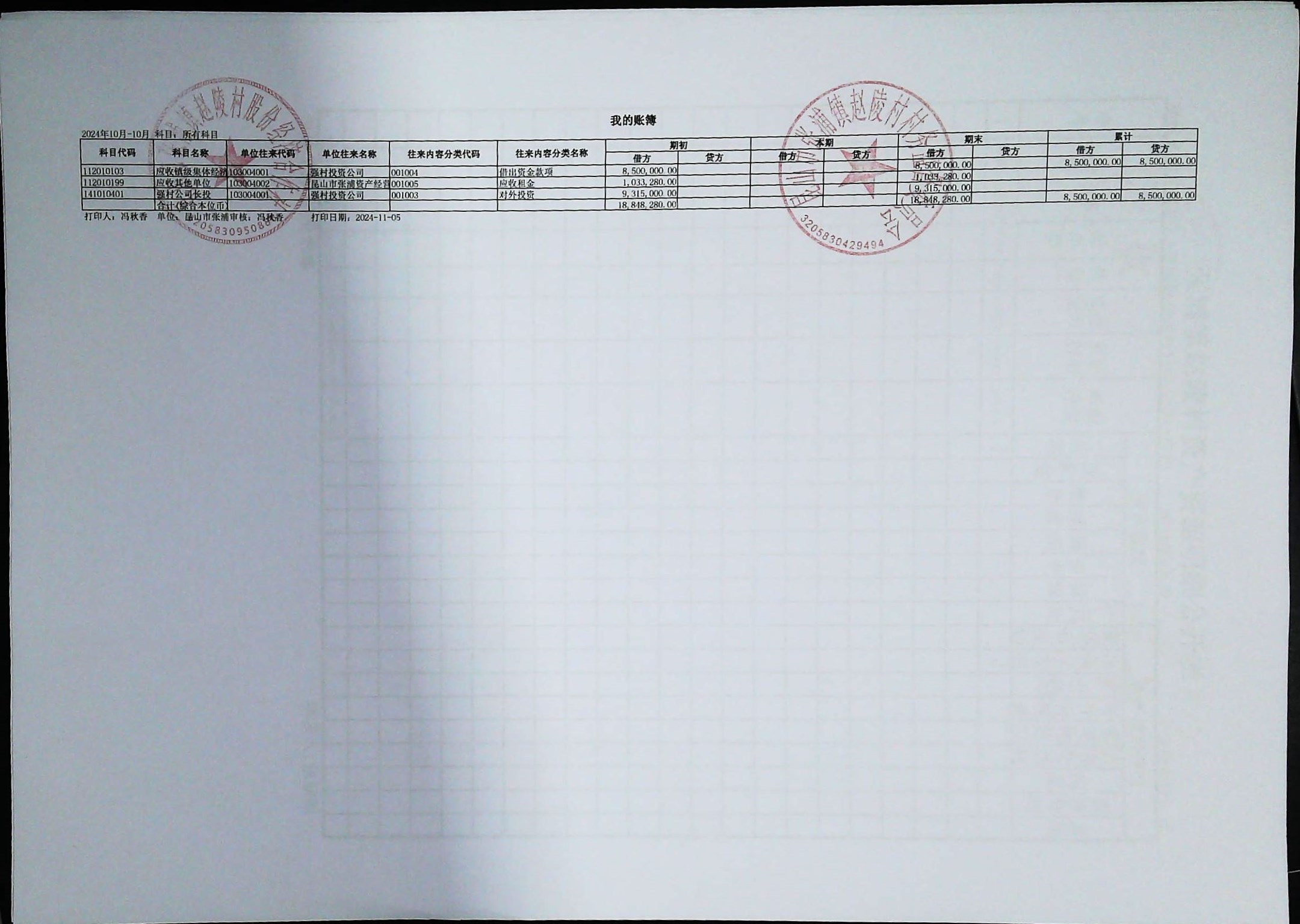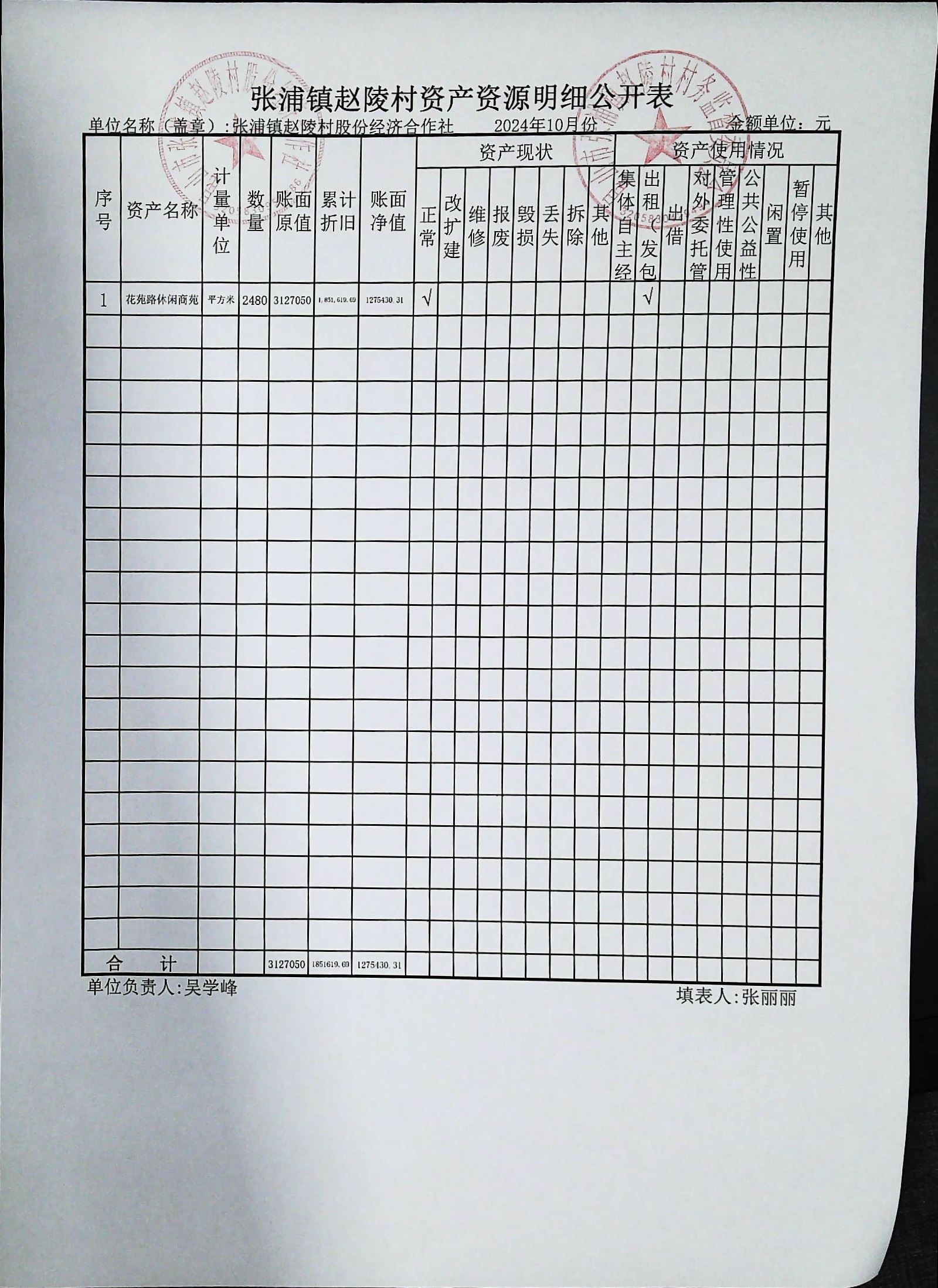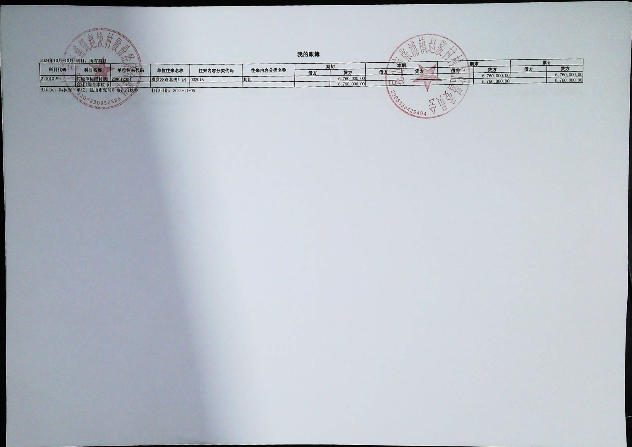 赵陵村2024年度10月份财务公开