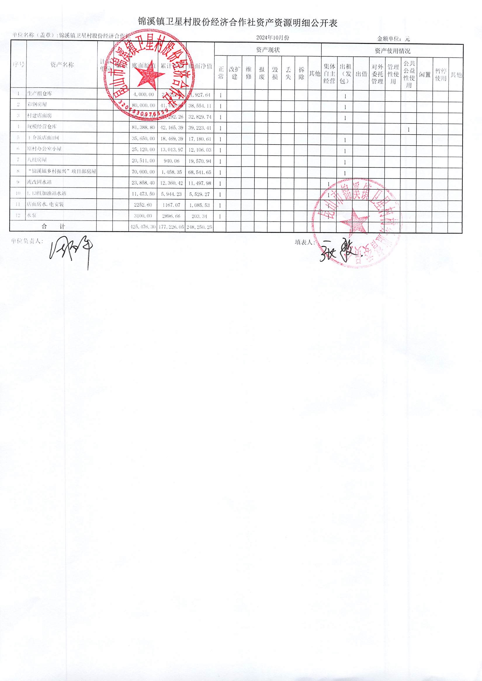 卫星村股份经济合作社2024年10月财务公开
