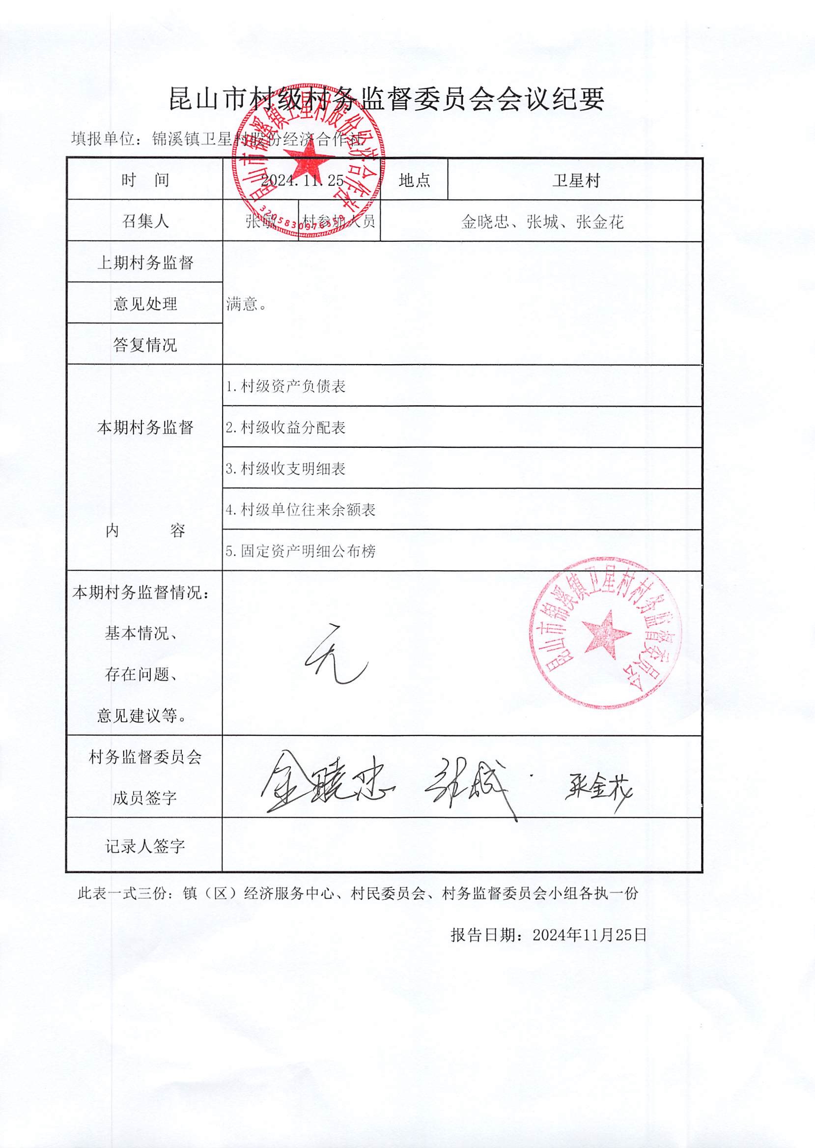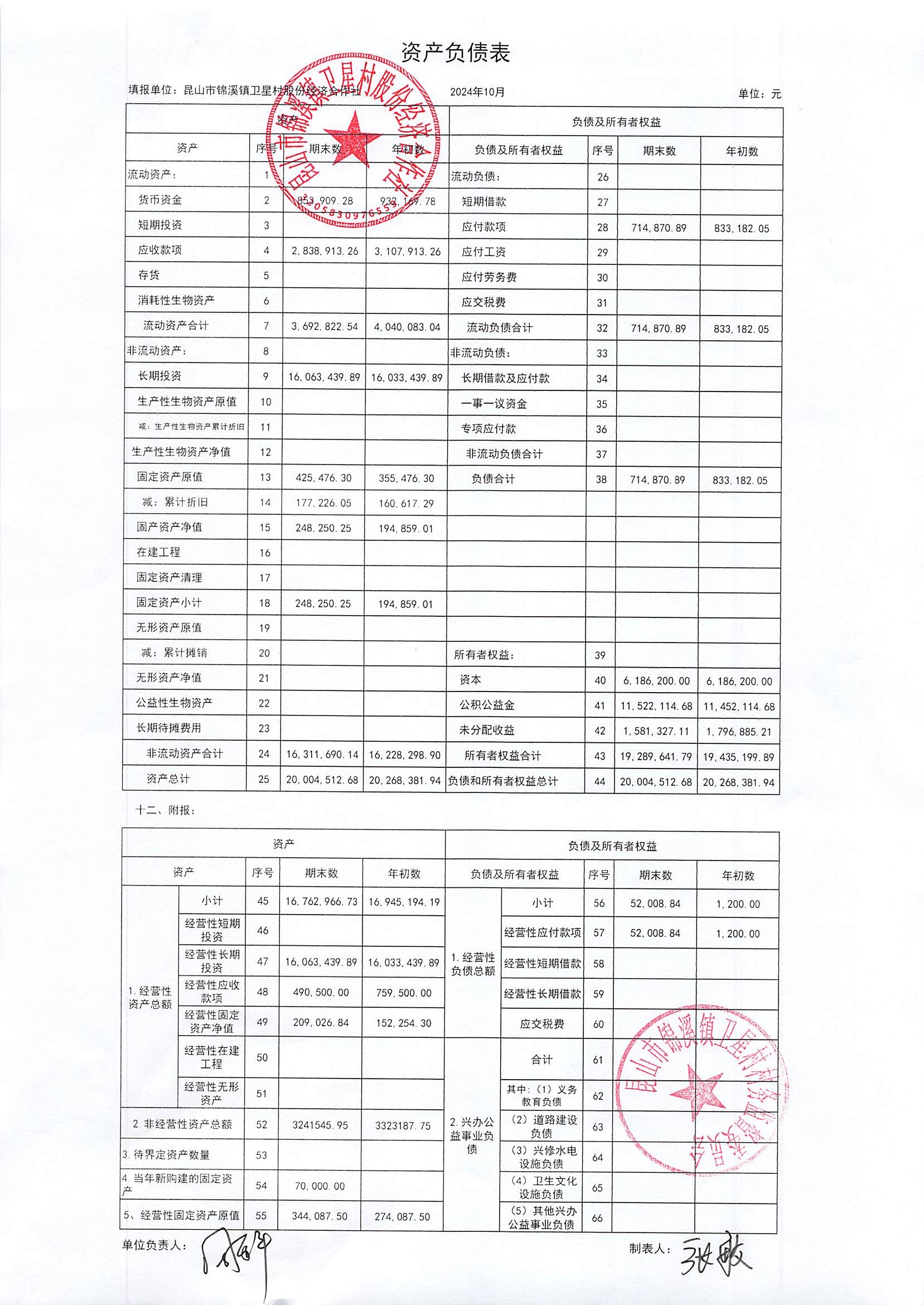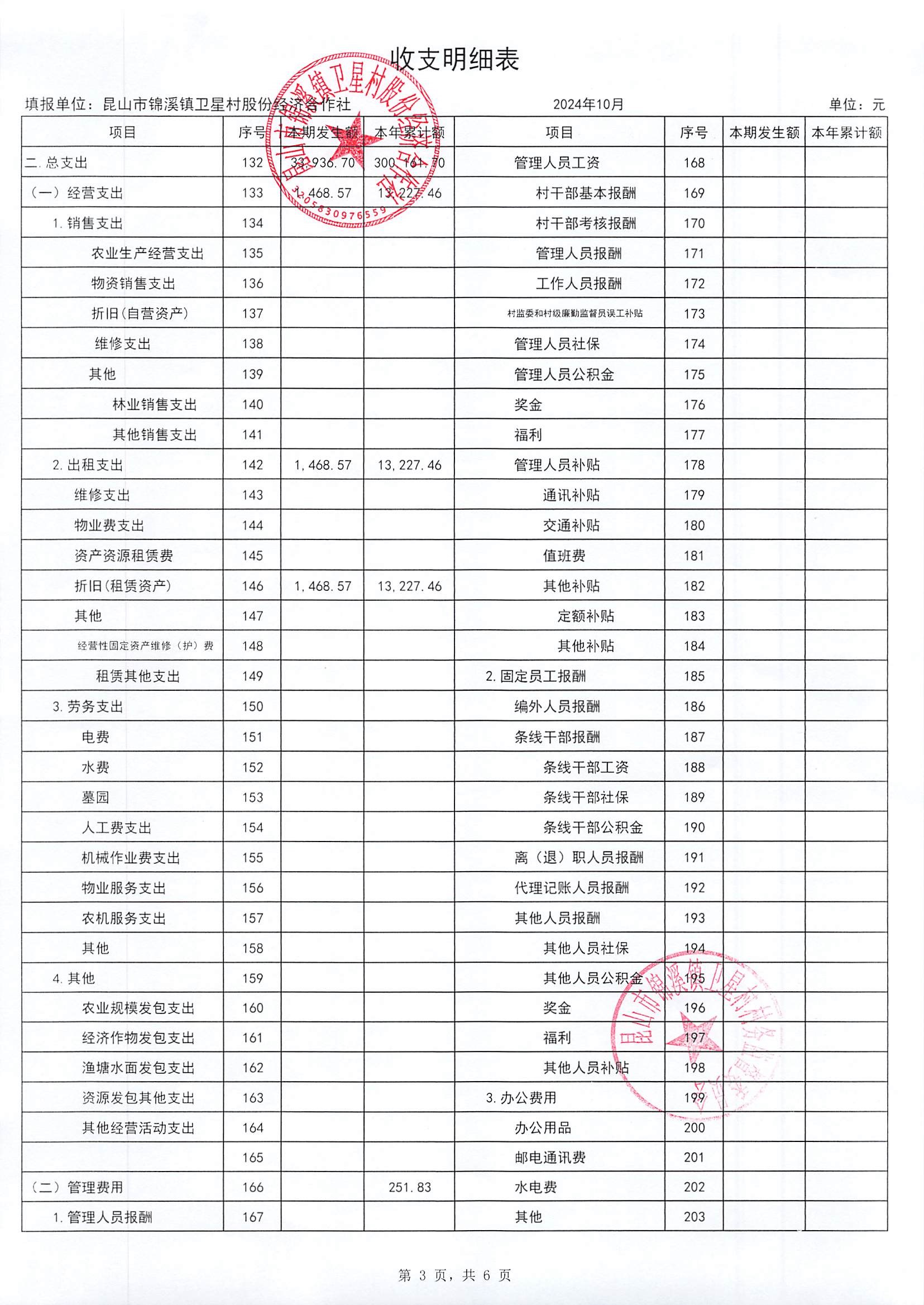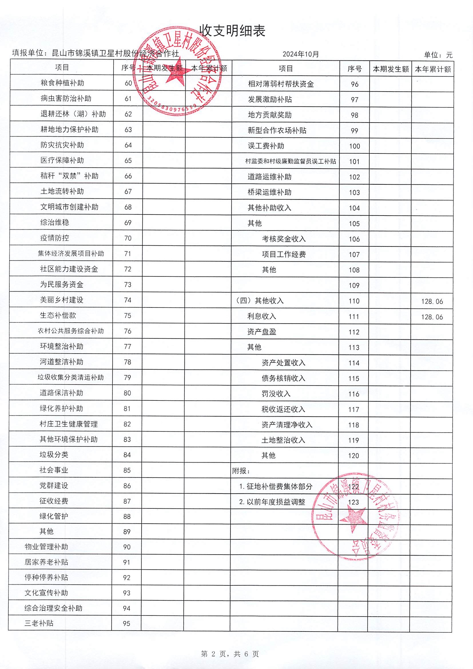 卫星村股份经济合作社2024年10月财务公开内容如下: