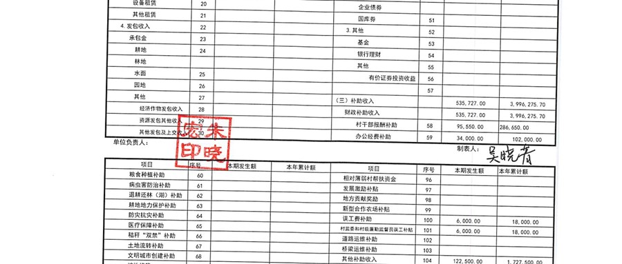 2024年周家浜村10月份财务公开
