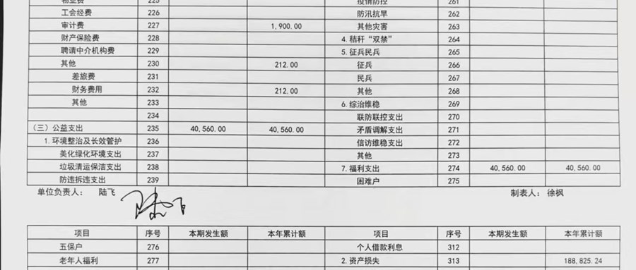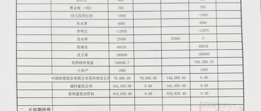 2024年曹安村股份经济合作社10月财务公开