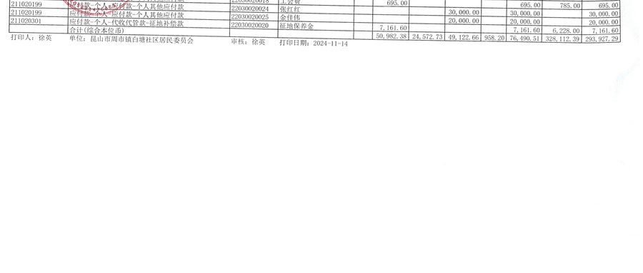 白塘社区居民委员会2024年10月财务公开