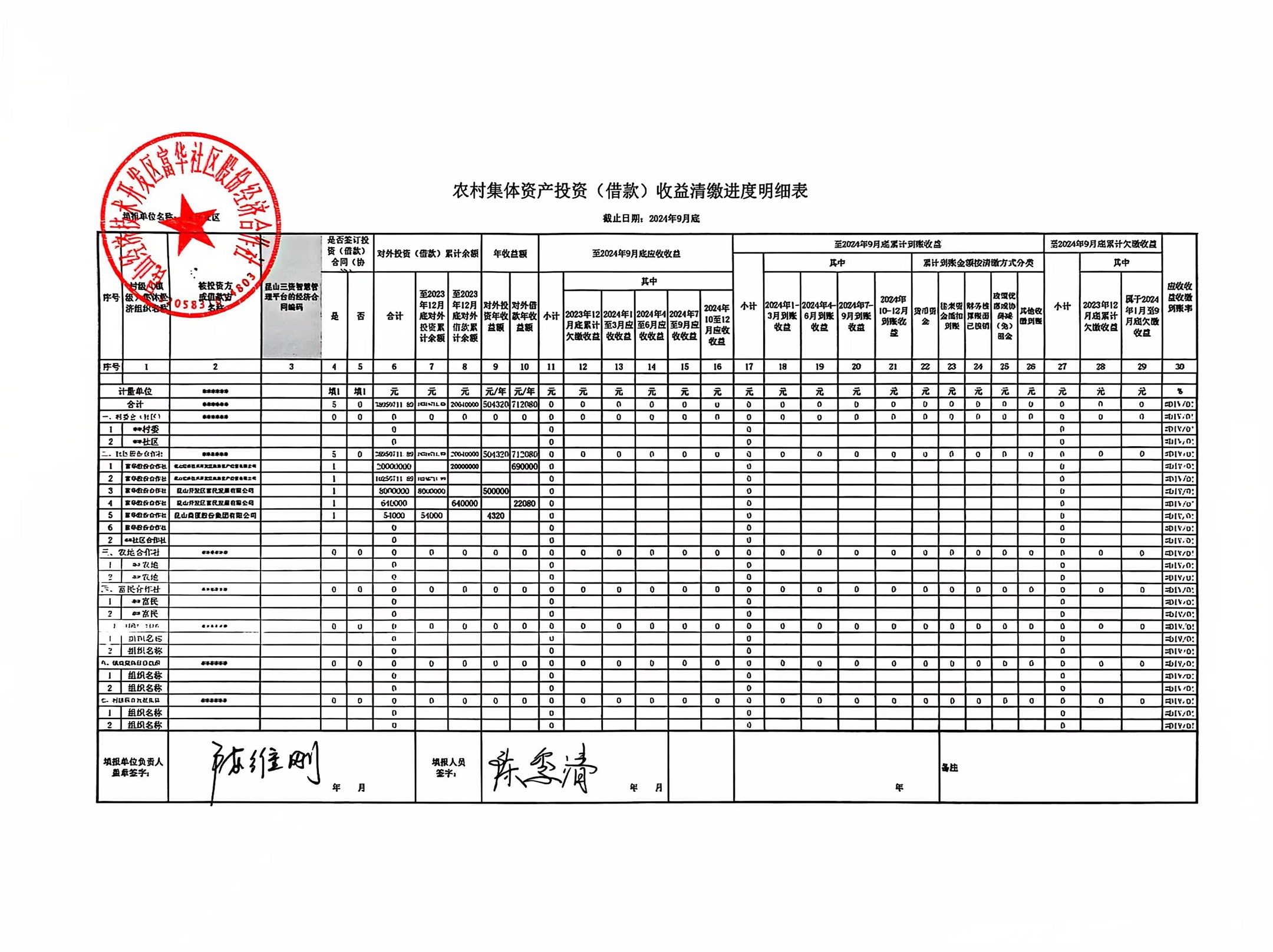 富华股份经济合作社2024年第三季度资产经济合同收缴进度