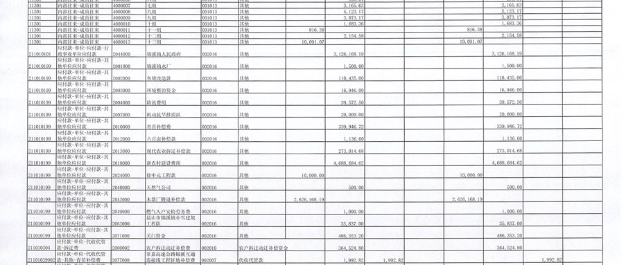 南前村村委会8月份财务公开