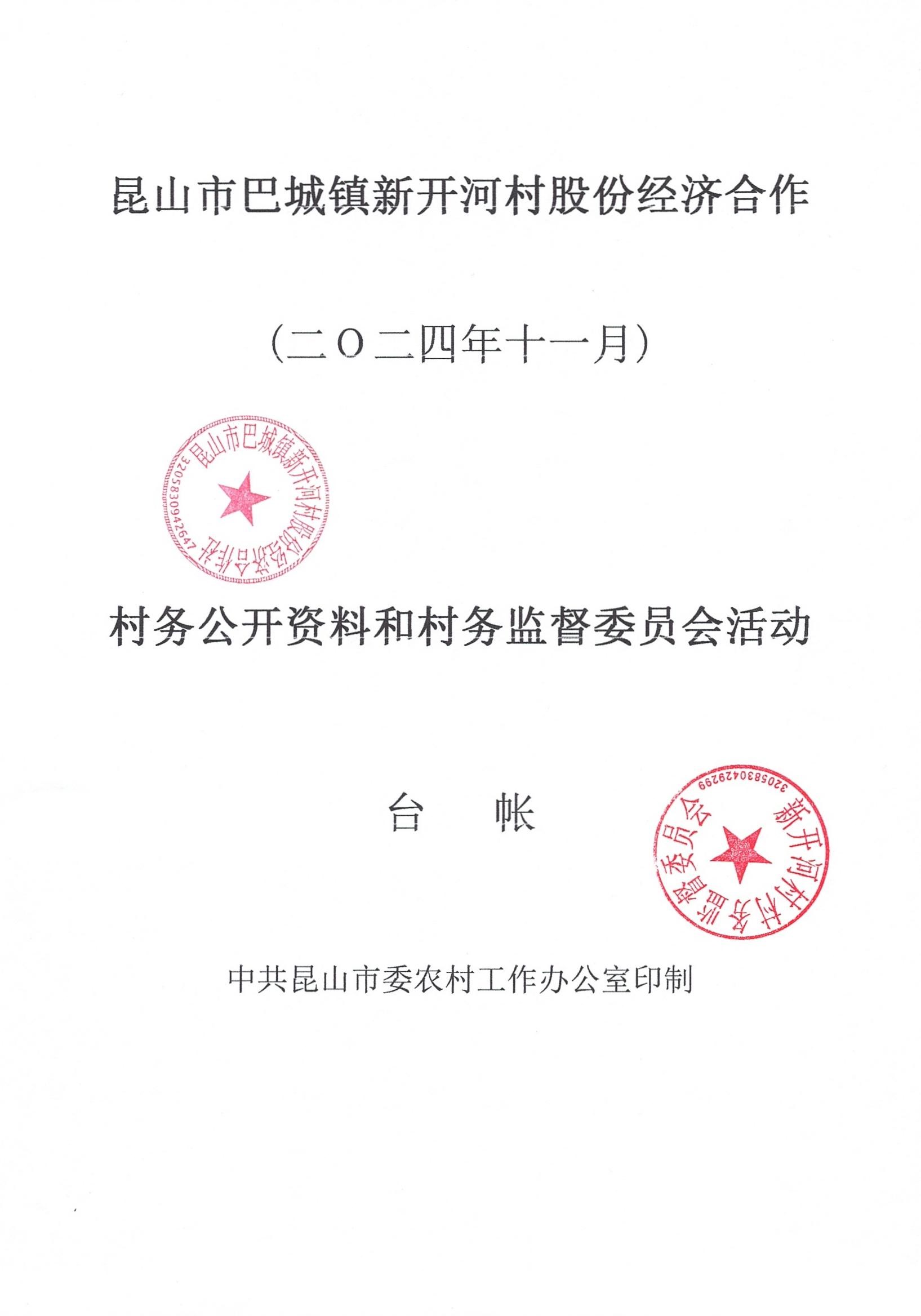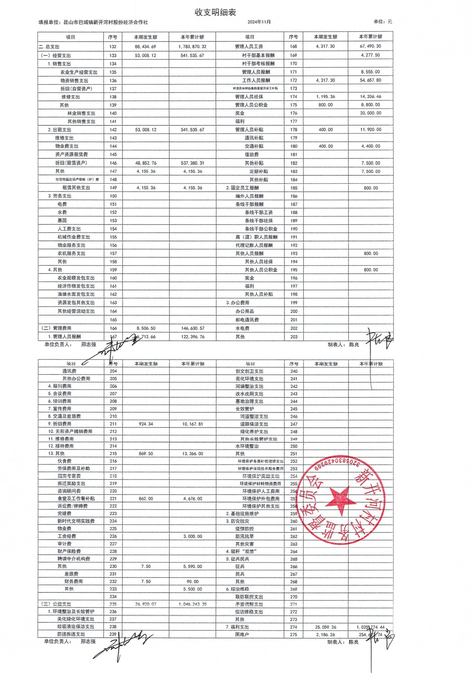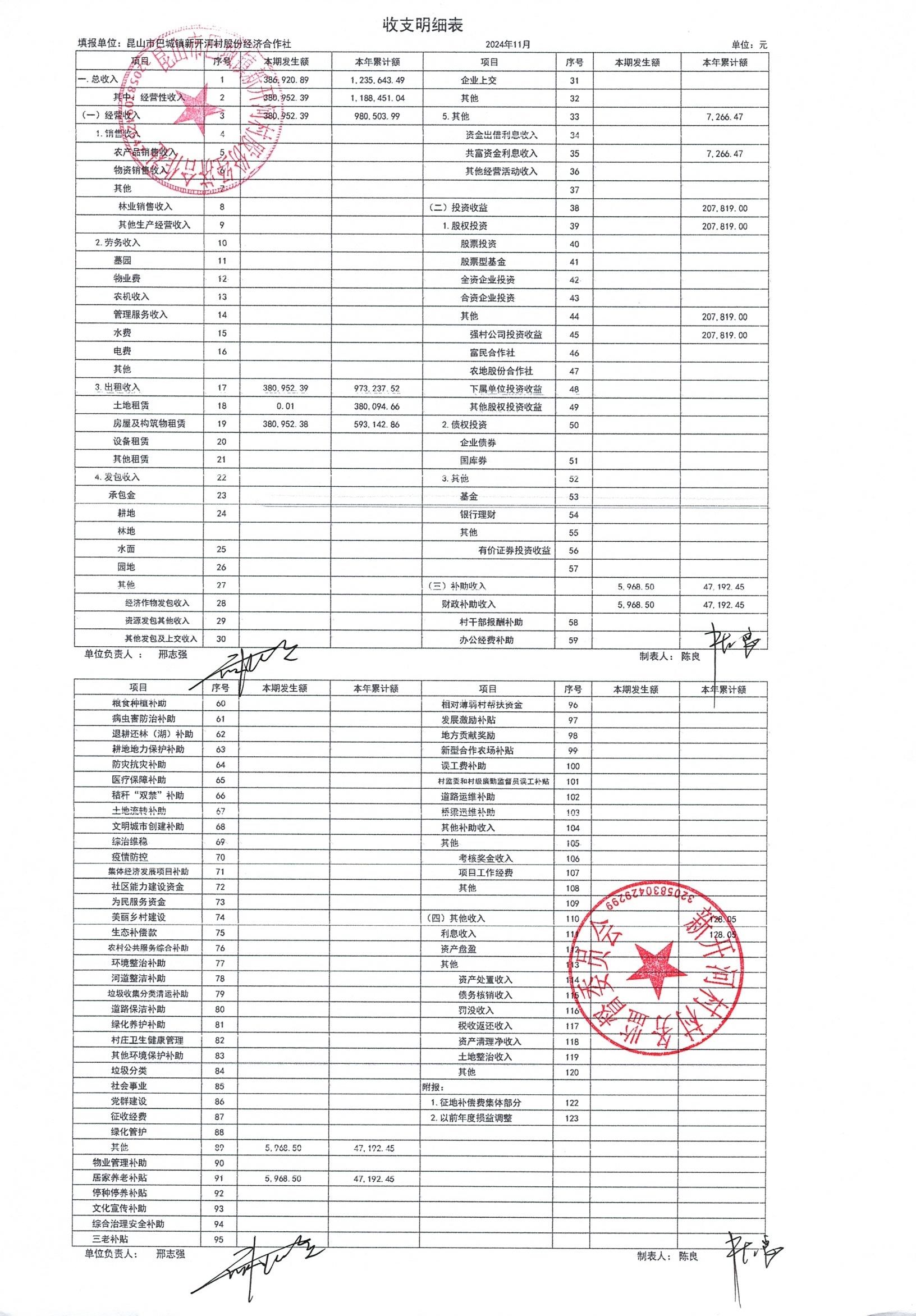 新开河村股份经济合作社2024年11月财务公开