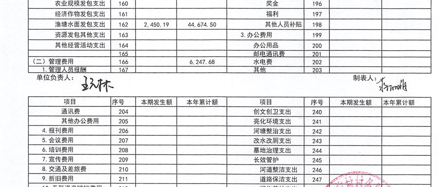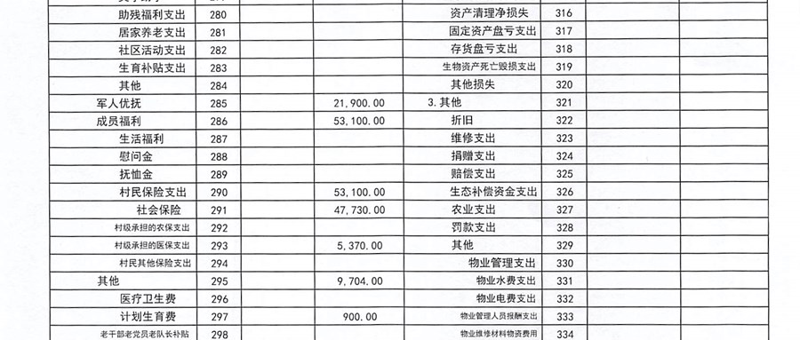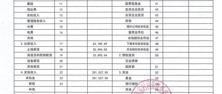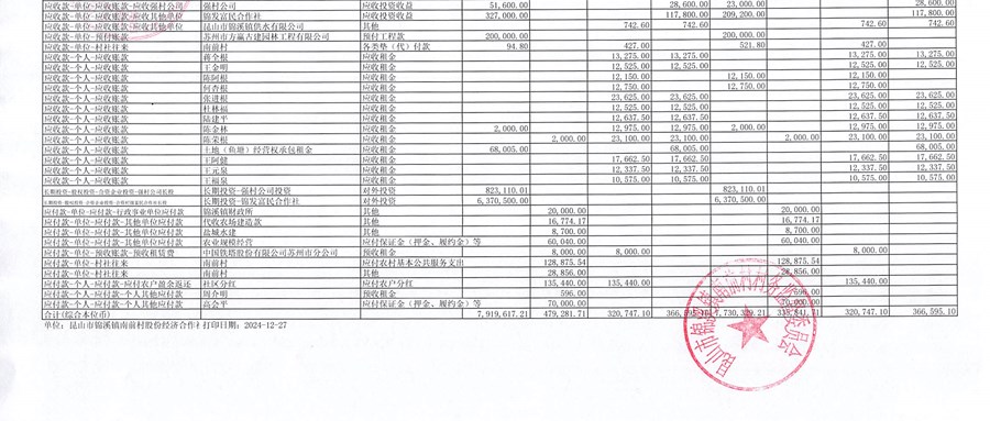 南前村村股份合作社11月份财务公开