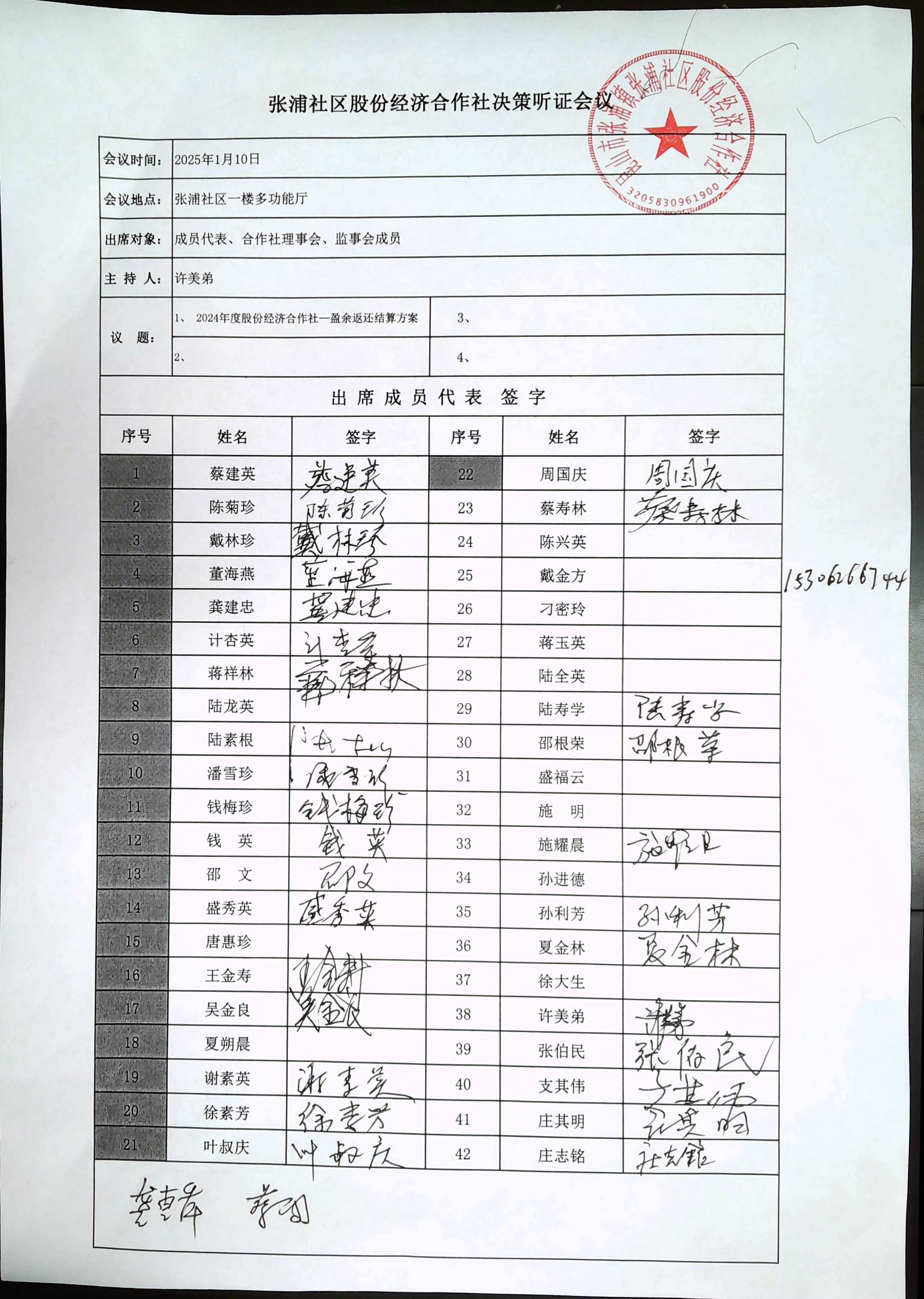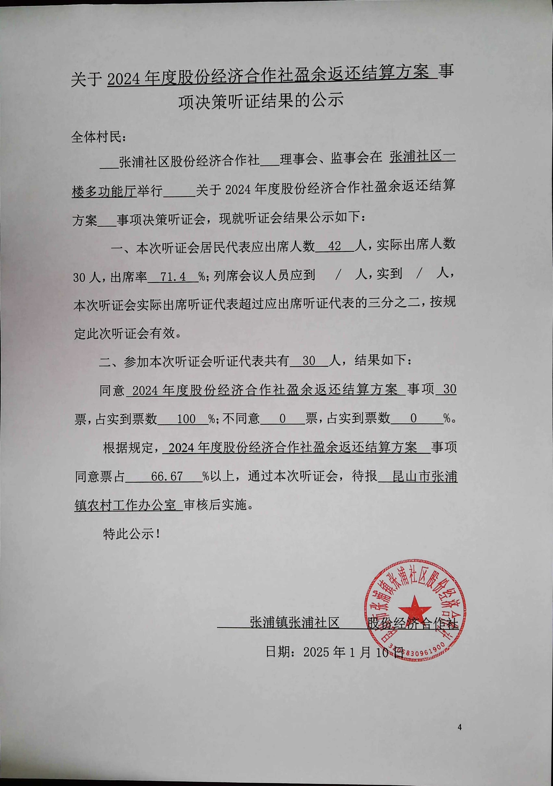 关于合作社2024年度盈余返还结算方案事项听证会议决策公示
