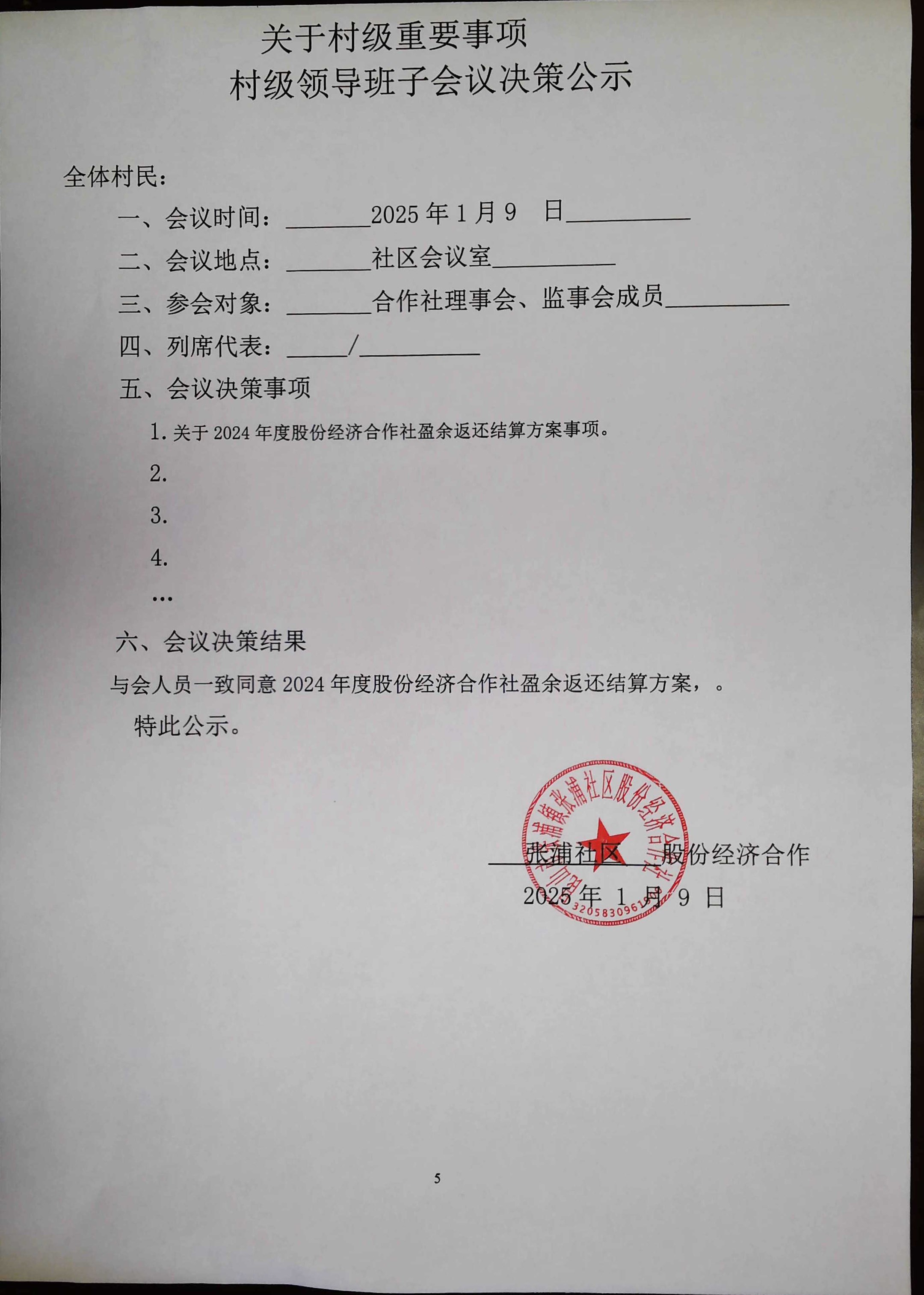 关于合作社2024年度盈余返还结算方案会议决策公示